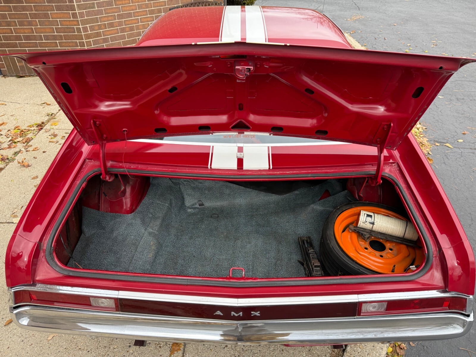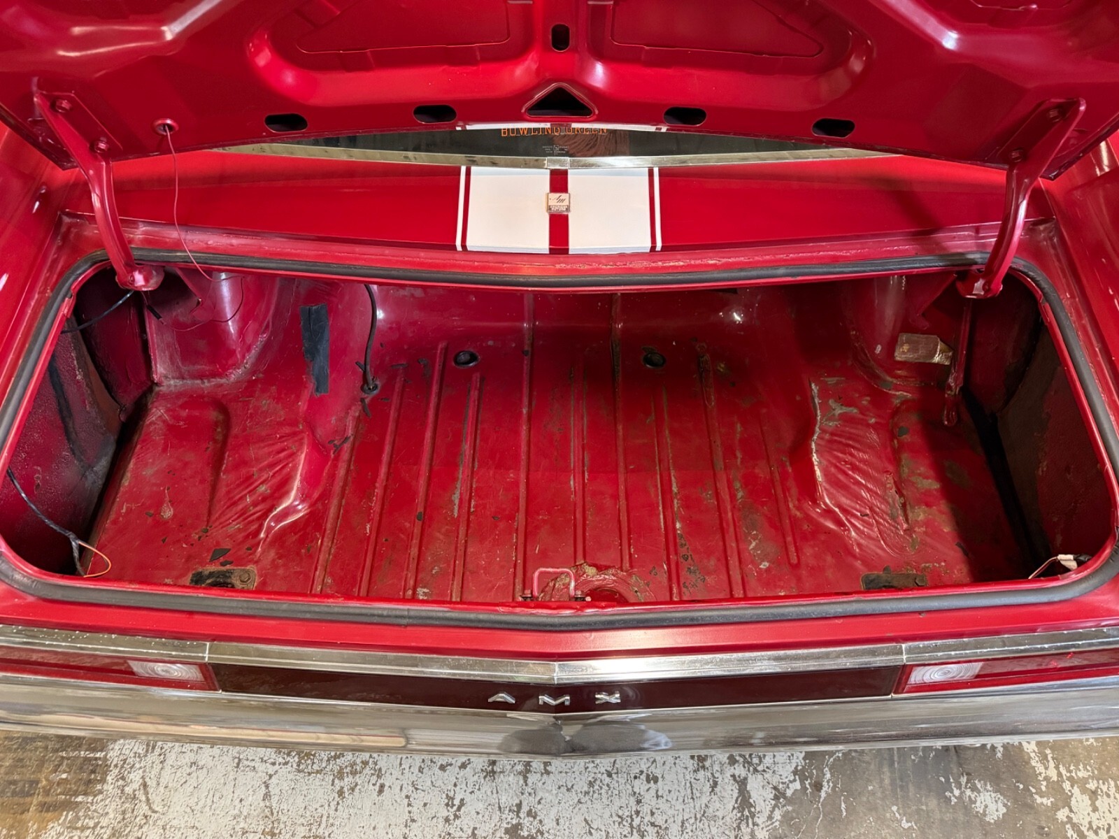 Mint Original Trunk Finished In Original Matador Red PaintMat, Original Space Saver Spare, Original Canister, Original Jack, Original Tire Iron
