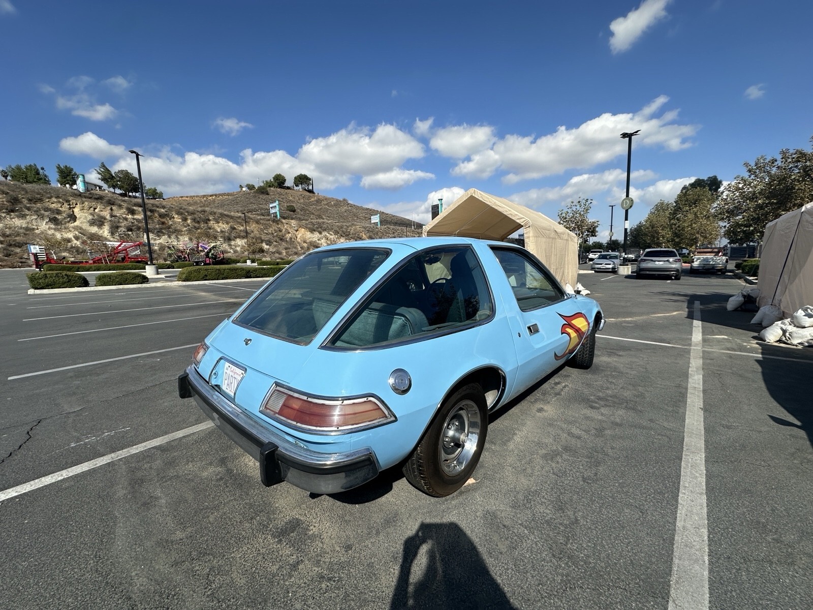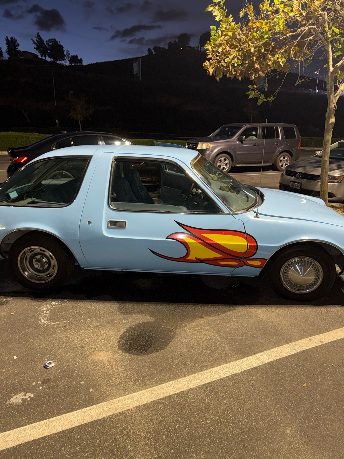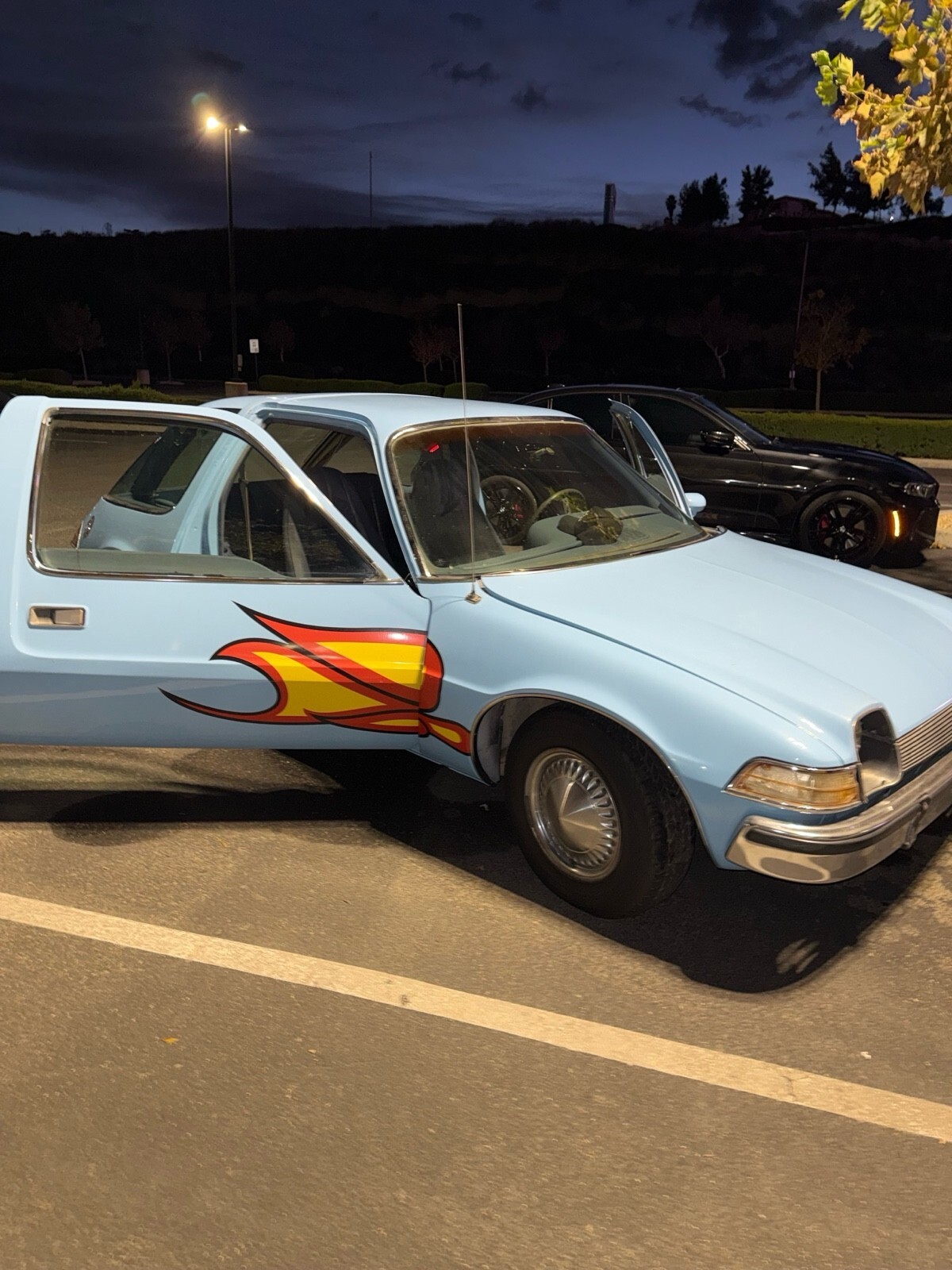 Re-creation of the famous “Mirth Mobile” movie car with many authentic details. a 258ci inline-6 engine with an automatic transmission. Features power brakes and power steering. This 1975 AMC Pacer was rebuilt to match the car seen in Wayne’s World (1992) and Wayne’s World 2 (1994). Includes a wide range of “Mirth Mobile” updates such as the flames, matched hubcaps, and other themed details. The exterior is in excellent condition, and the interior is in good condition but could use minor repairs. Original engine and transmission are still in place. It runs well, but some gauges need replacement. Specs: • 1975 AMC Pacer • 54,000 miles • Automatic transmission • Inline-6 (258 CI) • Condition: Good