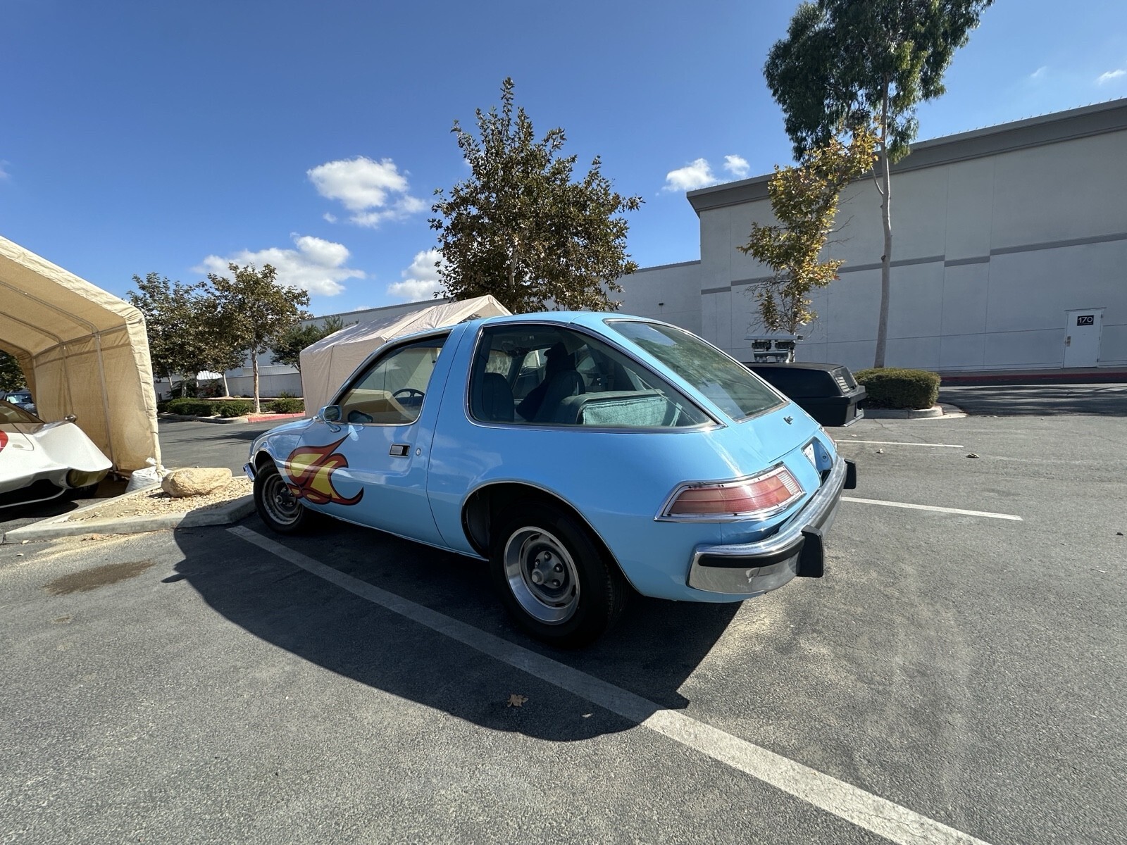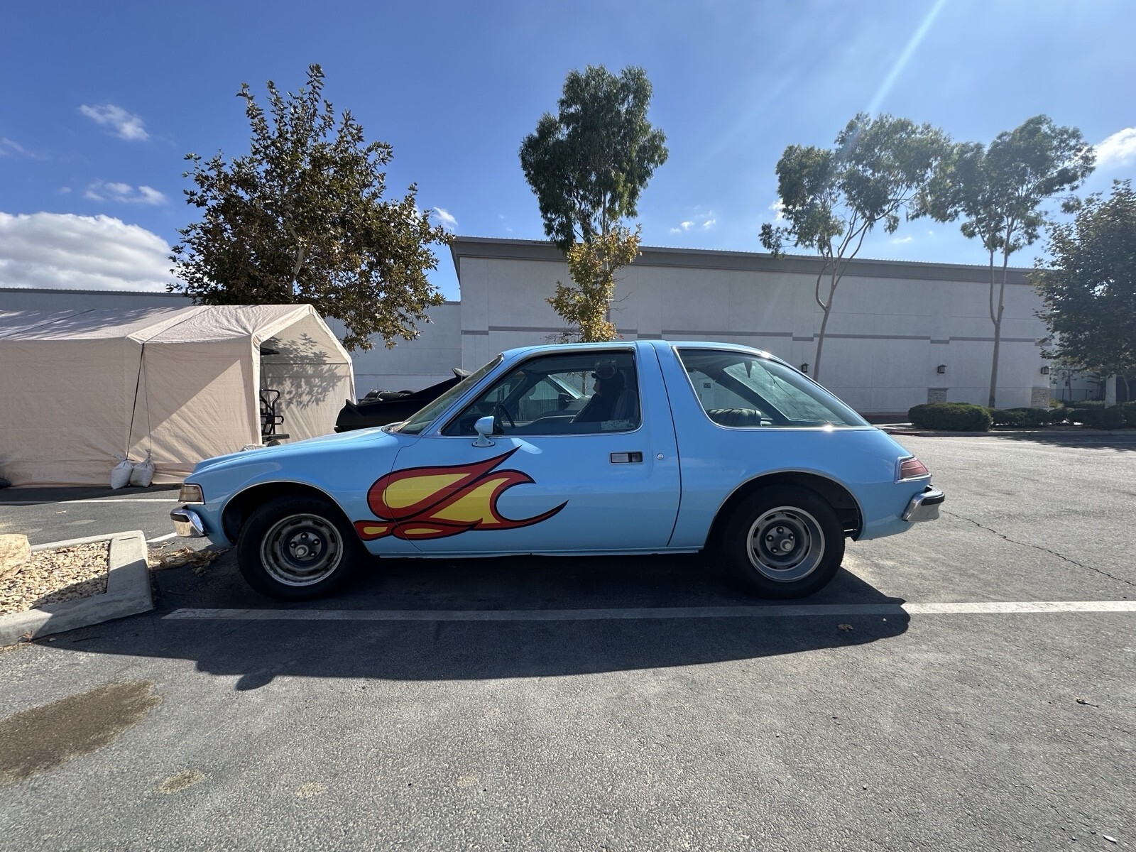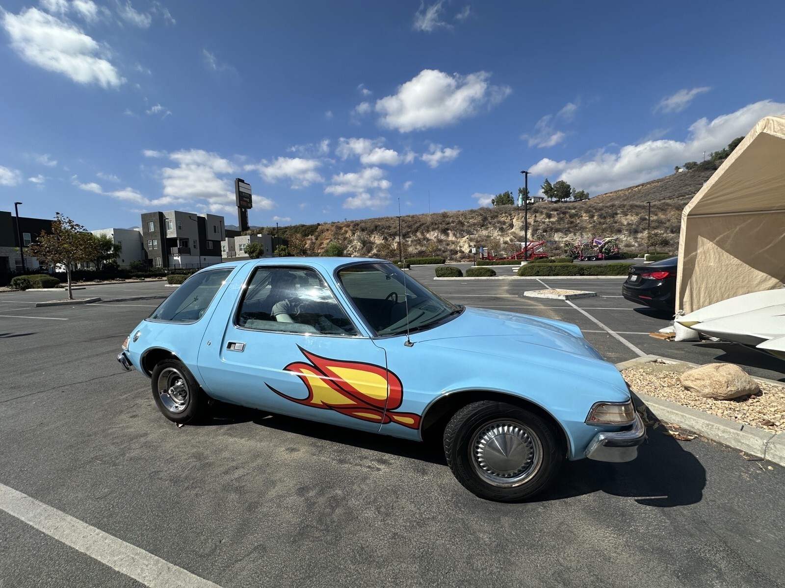 Re-creation of the famous “Mirth Mobile” movie car with many authentic details. a 258ci inline-6 engine with an automatic transmission. Features power brakes and power steering. This 1975 AMC Pacer was rebuilt to match the car seen in Wayne’s World (1992) and Wayne’s World 2 (1994). Includes a wide range of “Mirth Mobile” updates such as the flames, matched hubcaps, and other themed details. The exterior is in excellent condition, and the interior is in good condition but could use minor repairs. Original engine and transmission are still in place. It runs well, but some gauges need replacement. Specs: • 1975 AMC Pacer • 54,000 miles • Automatic transmission • Inline-6 (258 CI) • Condition: Good