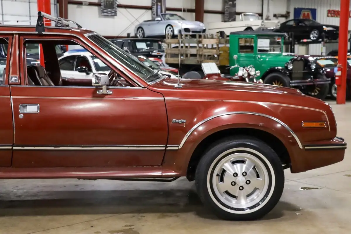 The 1987 AMC Eagle offered here is an original example featuring just 97908 miles since new. It is presented in its original Garnet exterior paint over Garnet interior highly trimmed with wood accents and patterned cloth seat inserts. Powering this classic is its 4.2 liter inline 6 cylinder engine, automatic transmission and part time 4 wheel drive. Options and highlights include: Power steering, power brakes, air conditioning, stereo with cassette, split bench front seat with floor shifter, tilt steering wheel, clock, tilt steering wheel, hatchback style rear door, and "Shift on the Fly" 4 Wheel Drive engagement. This Eagle remains in excellent original condition and runs and drives very well.
