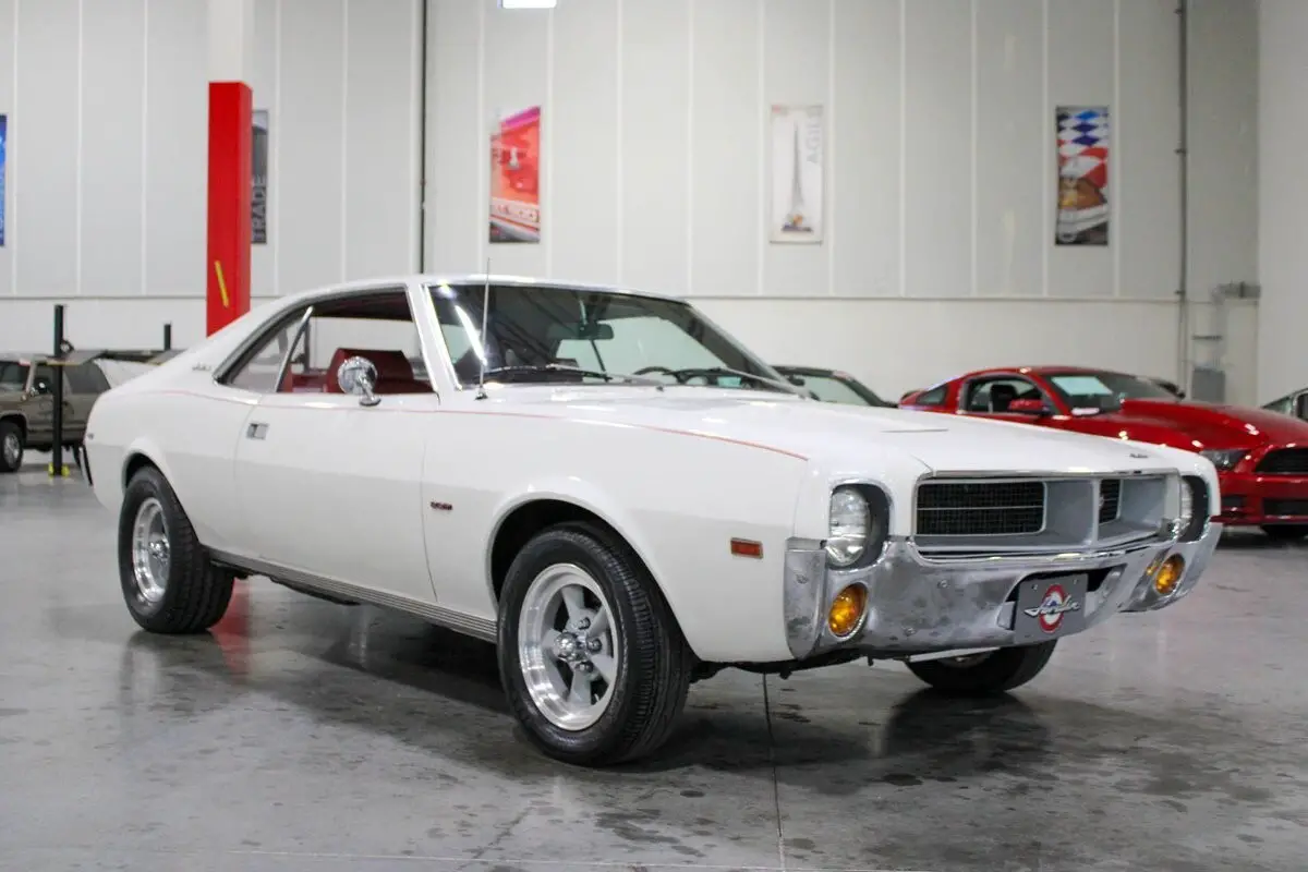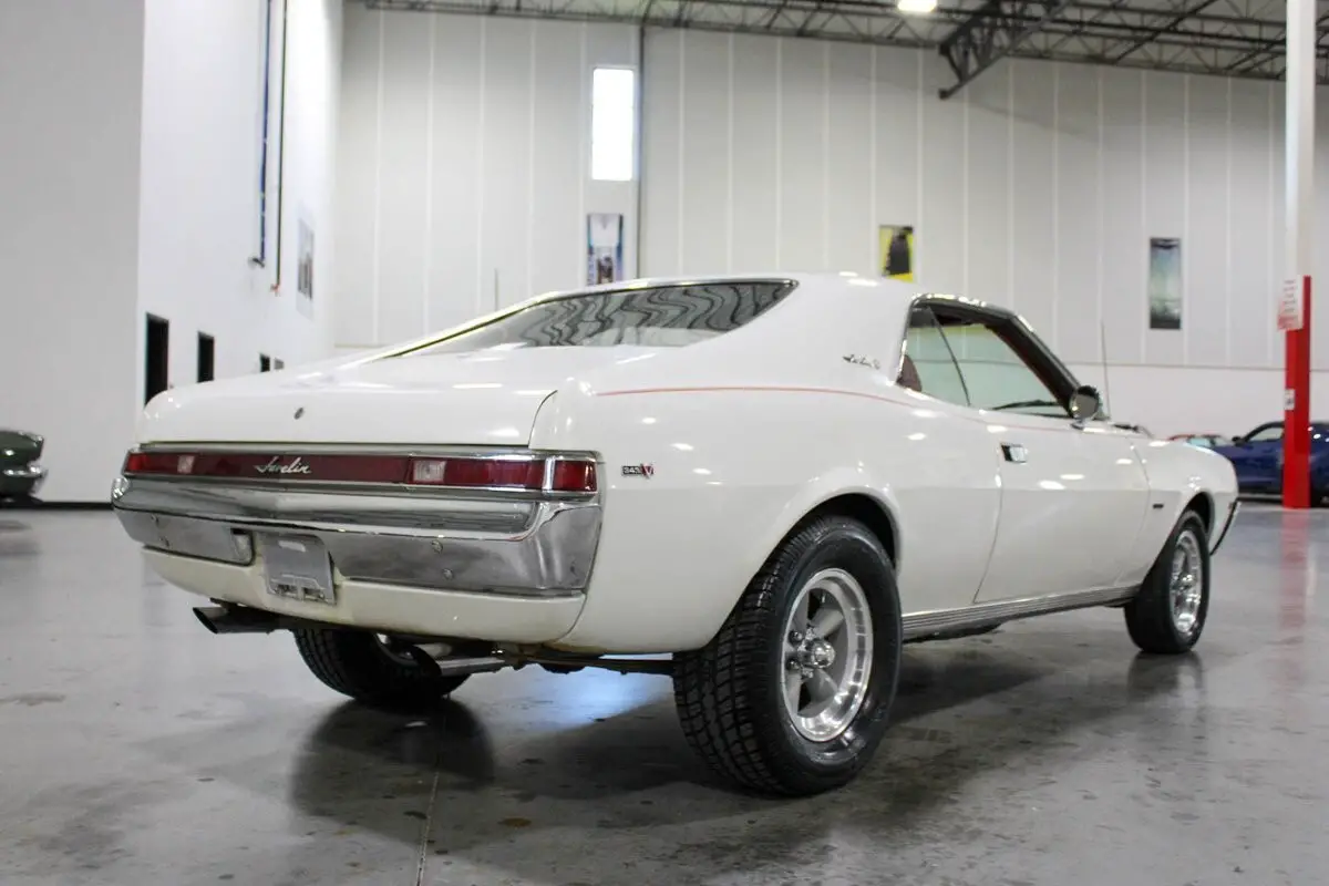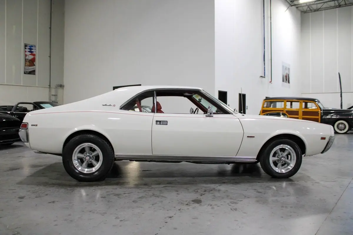This 1969 AMC Javelin SST captures the bold, distinctive spirit of American Motors' late-'60s muscle era with a blend of originality and performance-focused upgrades. Finished in Fresh White over a new red vinyl interior, the car presents a striking, period-correct contrast that highlights its classic fastback profile and muscular stance. Its crisp lines and subtle chrome accents are complemented by new 5-spoke American Racing wheels wrapped in