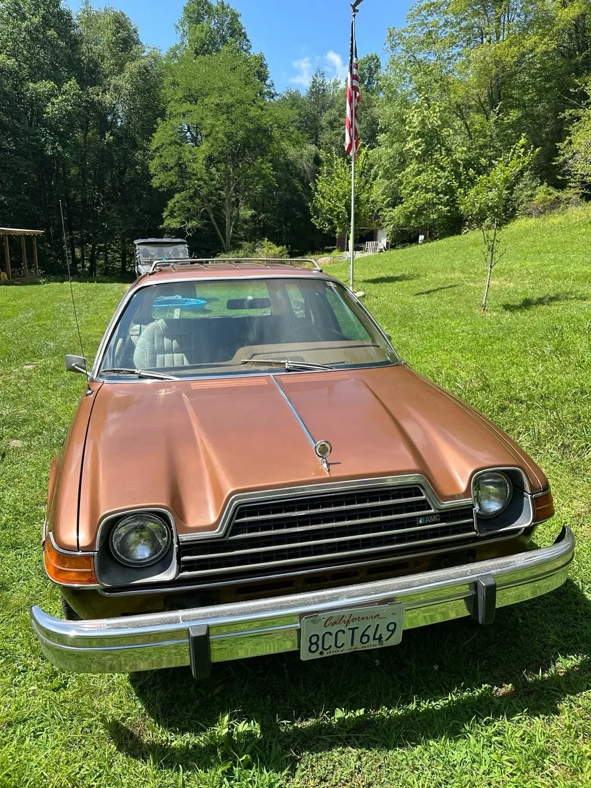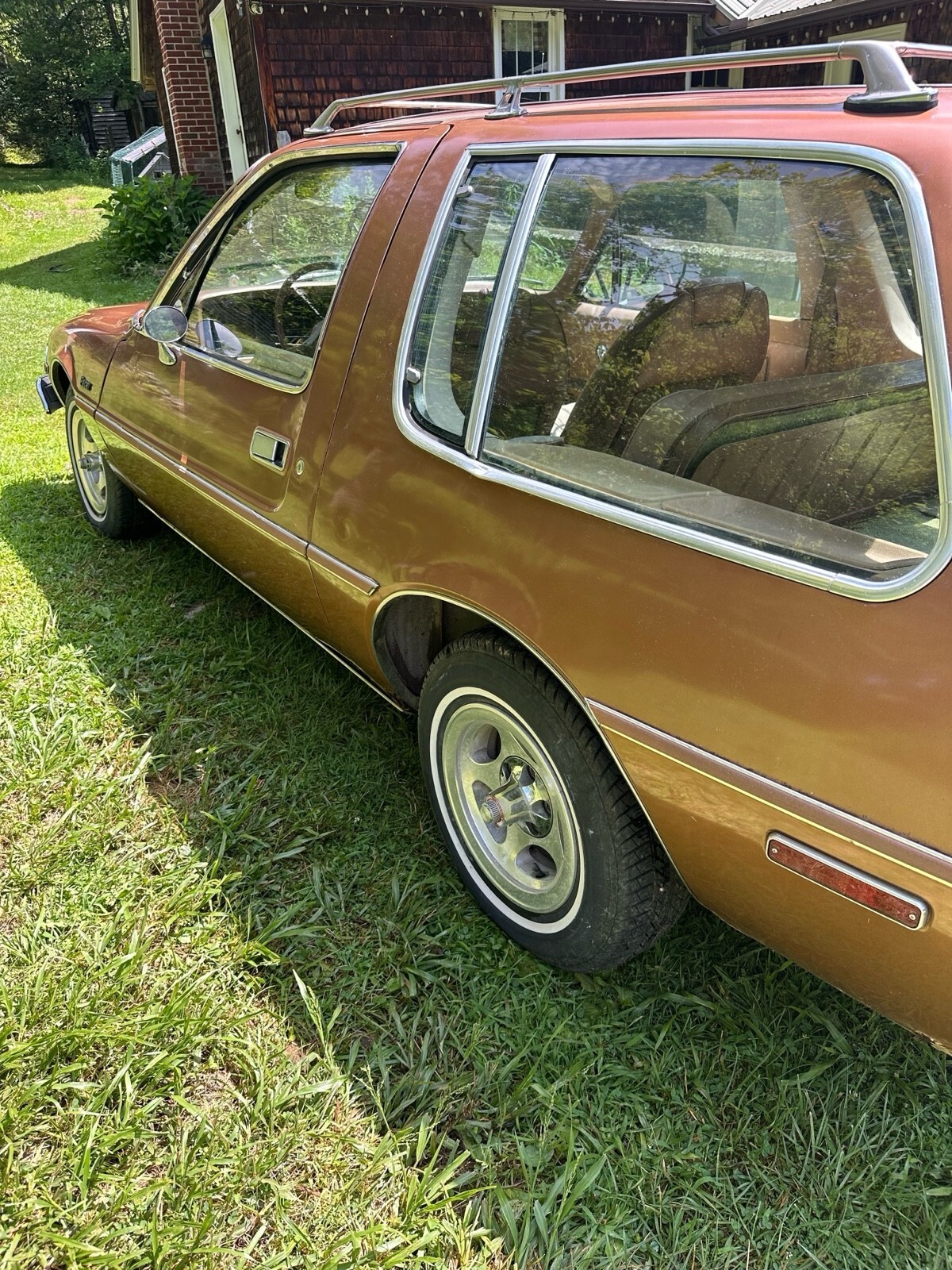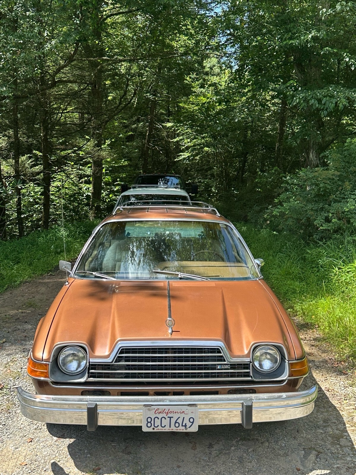 Car features the popular 258 inline 6cyl engine and automatic transmission with console. Has optional slotted mags which bear the name "American Motors around the center caps".