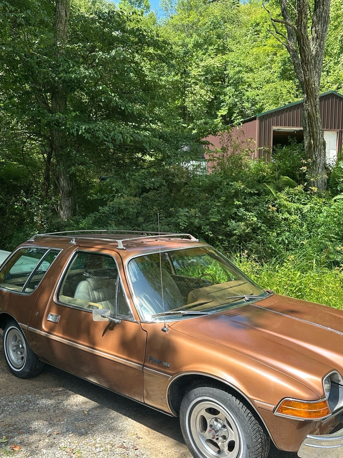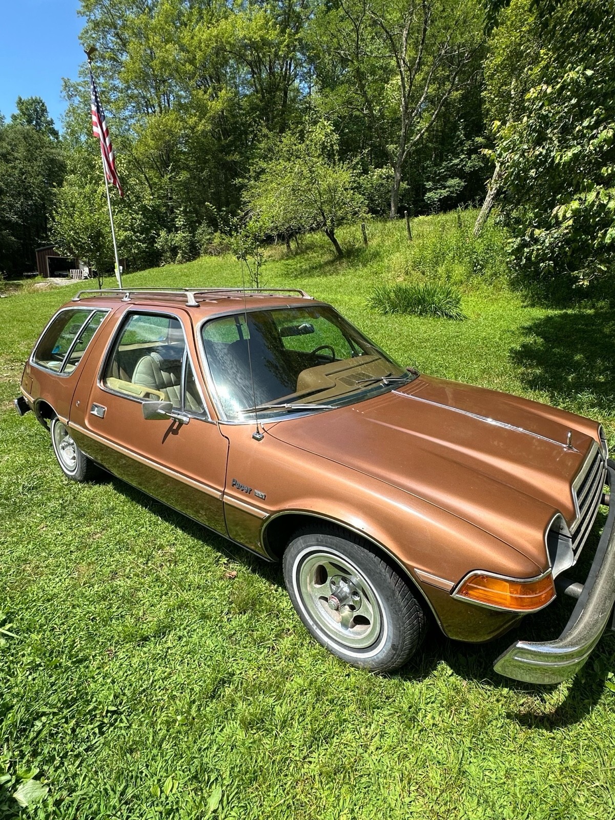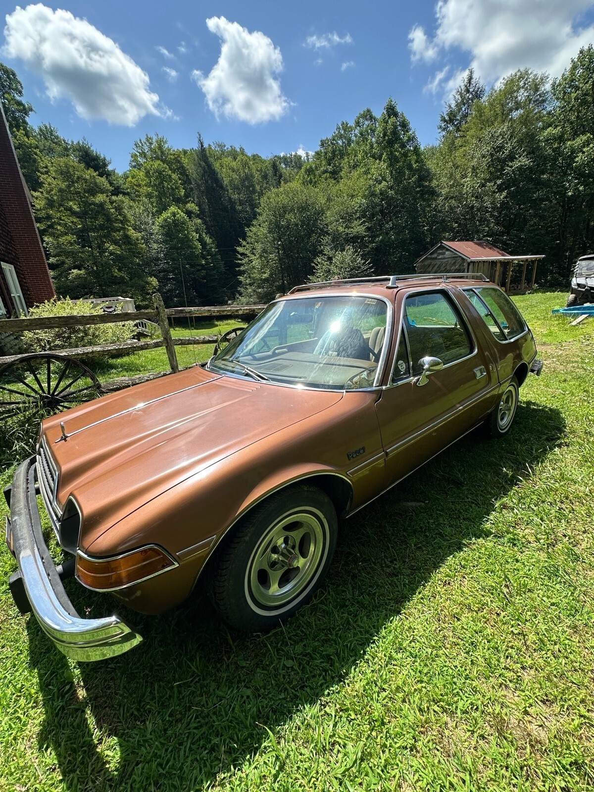 Car features the popular 258 inline 6cyl engine and automatic transmission with console. Has optional slotted mags which bear the name "American Motors around the center caps".
