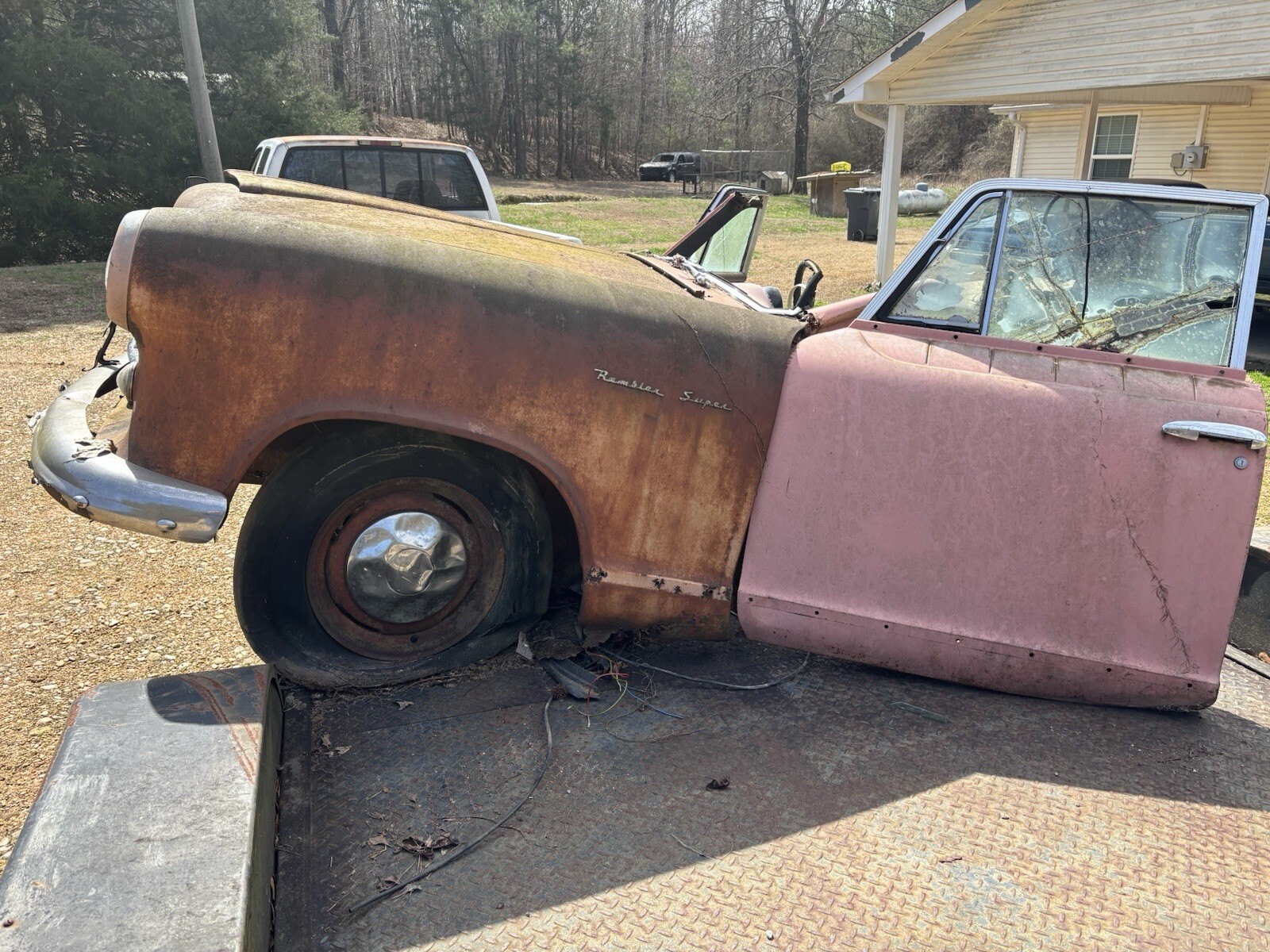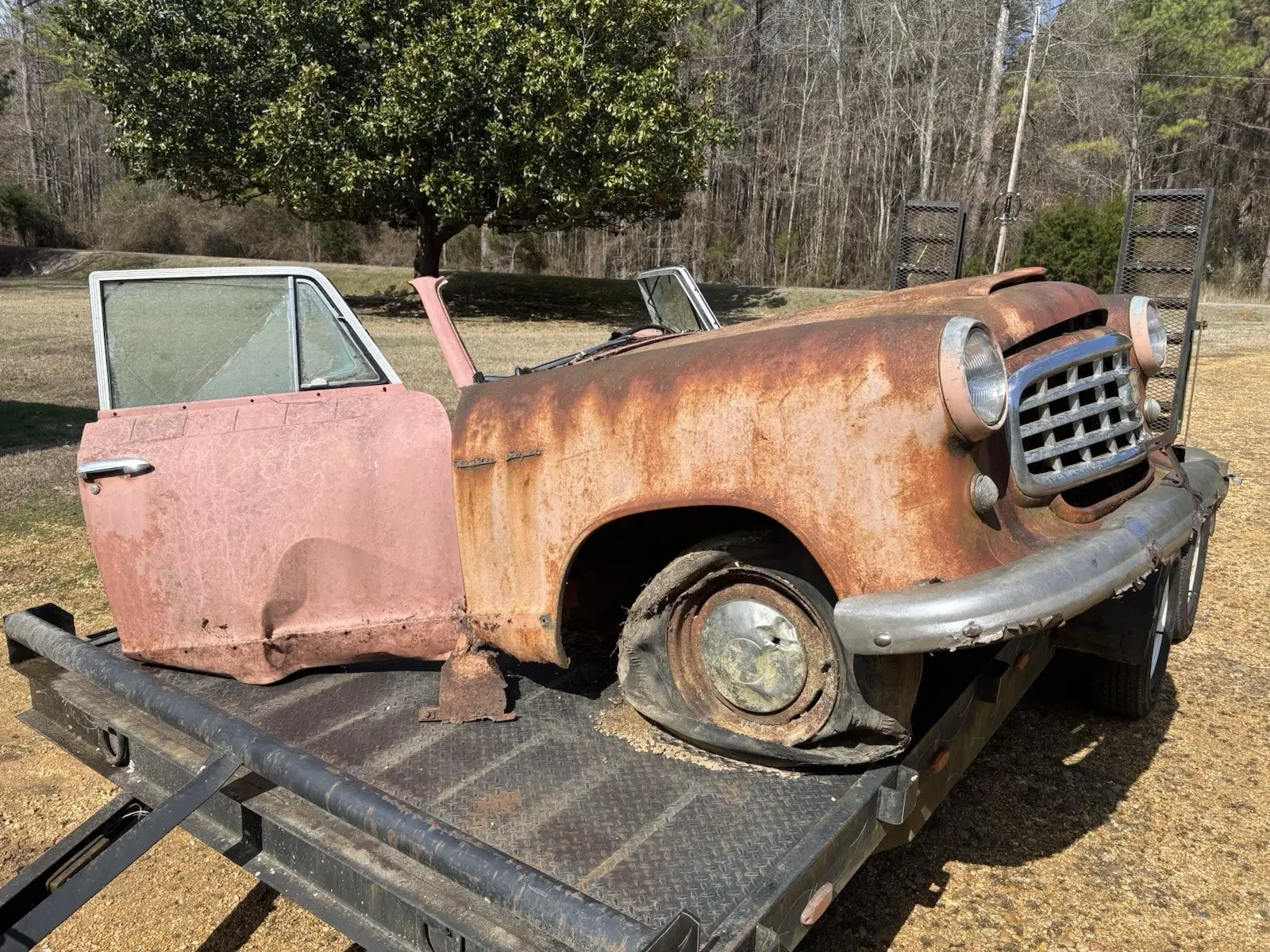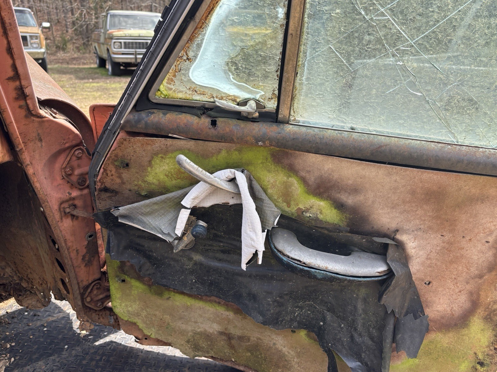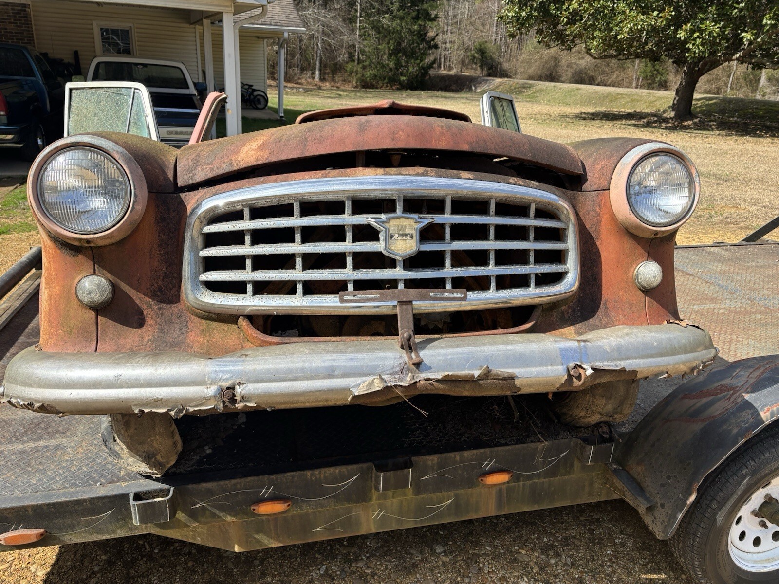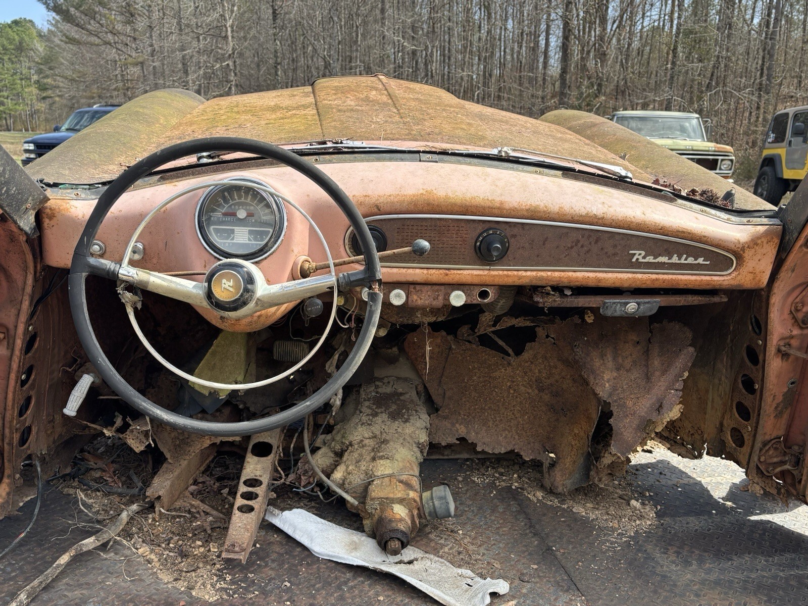 Lots of good parts. Shifter works transmission linkage moves freely. Hood opens and shuts good. Lower half of the fenders have significant rust but could be repaired. Engine appears to be seized but may be rebuildable. Steer wheel turns and suspension moves freely. LH door could be repaired. RH door possibly but it’s pretty rough. This piece has a lot of potential as automotive art. Could be turned into a bar. The dash would make a nice piece with a rustic shelf. I have included some photos for reference. I will sell as a whole or build into art. Message me with any questions. We do have a forklift to help with loading.