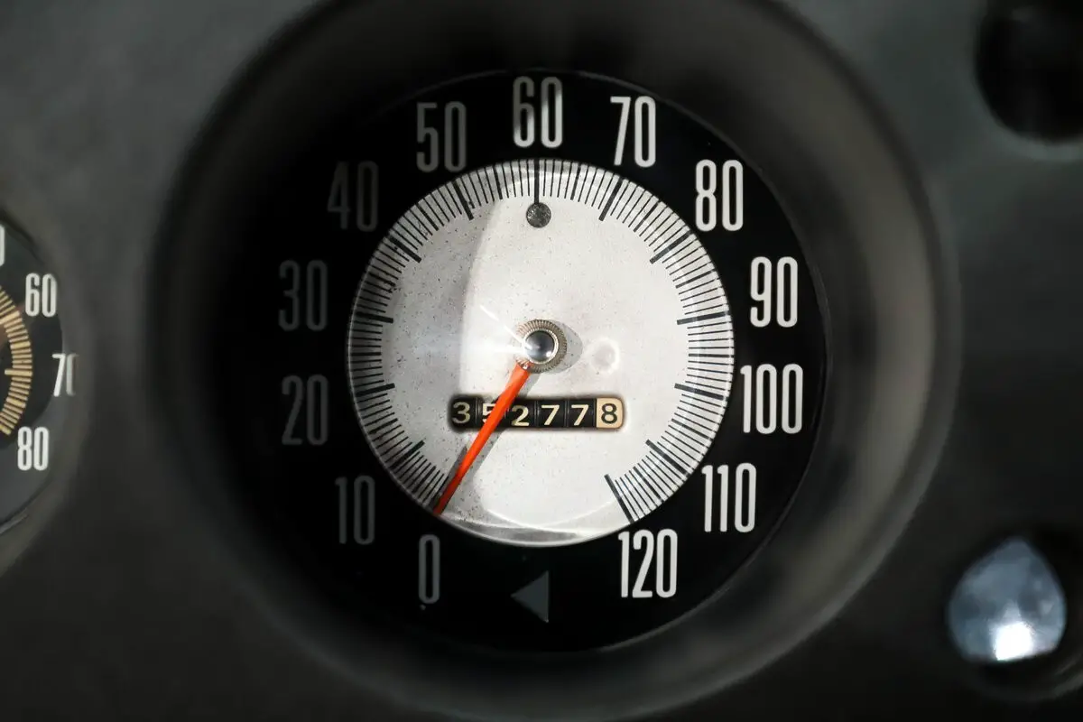 INTERIOR: The two-seater interior looks practically new. The carpet is fresh and fits beautifully front to back. The dash area is exceptionally clean with no splits in the pad, and it features a factory optional tachometer and AM/FM radio. The door panels and armrests are in great shape. The seats have been re-cushioned and upholstered, and both recline as they should. The plastic trim, headliner, and visors all present very well. The original steering wheel is showing just a couple cracks in the rim. The best feature? The Hurst 4-speed shifter rising from the floor-pure muscle car attitude.