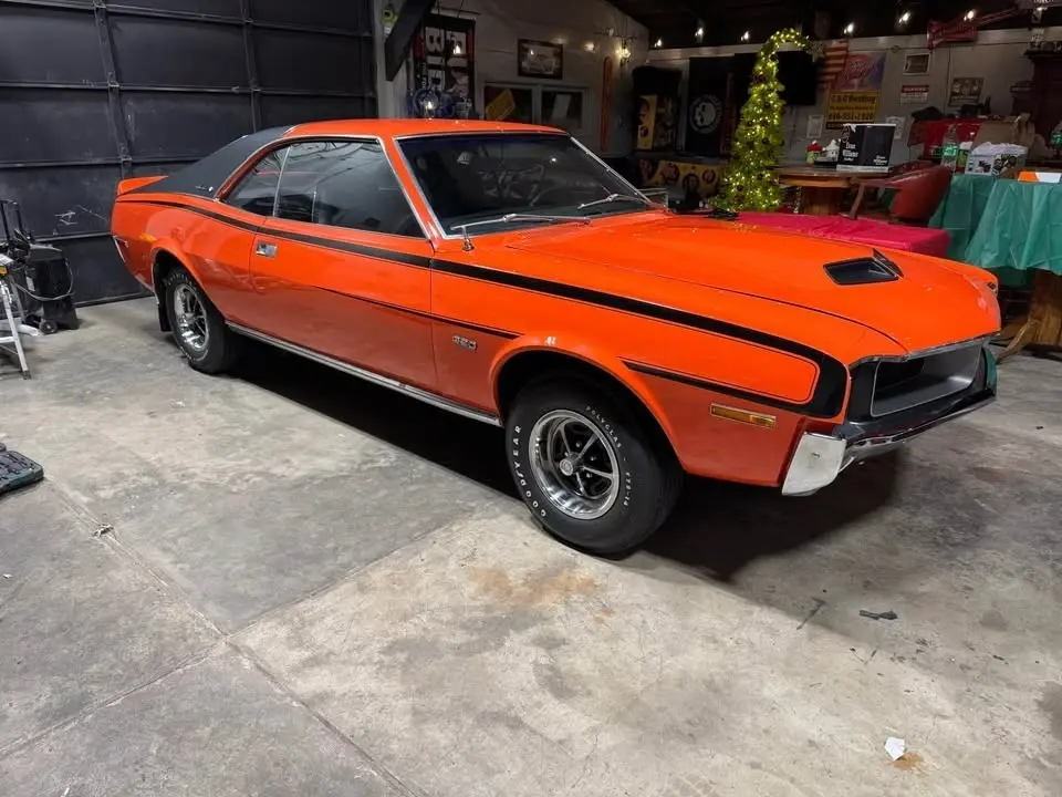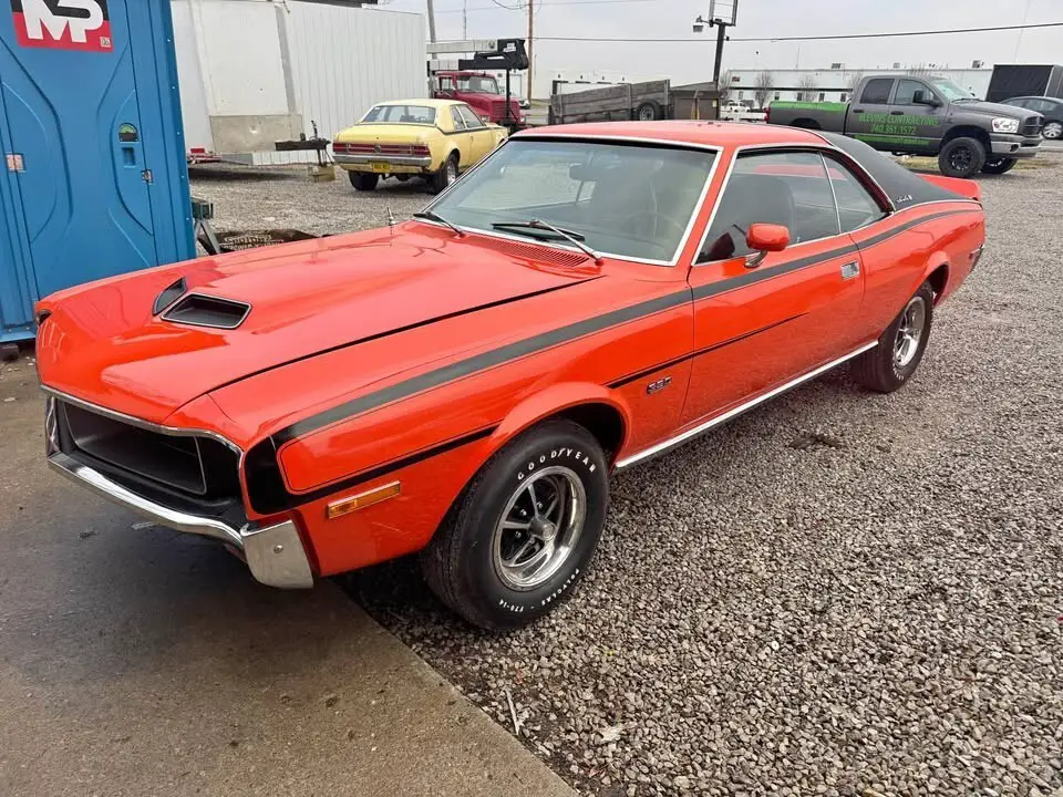 "The 1970 AMC Javelin is a classic collector car with a distinctive orange exterior and black interior. This 2-door coupe has a manual transmission and 8 cylinders engine, making it a powerful and sporty vehicle. With only 99,999 miles on the odometer, this AMC Javelin is in great condition and comes equipped with sport seats and power steering. It is a rare find for car enthusiasts looking for a piece of automotive history from 1970."