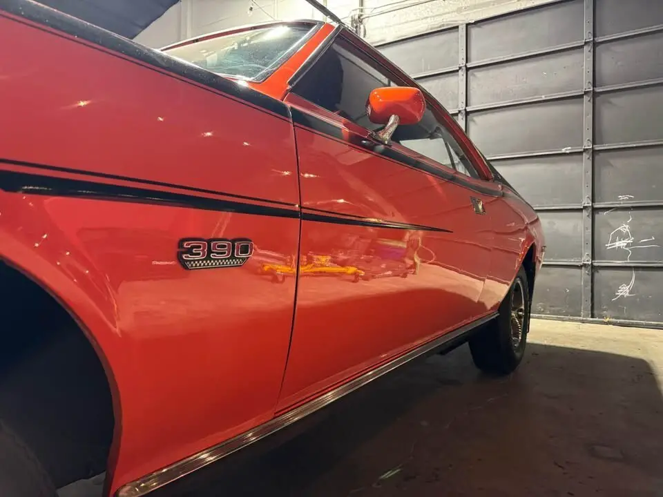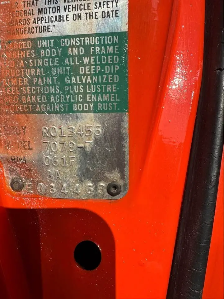 Fresh recent repaint of the original orange color. The previous owner added the Mark Donahue hood, spoiler, stripes and decals as a tribute, not an original Donahue.