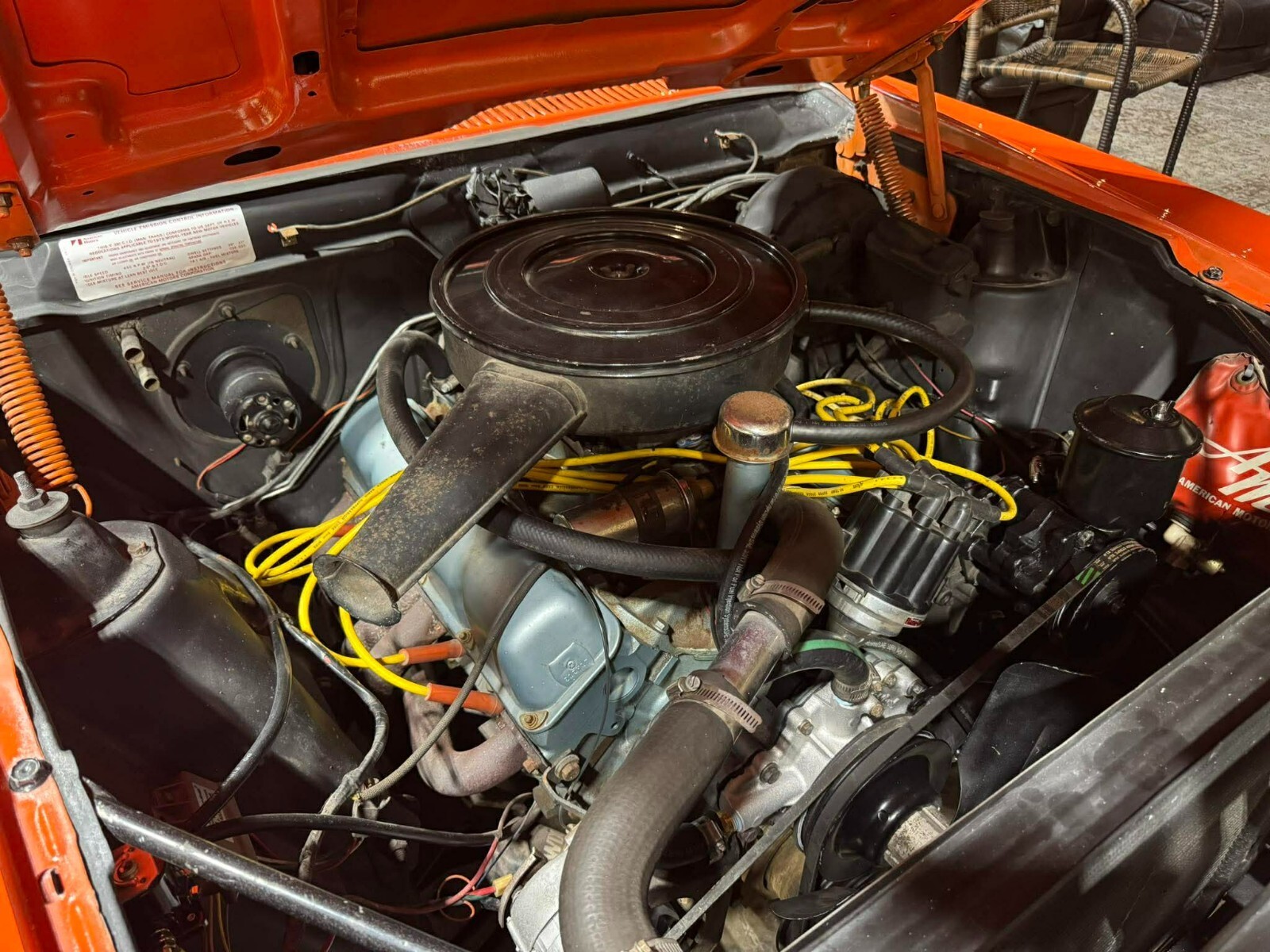 Recently rebuilt original 304 V8 with a mild cam, headers and 2.5 dual exhaust, sounds great. 4 speed manual works great as expected. Runs and drives, needs some sorting like carb adjustment, valve adjustment probably, etc.