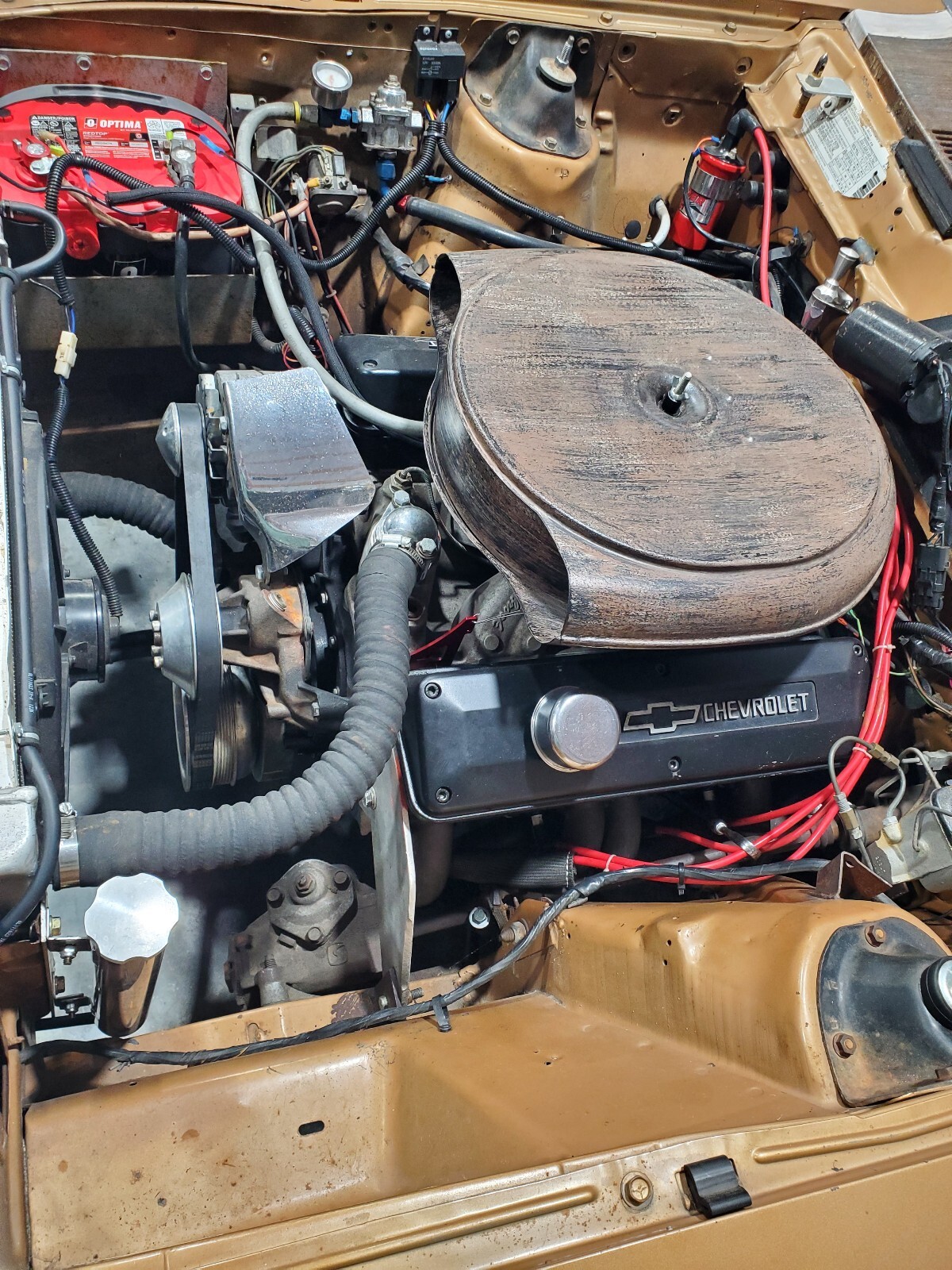 Runs, drives with a clear Texas title in hand! a small block Chevy that's been punched out to 377c.i., mated to a builtTH350 automatic trans with areverse manual valve body, sending power back to a narrowed rear with 4:10 gears. Back-halfed, tubbed, but still sporting a stock interior. Recently built rear seat, stitched and dyed to match the rest, with seat belts installed. There are flaws and little nuances, but the car shows well and runs even better. Believed to be wearing original paint with little to no rust.