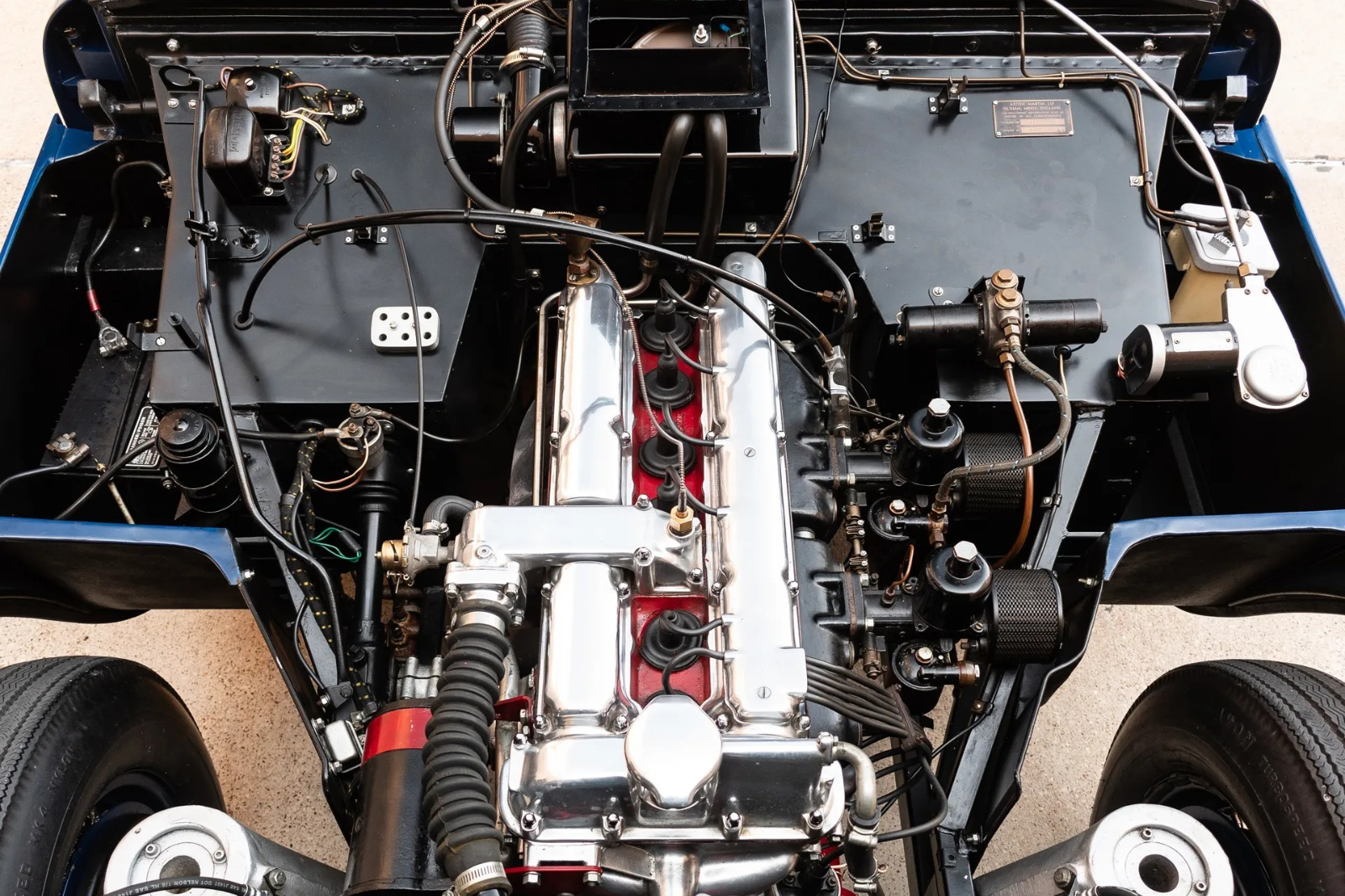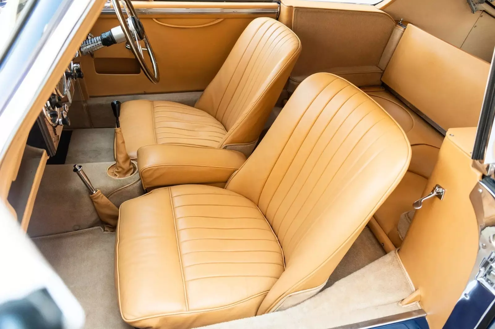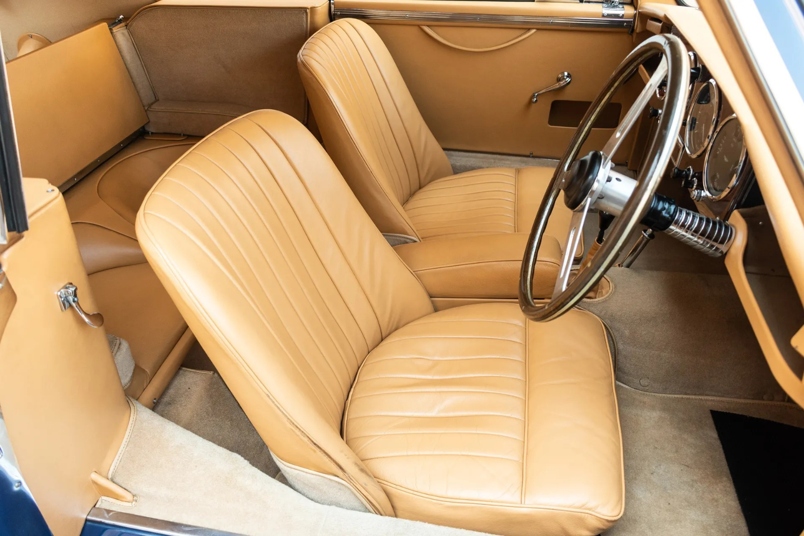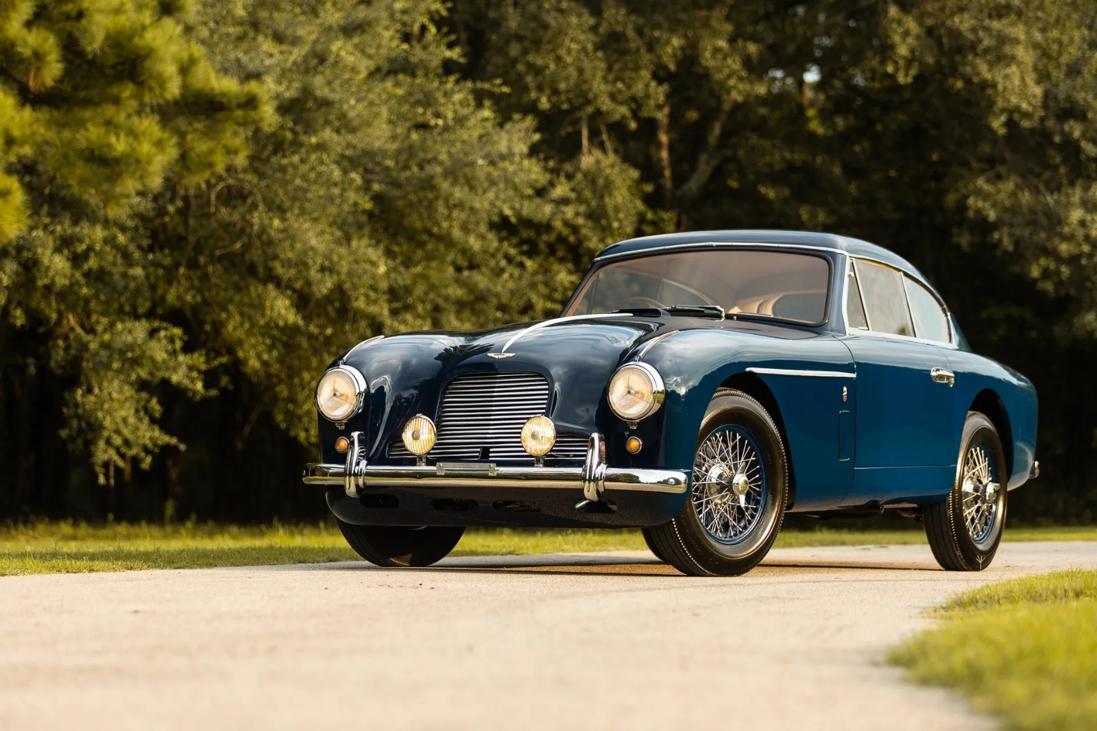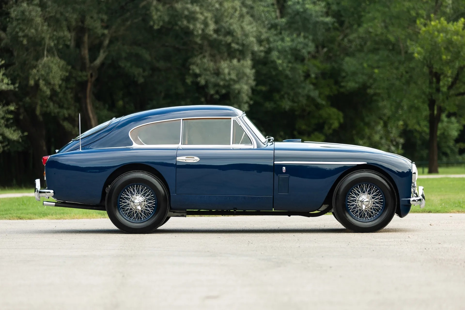 This 1956 Aston Martin DB2/4 was completed on 28 May 1956 and is one of only 199 Mark IIs built over two years of production. The matching 2,922cc DOHC inline-six engine remains fitted and is paired with the original four-speed gearbox and rear end. A large-valve cylinder head was fitted in 1958, along with performance intake manifolds. Finished in dark blue over beige Connolly leather, the car also features twin SU carburettors, Girling drum brakes, Raydyot fog lamps and body-coloured chassis rims. The service carried out in the summer of 2020 included a fuel tank reconditioning, cooling system refresh, a tune-up and more.