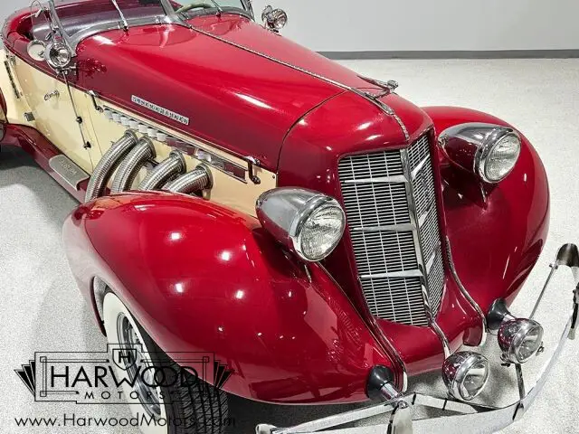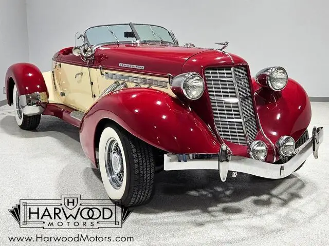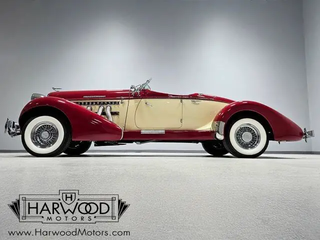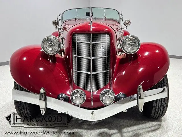 1982 build by California Custom Coach. 400 cubic inch Ford V8 with C6 automatic transmission. Power steering, power disc brakes. Top and side curtains included. Striking, fun, and easy to maintain, this Auburn replica delivers!