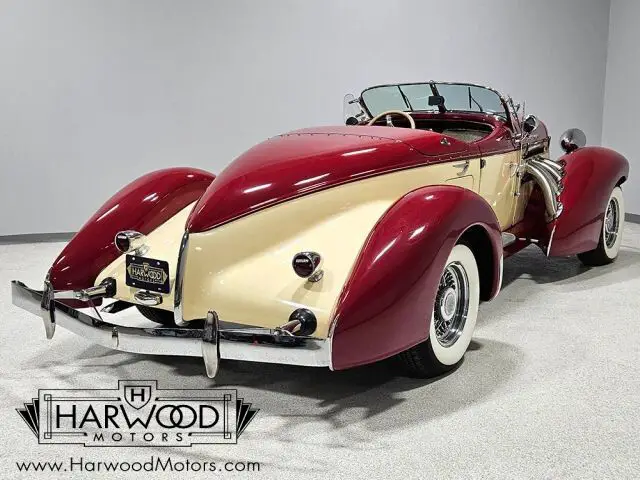 1982 build by California Custom Coach. 400 cubic inch Ford V8 with C6 automatic transmission. Power steering, power disc brakes. Top and side curtains included. Striking, fun, and easy to maintain, this Auburn replica delivers! The original Auburn speedsters were the Lamborghinis of their era?low slung, fast, and dramatic?and were designed for people who wanted to get noticed. The final iteration of the Auburn speedster, the 851/852 of 1935-36 were easily the most dramatic, combining the boat-tail styling with swept-back fenders, exterior side pipes, and a minimalist attitude that suggested speed was the
