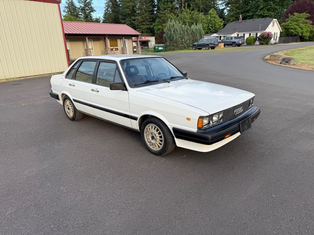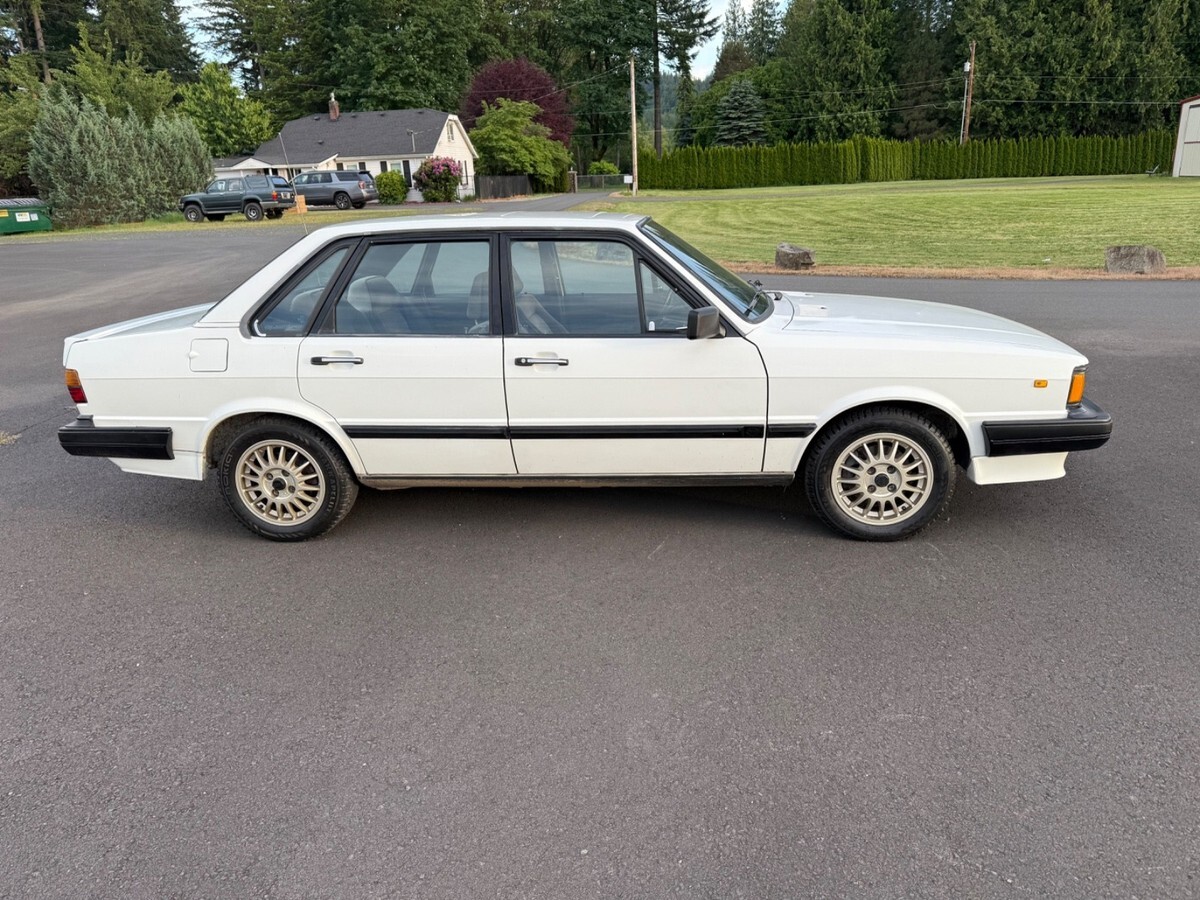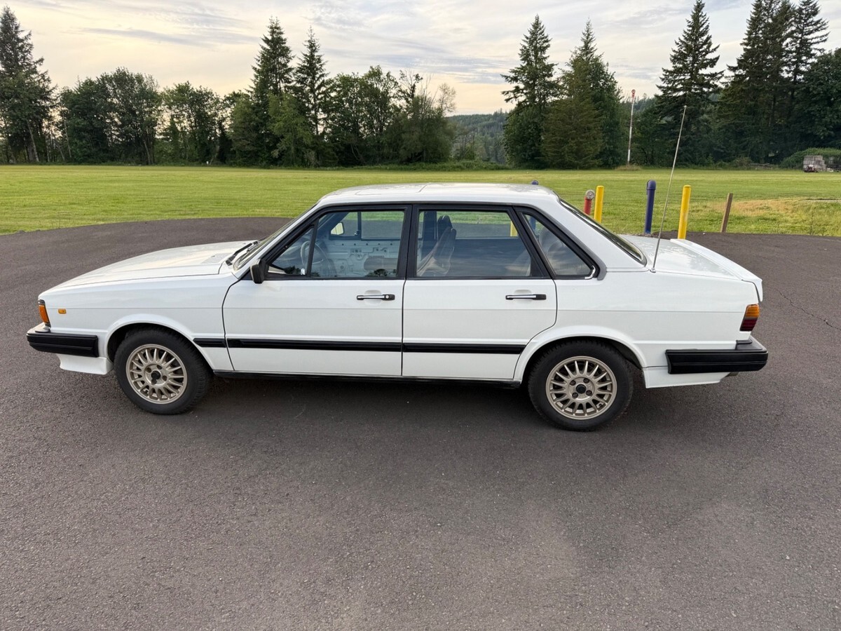 Very Rare First year 1984 Audi 4000 S Quattro Sedan in rare Alpine White. Ultimate snow car.Audi 80 in Europe, the 1984 was the official 1984 Winter Olympics car.Zero rust, I am the second owner. This car has only been in California and Oregon.All original car, hood and driver door has been repainted. Hood paint is not that great. The rest of the car is original paint. Car has been garaged entire life. I’ve repainted the bumpers and the lower front spoiler. Replaced everything I could when I bought this last summer. Window regulators, door seals, H1/H4 headlights, taillight, clutch master cylinder, battery terminal, AC Hose, AC needs recharge.Power locks don’t work. Stereo doesn’t turn on, odometer doesn’t work which seems to be common, so true miles are unknown. This car runs well and drives good. Studded tires on it now and come with another set of factory R8 Ronal wheels. One for summer one for winter. Had all dings dents I could removed by paintless dent removal.Has not been a white 84 for sale for like 10 years. Last sale fell through due to financing. Please have money to purchase. $500 non refundable deposit after sale.Many more pictures and videos are available, just ask.