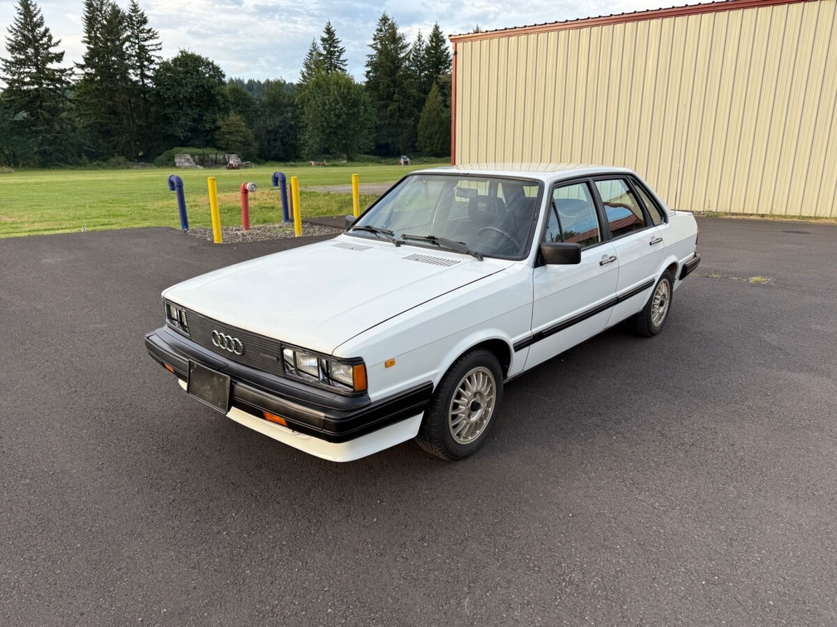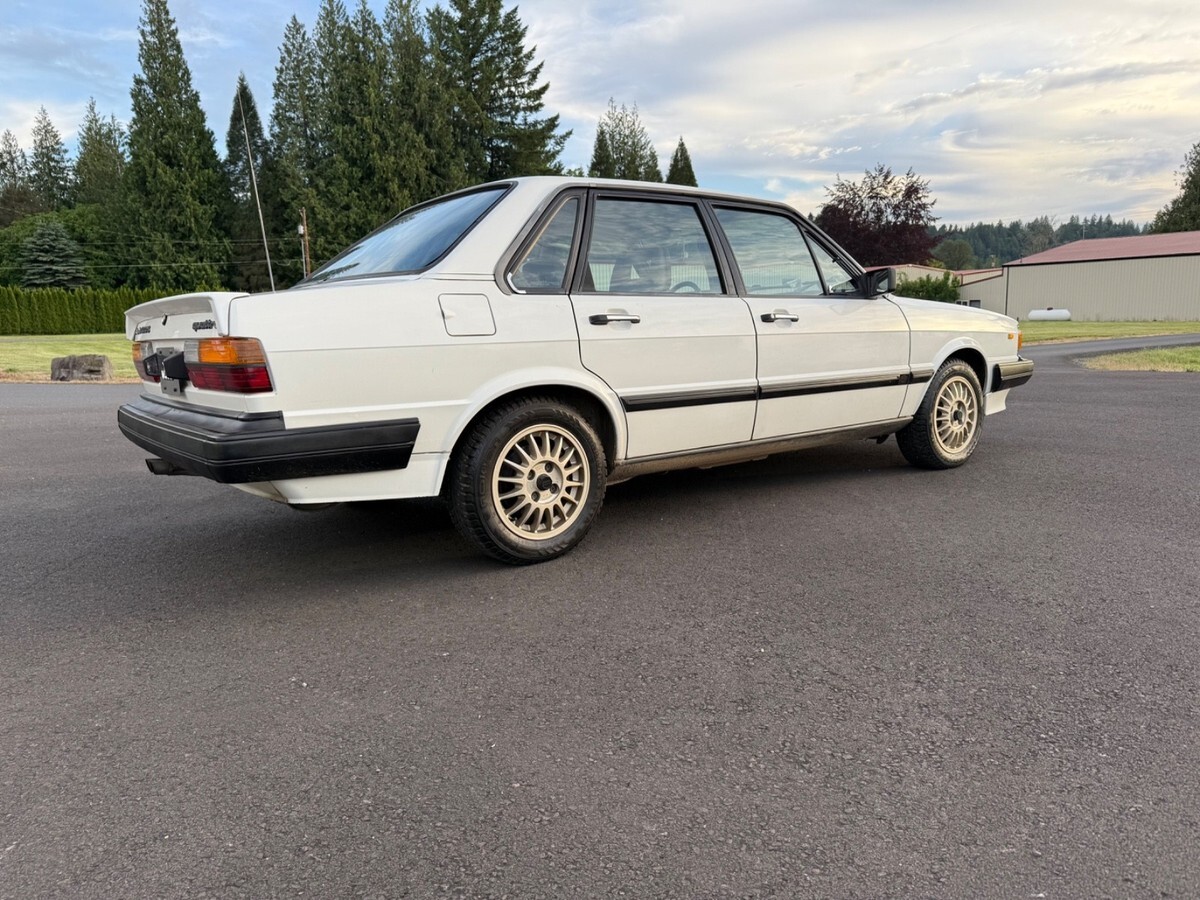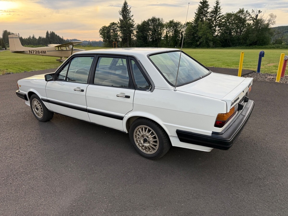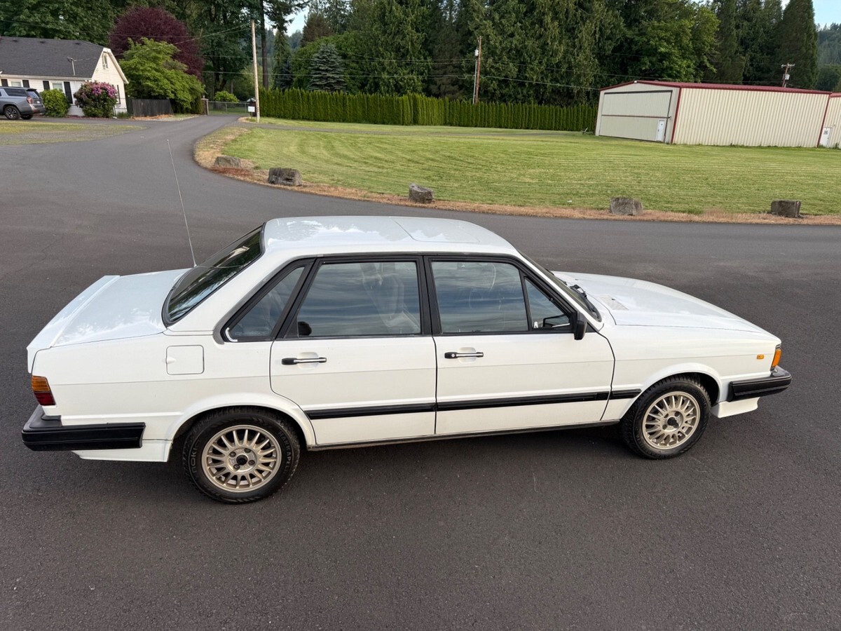 Very Rare First year 1984 Audi 4000 S Quattro Sedan in rare Alpine White. Ultimate snow car.Audi 80 in Europe, the 1984 was the official 1984 Winter Olympics car.Zero rust, I am the second owner. This car has only been in California and Oregon.All original car, hood and driver door has been repainted. Hood paint is not that great. The rest of the car is original paint. Car has been garaged entire life. I’ve repainted the bumpers and the lower front spoiler. Replaced everything I could when I bought this last summer. Window regulators, door seals, H1/H4 headlights, taillight, clutch master cylinder, battery terminal, AC Hose, AC needs recharge.Power locks don’t work. Stereo doesn’t turn on, odometer doesn’t work which seems to be common, so true miles are unknown. This car runs well and drives good. Studded tires on it now and come with another set of factory R8 Ronal wheels. One for summer one for winter. Had all dings dents I could removed by paintless dent removal.Has not been a white 84 for sale for like 10 years. Last sale fell through due to financing. Please have money to purchase. $500 non refundable deposit after sale.Many more pictures and videos are available, just ask.