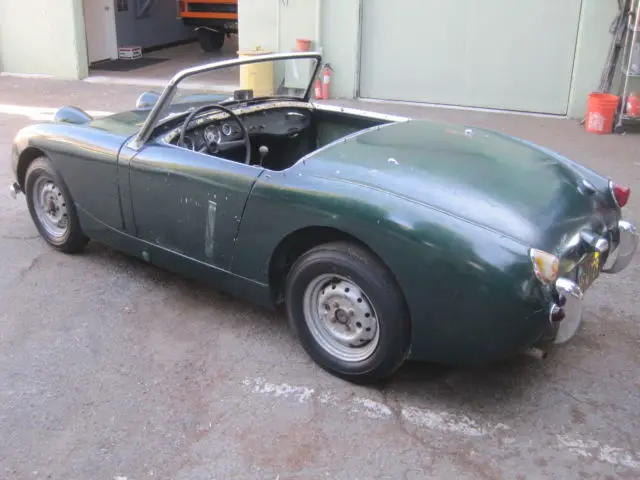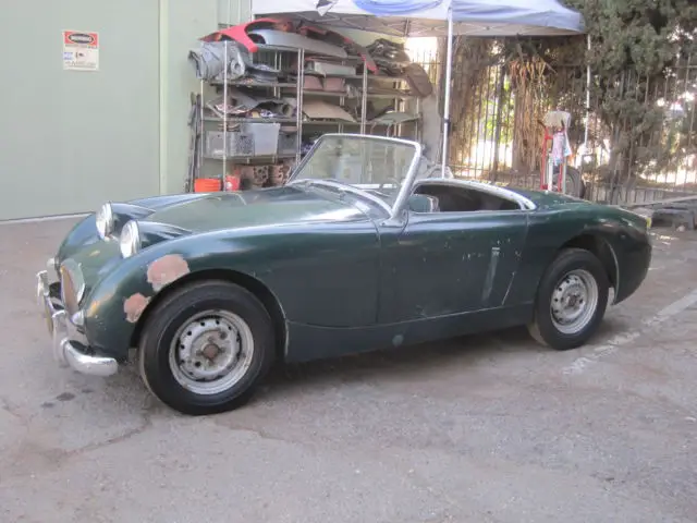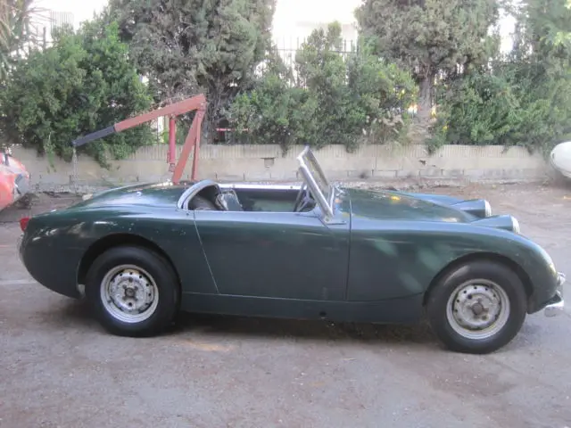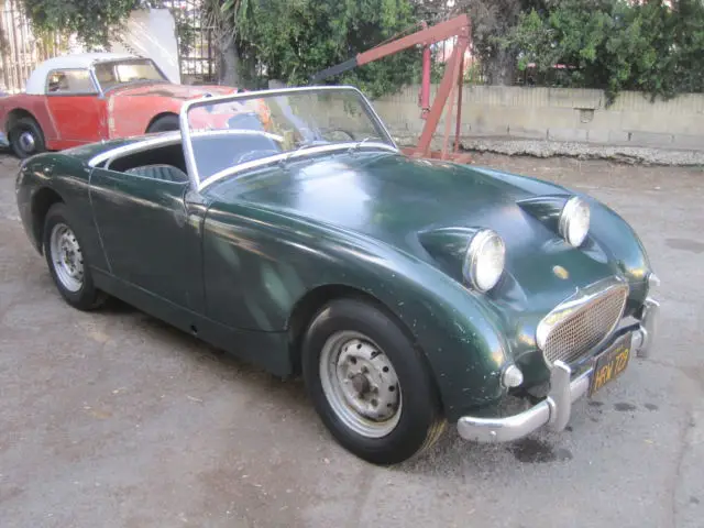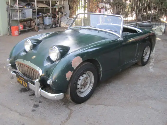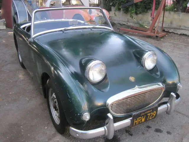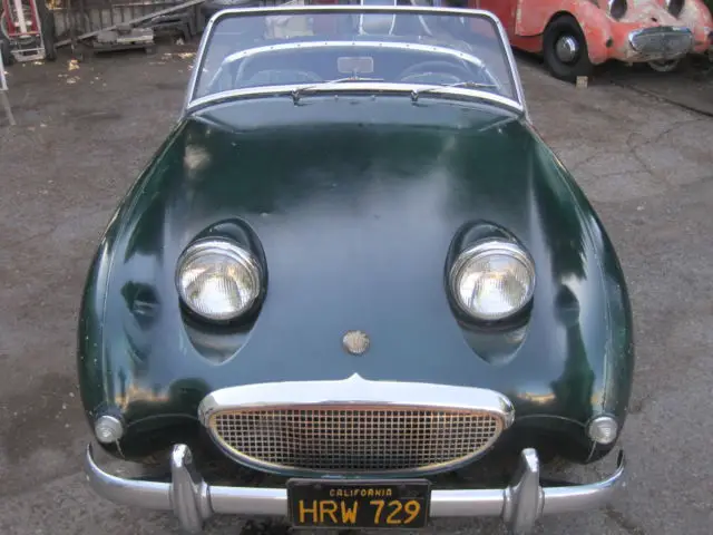 1960 Austin Healey Bug Eye, Original Paint, Has been in storage since 1972 when it was last registered. Triple Green on Green. EXCELLENT CHASSIS, AND BODY, NO RUST !!!! Best Bug Eye I've seen. The grill, and front two horns are perfect, it even still has the front hood spring latch present, which is usually missing. The floors are perfect. The rear floor still shows the manufacture number written by the factory. Very nice dash, with all gauges present. Odometer shows 59,490 original miles !!! The door fit is exceptional, all lines on this care are straight and correct. Engine turns over by hand. This is the perfect Bug Eye for a restoration, if you are looking for an original survivor, this is it !!!