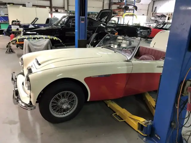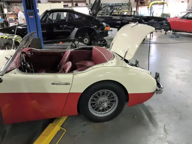This is the best known of the "Big Healey" models. This beautiful 1960 MK I 2+2 in Ivory/Red, was restored 25 years ago, was garaged, and has had very little mileage since then. Interior red with white piping, in excellent condition. Only 55463 original miles. Current owner since 1989. Restoration completed in 1991 by Walter Hickling, local Healey expert of 40 years. This was Walter's final restoration. Documents of all work done since 1989 included. Not shown in pictures, but includes side curtains, soft top and tonnea cover. All sales are final and vehicle does not come with any warranty. Buyer is responsible for shipping and I can help with arrangements.