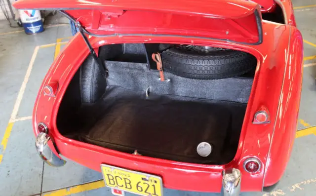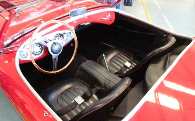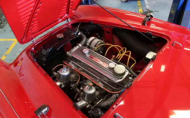 This car has been unbelievably well maintained and has been updated to 100M specifications. The owner was very particular, and has done lots of great work and updates to this car, making it a fantastic drive. The upholstery is all leather, and in great condition. The car as it sits has Dunlop wheels installed, but does come with a set of chrome wires and painted wires. The car also comes with its stock bumpers and everything needed to convert it back to stock if one wishes. A factory hardtop, which is very rare, is also included with the sale.