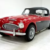 With the advent of the MK II we are beginning to see the trappings of the Healey/MG era with both cars looking eerily similar. Bathed in Red paint, which presents nicely with just a tinge of some orange peel, but overall very nice. Speaking of very nice the chrome, trim and badging on this car is excellent. From the headlights and fog lights fronting the grille to the windshield trim, rear trunk mounted luggage rack, and simple chromed "bumperettes" on the rear, it's all sparkling like new. Gaps are well minded and top presents in good shape in black canvas. Standard steel wheels topped by AH engraved dog dish caps all around, and we are ready to hop inside.