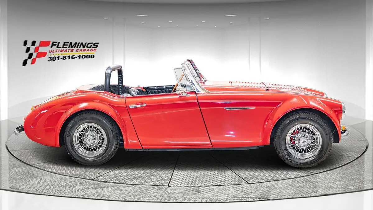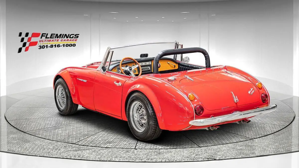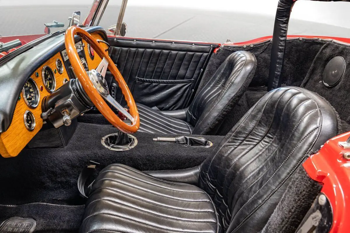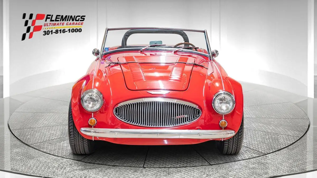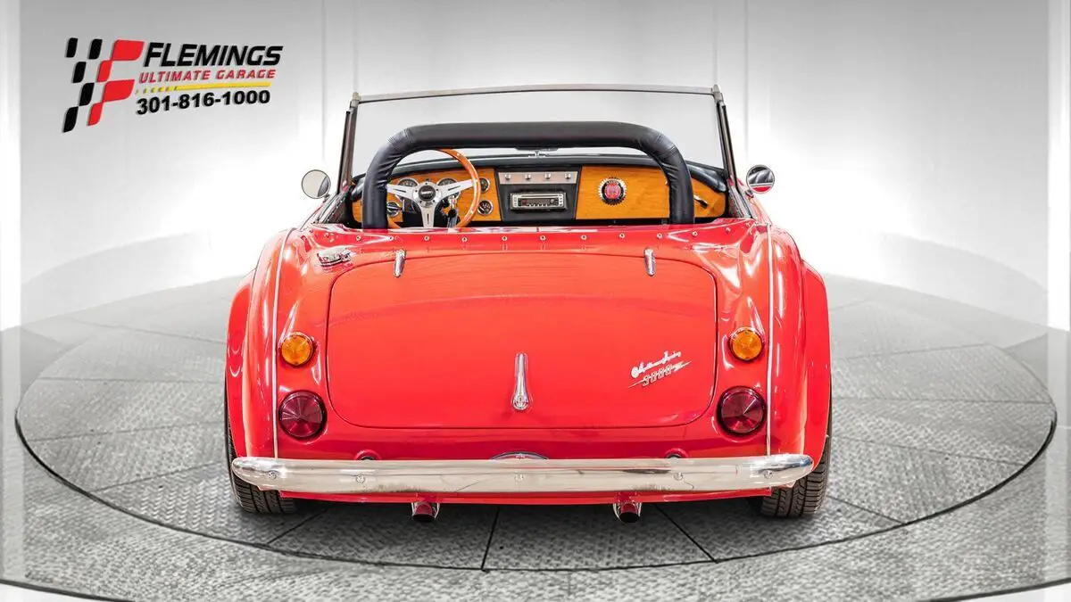 • Austin Healey 3000 Sebring V8 replica, talk about a sleeper, • Upgraded 302cid V-8 at 300 hp (100% more power!), • close ratio 4-speed manual transmission, • Mirror finish Signal red paint show waxed and detailed, • Great looking black bucket seating, • Hand rubbed burl wood dash, • Tilt steering column easy exit + entry, • Full array of VDO gauges incl 7K rpm tack-120 pseedo-volts-oil-water, • Safety upgraded padded roll bar, • Chrome real wire wheels w/ hi speed radials, • Great sounding dual exhaust, • Power disc brakes, • Great sounding digital stereo system, • 3 spoke wood + stainless wheel, • Painted removable hard top, Wicked fast, great sounding roadster, beautifully done reproduction.