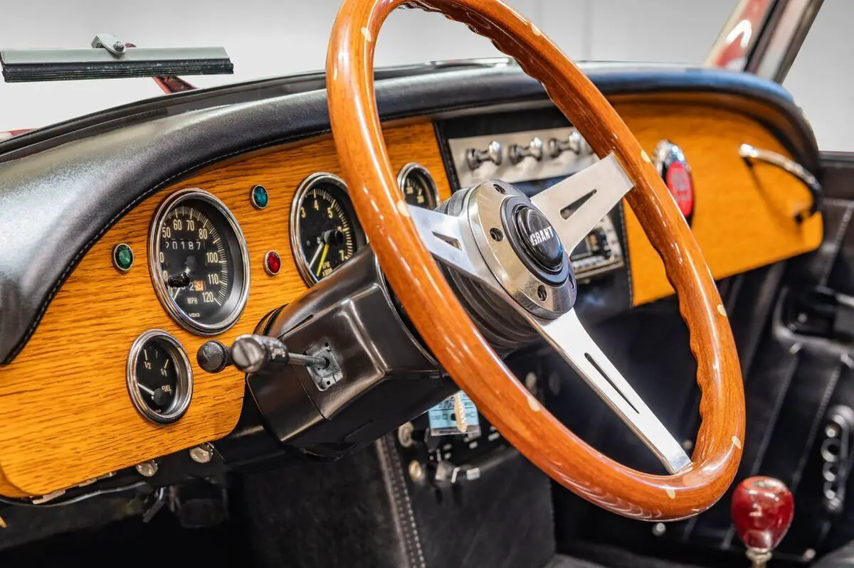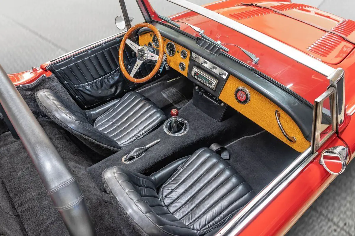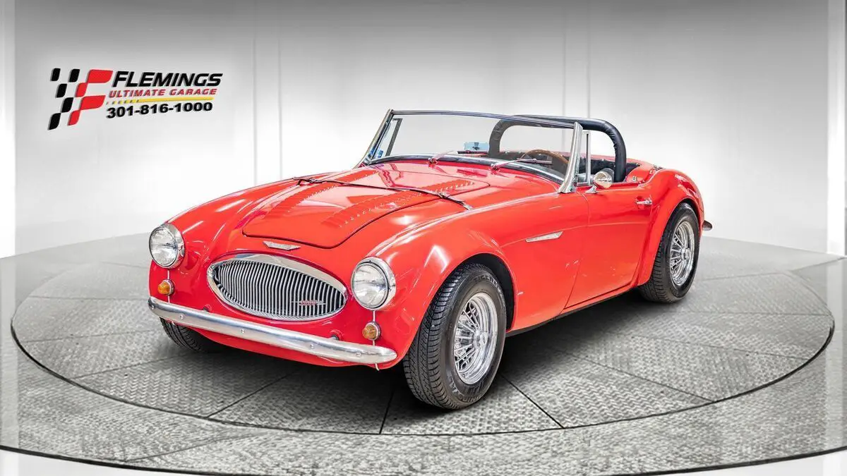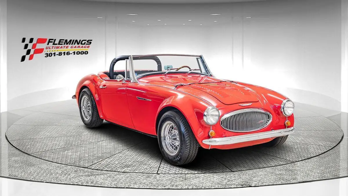 • Austin Healey 3000 Sebring V8 replica, talk about a sleeper, • Upgraded 302cid V-8 at 300 hp (100% more power!), • close ratio 4-speed manual transmission, • Mirror finish Signal red paint show waxed and detailed, • Great looking black bucket seating, • Hand rubbed burl wood dash, • Tilt steering column easy exit + entry, • Full array of VDO gauges incl 7K rpm tack-120 pseedo-volts-oil-water, • Safety upgraded padded roll bar, • Chrome real wire wheels w/ hi speed radials, • Great sounding dual exhaust, • Power disc brakes, • Great sounding digital stereo system, • 3 spoke wood + stainless wheel, • Painted removable hard top, Wicked fast, great sounding roadster, beautifully done reproduction.