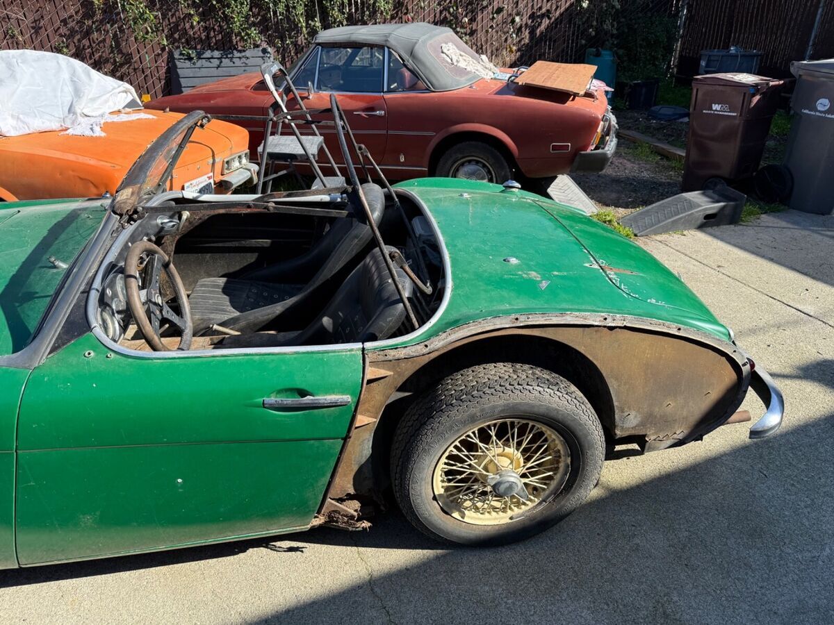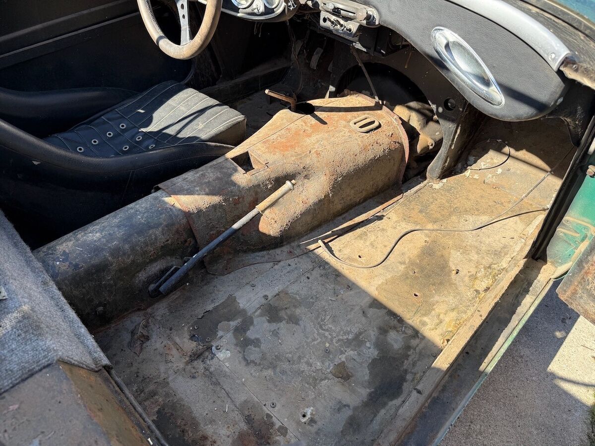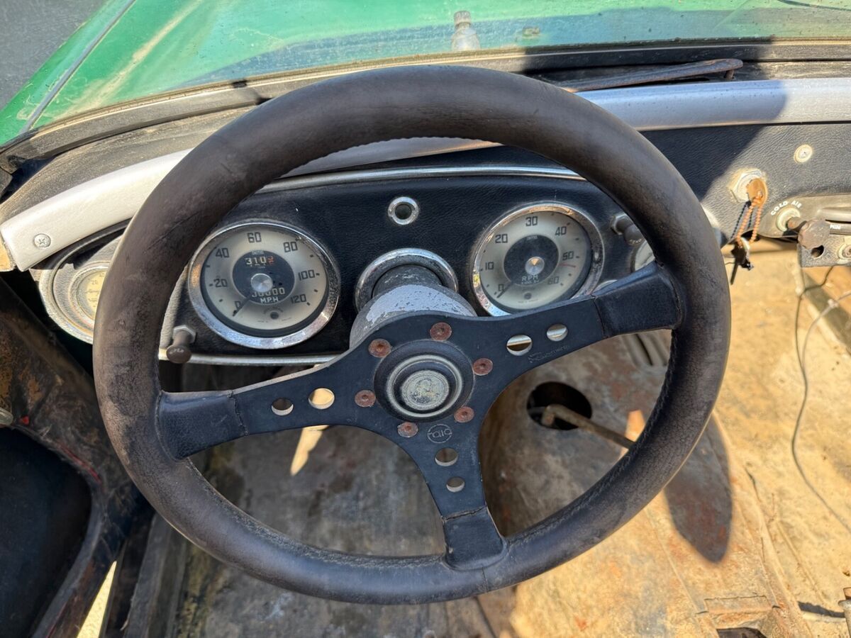 I drove a long way to a central valley town that was frozen solid. I only had a sweatshirt and was preparing for a shivering look at this and 4 other little roadsters. This car Lived in SoCal its whole life until recently. The car was owned by a man named Jacques since at least 1977. He threw away the rear fenders when they had gotten rusty. The car has sat dormant for decades. Its had a robust transmission built for it. All the bells and whistles on the trans. There are many new brake parts in the boxes. The car was upgraded to 12V. It's a terrific car to build. There are mind boggling ancient receipts and notes from the owner from himself. According to the notes he left this is one of 285 cars imported to the USA & one of 329 total units produced. Also in the notes that it is one of the last cars built before the change to 3000. The engine is an unknown but I heard it was knocking. I also was told it's non-matching. I will try to figure that out, any tips would be appreciated. Title and shipping available, thanks for looking, Dan