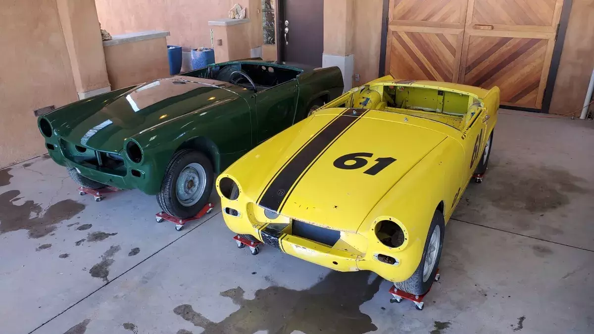 All inventory has been photographed. Contact me for a link to view. The inventory and photographs also include the race spares, and the stock parts removed from the Yellow Car in 2002, and race parts removed in 2023,and new, unused parts. There are spare doors, fenders, a hood and trunk lid. The parts package does not include interior panels, seats, or carpet, or a good condition top for the Green Car. It does include the parts needed (basket case engine) to restore Green Car to running.