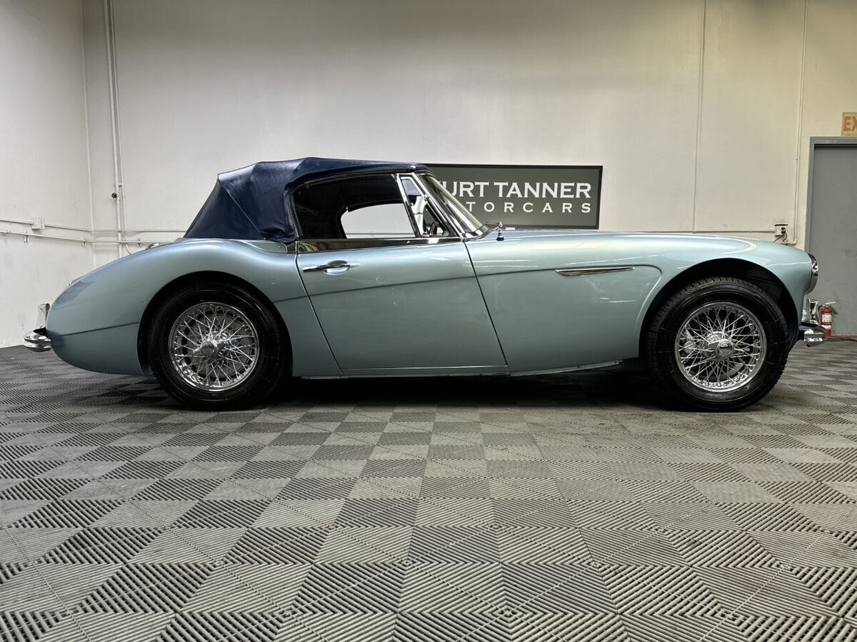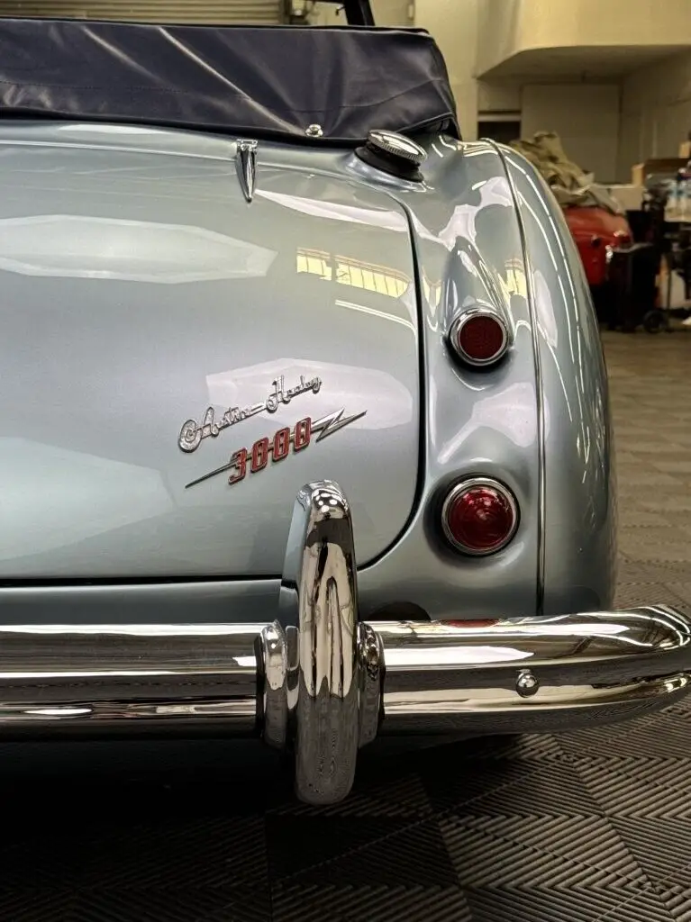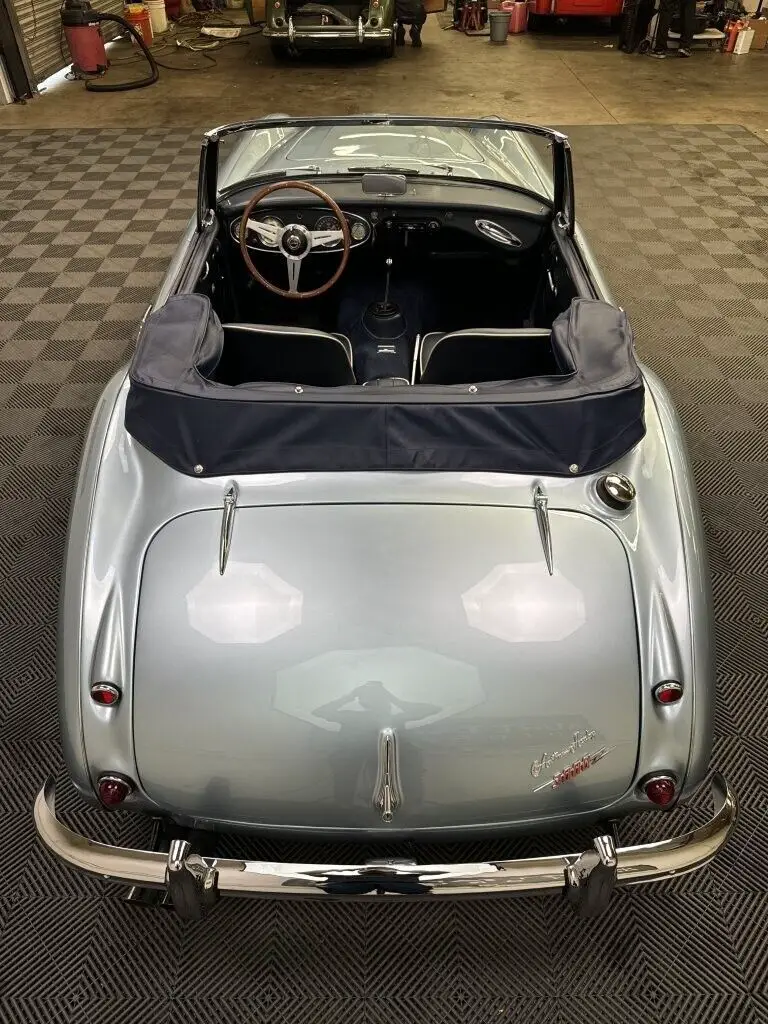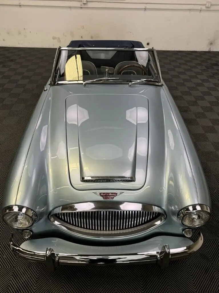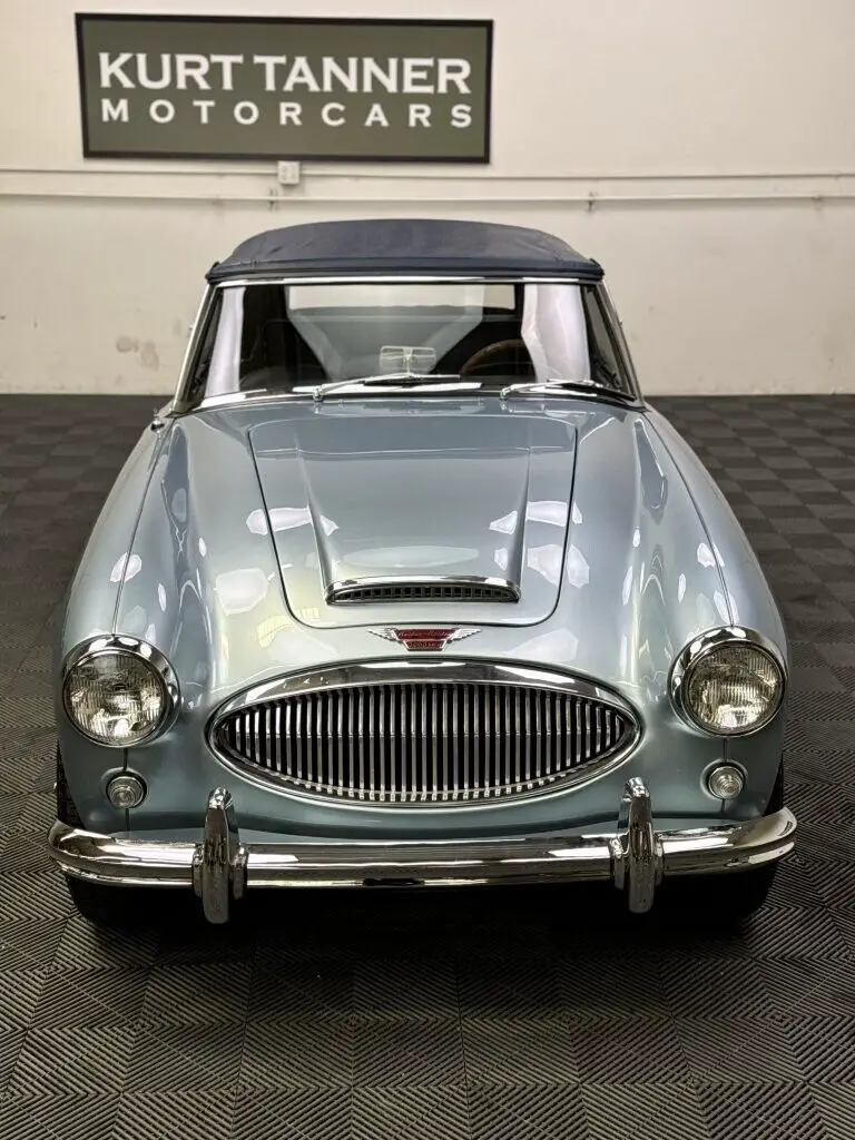 -The 3000 MK2 BJ-7 of 1963 was the first “convertible” Big Healey model that had a lovely, snug, easy-to-use folding soft top, wrap around windshield, swiveling quarter lights and proper roll-up windows. Weather protection was much improved from the earlier roadster models. The reversion back to twin carbs made tuning easier with no horsepower lost, still around 131bhp, still coupled to the desirable centershift gearbox.-Purchased last year from the Northern California Bay Area, this BJ7 presented here has amazingly spent the last 50 years in the same residential garage ! It was discovered in excellent, preserved, original condition with original paint and interior, still retaining it’s pair of original issued black/yellow license plates which match it’s CA title from 1975. It was upgraded sometime in the early 1970’s with a later model, low mileage, BJ8 3000 MK3 engine, carbs, and gearbox (150bhp).-KURT TANNER RESTORATIONS just completed in March, 2025 a fresh, total cosmetic and partial mechanical restoration to high standards with details as follows:-EXTERIOR COACHWORKS restoration includes a complete strip down of exterior bodyshell- brightwork, doors, glass, rubber, trunk compartment, interior.-Power washing of entire car including engine compartment, trunk, interior, undercarriage, suspension.-New show quality bodywork and paintwork in basecoat/clearcoat system. Repainted undercarriage with detailed suspension.-Existing excellent original chromework polished, new bumpers and overrider set. Restored door aluminum.-New total body rubber and interior rubber kit fitted. Newer windshield. Door internals serviced with new driver’s door glass, nylon guides.-INTERIOR RESTORATION includes 100% new Concours retrim in correct Navy Blue. Moss interior panel kit, carpet kit and underfelt, leather seat kits front and rear,leather armrest, seat foam, door seals, 2-point black lap seat belt set, restored top frame,webbing, and wood, fitted Everflex top with matching top boot,top seals, upgraded Tourist Trophy slotted wood wheel, black Armacord trunk kit, hold-down strap, restored heater box with new valve/hoses.-MECHANICAL IMPROVEMENTS include painted drivetrain “in-situ” and exhaust system painted high heat black, rodded-out radiator with new hoses/thermostat, 100% new fuel system including new tank, fuel pump, flexy line with inline filter, rebuilt twin HD-8 2″ carb set with new kits, restored air cleaner set with decals, oil flexy line, valves adjusted, new spark plugs, 100% new braking hydraulic system including master cylinder, flexy lines, front calipers and pads, wheel cylinders, new clutch master, flexy, slave cylinder. Transmission OD filter serviced, new OD relay and solenoid, engine oil and filter service, valve cover gasket. (4) new stainless 60-spoke wire wheels have been fitted with balanced Michelin ZX 165×15 radial tires.PLEASE SEE BOTH WALK AROUND AND DRIVING VIDEOS.This car has been professionally restored to high and correct standards and is very good value going forward considering the high cost of restoration today…YouTube Video Link (copy and paste)https://youtu.be/eoo1ftO5-qI