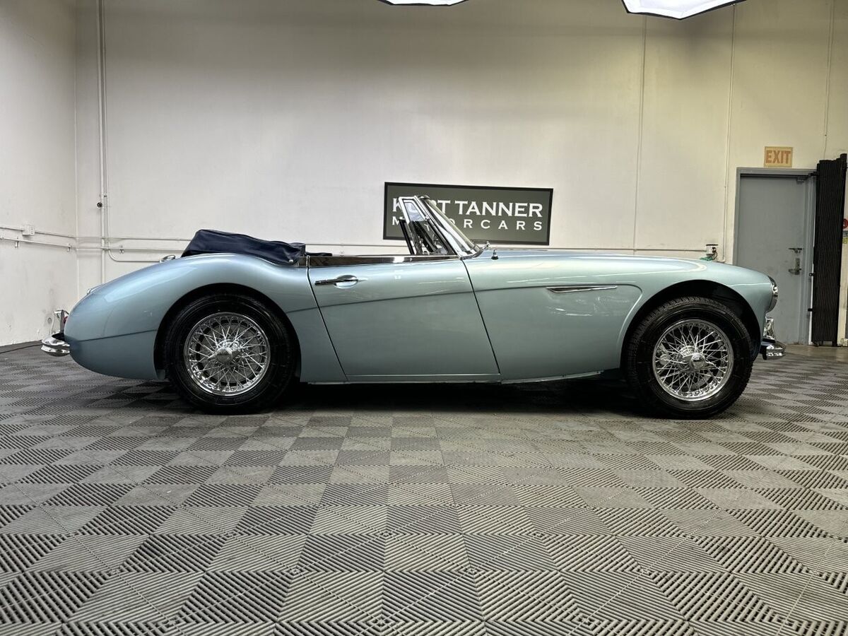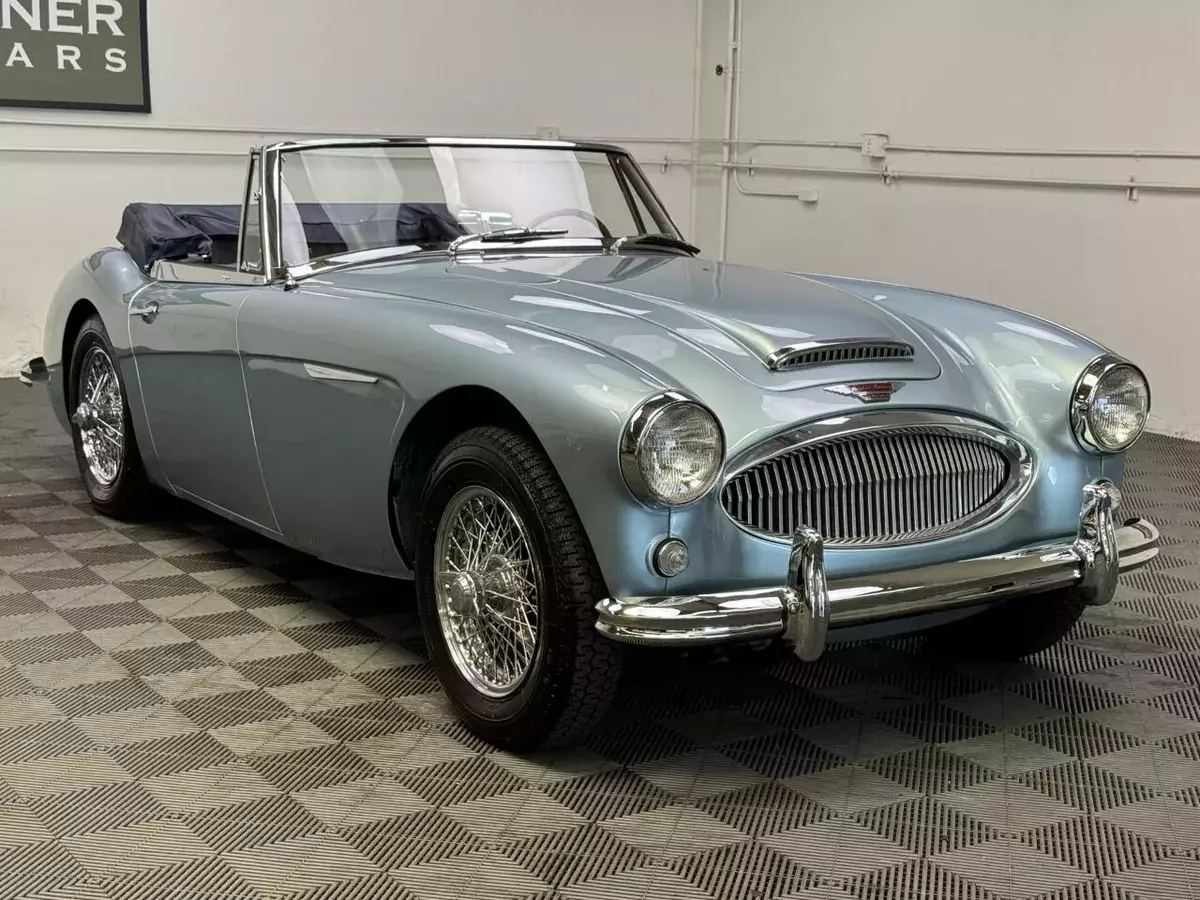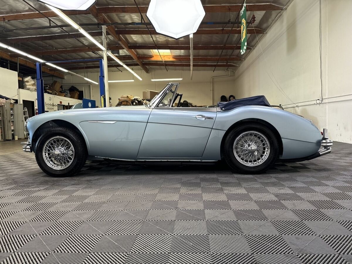 -The 3000 MK2 BJ-7 of 1963 was the first “convertible” Big Healey model that had a lovely, snug, easy-to-use folding soft top, wrap around windshield, swiveling quarter lights and proper roll-up windows. Weather protection was much improved from the earlier roadster models. The reversion back to twin carbs made tuning easier with no horsepower lost, still around 131bhp, still coupled to the desirable centershift gearbox.-Purchased last year from the Northern California Bay Area, this BJ7 presented here has amazingly spent the last 50 years in the same residential garage ! It was discovered in excellent, preserved, original condition with original paint and interior, still retaining it’s pair of original issued black/yellow license plates which match it’s CA title from 1975. It was upgraded sometime in the early 1970’s with a later model, low mileage, BJ8 3000 MK3 engine, carbs, and gearbox (150bhp).-KURT TANNER RESTORATIONS just completed in March, 2025 a fresh, total cosmetic and partial mechanical restoration to high standards with details as follows:-EXTERIOR COACHWORKS restoration includes a complete strip down of exterior bodyshell- brightwork, doors, glass, rubber, trunk compartment, interior.-Power washing of entire car including engine compartment, trunk, interior, undercarriage, suspension.-New show quality bodywork and paintwork in basecoat/clearcoat system. Repainted undercarriage with detailed suspension.-Existing excellent original chromework polished, new bumpers and overrider set. Restored door aluminum.-New total body rubber and interior rubber kit fitted. Newer windshield. Door internals serviced with new driver’s door glass, nylon guides.-INTERIOR RESTORATION includes 100% new Concours retrim in correct Navy Blue. Moss interior panel kit, carpet kit and underfelt, leather seat kits front and rear,leather armrest, seat foam, door seals, 2-point black lap seat belt set, restored top frame,webbing, and wood, fitted Everflex top with matching top boot,top seals, upgraded Tourist Trophy slotted wood wheel, black Armacord trunk kit, hold-down strap, restored heater box with new valve/hoses.-MECHANICAL IMPROVEMENTS include painted drivetrain “in-situ” and exhaust system painted high heat black, rodded-out radiator with new hoses/thermostat, 100% new fuel system including new tank, fuel pump, flexy line with inline filter, rebuilt twin HD-8 2″ carb set with new kits, restored air cleaner set with decals, oil flexy line, valves adjusted, new spark plugs, 100% new braking hydraulic system including master cylinder, flexy lines, front calipers and pads, wheel cylinders, new clutch master, flexy, slave cylinder. Transmission OD filter serviced, new OD relay and solenoid, engine oil and filter service, valve cover gasket. (4) new stainless 60-spoke wire wheels have been fitted with balanced Michelin ZX 165×15 radial tires.PLEASE SEE BOTH WALK AROUND AND DRIVING VIDEOS.This car has been professionally restored to high and correct standards and is very good value going forward considering the high cost of restoration today…YouTube Video Link (copy and paste)https://youtu.be/eoo1ftO5-qI