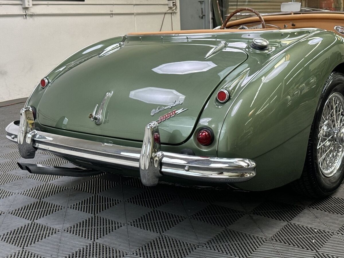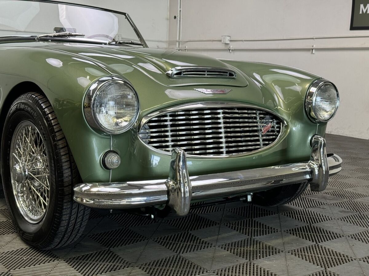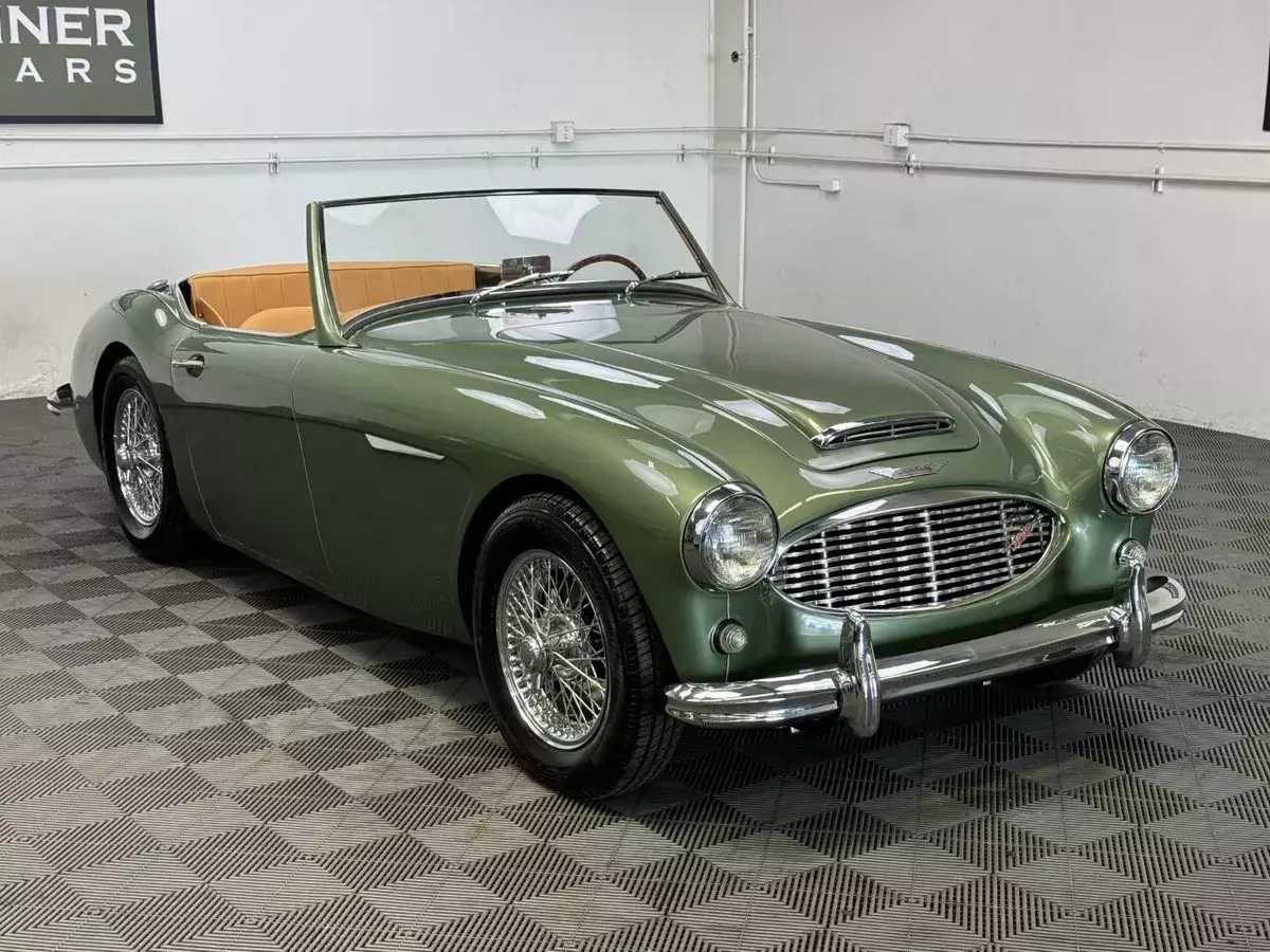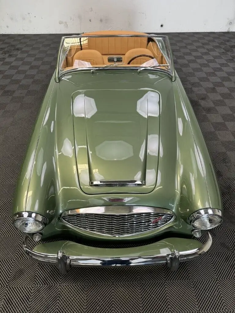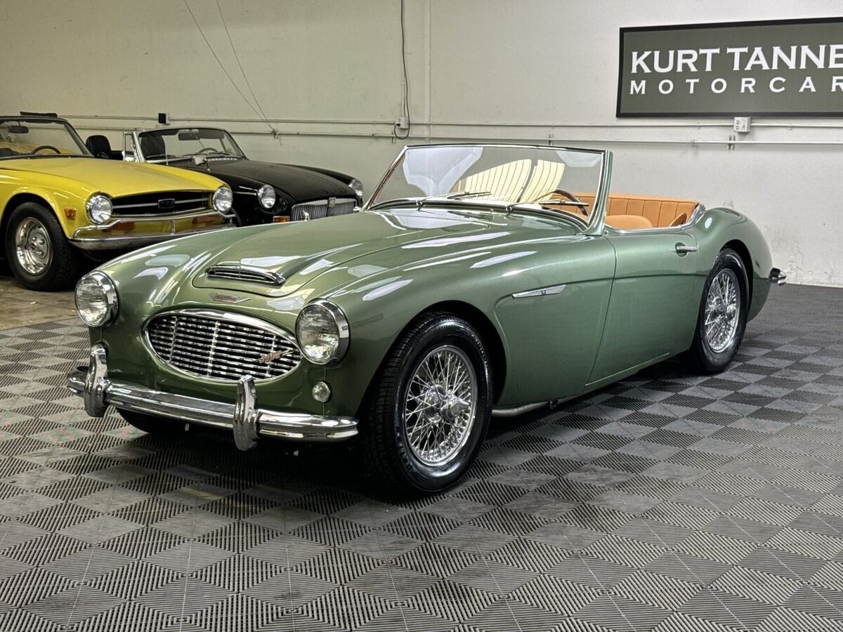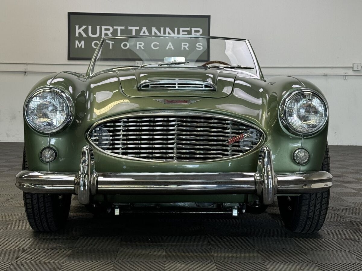 -The well loved, legendary Austin-Healey 3000 was a very much improved version of it’s 100-6 predecessor with a larger, torquier engine and effective front disc brakes. This exquisite 3000 BT-7 Roadster presented here was purchased locally last year here in California as a super solid and straight, good running car. It was an ideal car for restoration. The BMIHT certificate certifies that it still retains it’s matching numbers engine and was dispatched to Portland, Oregon on May 10th, 1960. It’s current title from 1968 shows residence in Los Angeles, CA where we believe it remained for most of it’s life.-This car is finished in one of the most striking period color schemes as found on several Aston Martin models of the 1960’s, and this car wears the colors well.-KURT TANNER RESTORATIONS has just completed in March, 2025 a full cosmetic and extensive mechanical restoration to high standards with details as follows:-EXTERIOR COACHWORKS restoration includes a complete strip down of the exterior bodyshell and undercarriage- brightwork, doors, windshield assembly, rubber, trunk compartment, complete removal of the interior, wiring harness and components.-The entire car was power washed including engine, transmission, rear axle, engine compartment, trunk, interior, underside, and suspension.-New, quality, bodywork and paintwork in Aston Martin California Sage was applied in basecoat/clearcoat system with completely repainted undercarriage, interior, engine compartment. The drivetrain was repainted and all of the suspension/steering gear detailed.-Replated 4-piece windshield frame with new Pilkington windshield glass, door handles, polished aluminum cockpit railings. Mostly all new brightwork with new bumpers and overrider set, door aluminum set, grille, badges, lights, door catches, etc. New cotton wiring harness installed throughout and bulkhead electrics, battery. New body rubber kit installed.-INTERIOR RESTORATION includes 100% new Concours retrim in Moss Motors Honey Tan panel trim kit with full matching leather hide to front and rear seats/armrest, recovered dashboard, matching tufted carpet set with underfelt, new seat foam, “Bristleflex” beige door seals, 2-point black seat belts, powder-coated top frame, Everflex dark green top with matching tonneau cover in bag, restored heater box assembly with new valve/water hoses/air hoses, black Armacord trunk kit, excellent restored sidescreens in bag, Motolita wood/alloy steering wheel.-MECHANICAL RESTORATION includes rebuilt cylinder head, new piston rings, oil pump, rod bearings, clutch disc, release bearing, serviced and resealed transmission with upgraded 28% OD unit, solenoid, engine and transmission mounts, new water pump, rebuilt generator, fan belt, exhaust system and mounts, rodded out radiator with new hoses/thermostat, oil flexy, 100% new fuel system including tank, fuel pump, filter, rebuilt twin HD-6 carb set with new kits, restored original air cleaners with decals, 100% renewed braking system with new master cylinder, front calipers and pads, flexy lines, wheel cylinders. New clutch master, flexy, slave cylinder. Engine oil and filter, upper end gasket set, (4) newer heavy duty 48-spoke chrome wire wheels with new tubes, new knock-offs, Petlas 165×15 radial tires, new rear hubs.PLEASE VIEW DRIVING AND WALK AROUND VIDEOS.This car has been professionally restored to high and correct standards and is good value going forward, considering the cost of restoration today.YouTube Video Link (copy and paste)https://youtu.be/FUI8FnFJJQU