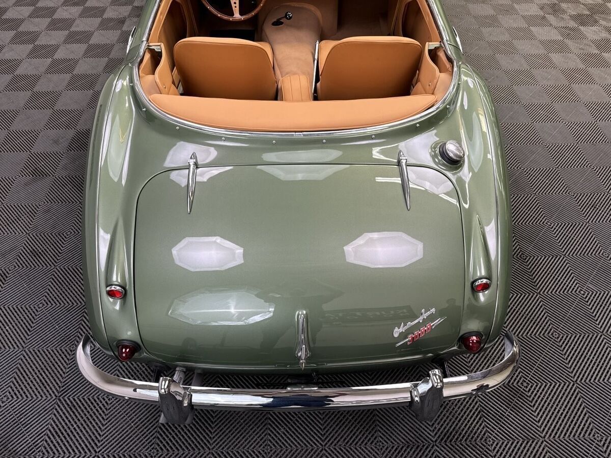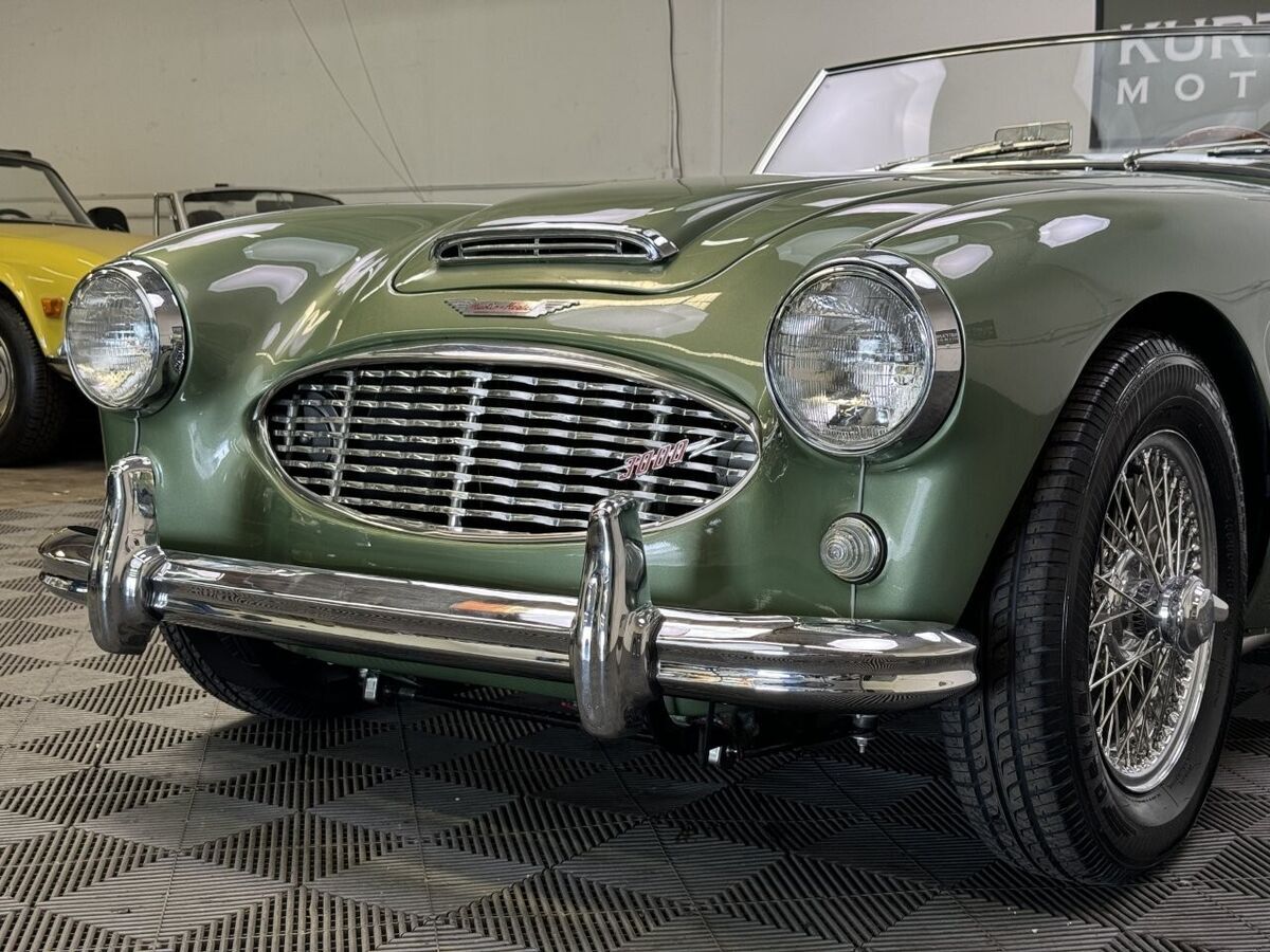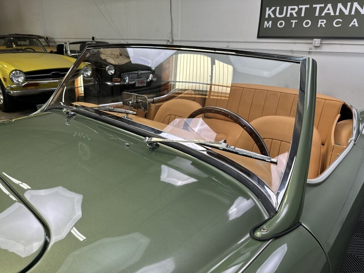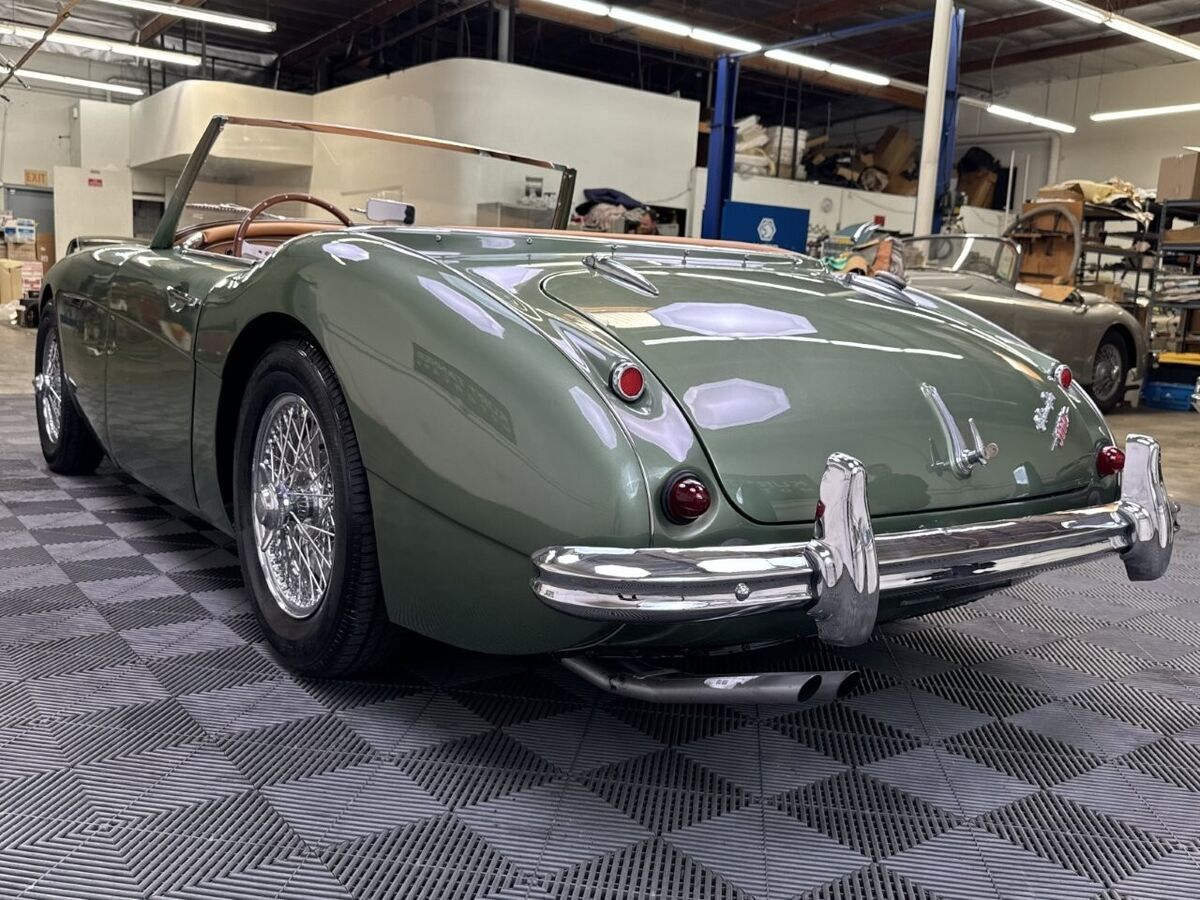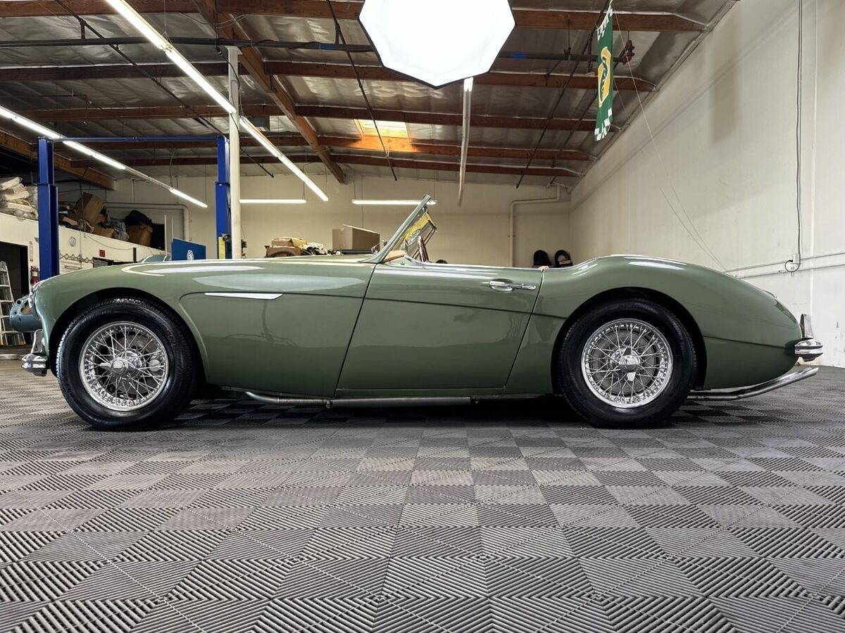 -The well loved, legendary Austin-Healey 3000 was a very much improved version of it’s 100-6 predecessor with a larger, torquier engine and effective front disc brakes. This exquisite 3000 BT-7 Roadster presented here was purchased locally last year here in California as a super solid and straight, good running car. It was an ideal car for restoration. The BMIHT certificate certifies that it still retains it’s matching numbers engine and was dispatched to Portland, Oregon on May 10th, 1960. It’s current title from 1968 shows residence in Los Angeles, CA where we believe it remained for most of it’s life.-This car is finished in one of the most striking period color schemes as found on several Aston Martin models of the 1960’s, and this car wears the colors well.-KURT TANNER RESTORATIONS has just completed in March, 2025 a full cosmetic and extensive mechanical restoration to high standards with details as follows:-EXTERIOR COACHWORKS restoration includes a complete strip down of the exterior bodyshell and undercarriage- brightwork, doors, windshield assembly, rubber, trunk compartment, complete removal of the interior, wiring harness and components.-The entire car was power washed including engine, transmission, rear axle, engine compartment, trunk, interior, underside, and suspension.-New, quality, bodywork and paintwork in Aston Martin California Sage was applied in basecoat/clearcoat system with completely repainted undercarriage, interior, engine compartment. The drivetrain was repainted and all of the suspension/steering gear detailed.-Replated 4-piece windshield frame with new Pilkington windshield glass, door handles, polished aluminum cockpit railings. Mostly all new brightwork with new bumpers and overrider set, door aluminum set, grille, badges, lights, door catches, etc. New cotton wiring harness installed throughout and bulkhead electrics, battery. New body rubber kit installed.-INTERIOR RESTORATION includes 100% new Concours retrim in Moss Motors Honey Tan panel trim kit with full matching leather hide to front and rear seats/armrest, recovered dashboard, matching tufted carpet set with underfelt, new seat foam, “Bristleflex” beige door seals, 2-point black seat belts, powder-coated top frame, Everflex dark green top with matching tonneau cover in bag, restored heater box assembly with new valve/water hoses/air hoses, black Armacord trunk kit, excellent restored sidescreens in bag, Motolita wood/alloy steering wheel.-MECHANICAL RESTORATION includes rebuilt cylinder head, new piston rings, oil pump, rod bearings, clutch disc, release bearing, serviced and resealed transmission with upgraded 28% OD unit, solenoid, engine and transmission mounts, new water pump, rebuilt generator, fan belt, exhaust system and mounts, rodded out radiator with new hoses/thermostat, oil flexy, 100% new fuel system including tank, fuel pump, filter, rebuilt twin HD-6 carb set with new kits, restored original air cleaners with decals, 100% renewed braking system with new master cylinder, front calipers and pads, flexy lines, wheel cylinders. New clutch master, flexy, slave cylinder. Engine oil and filter, upper end gasket set, (4) newer heavy duty 48-spoke chrome wire wheels with new tubes, new knock-offs, Petlas 165×15 radial tires, new rear hubs.PLEASE VIEW DRIVING AND WALK AROUND VIDEOS.This car has been professionally restored to high and correct standards and is good value going forward, considering the cost of restoration today.YouTube Video Link (copy and paste)https://youtu.be/FUI8FnFJJQU