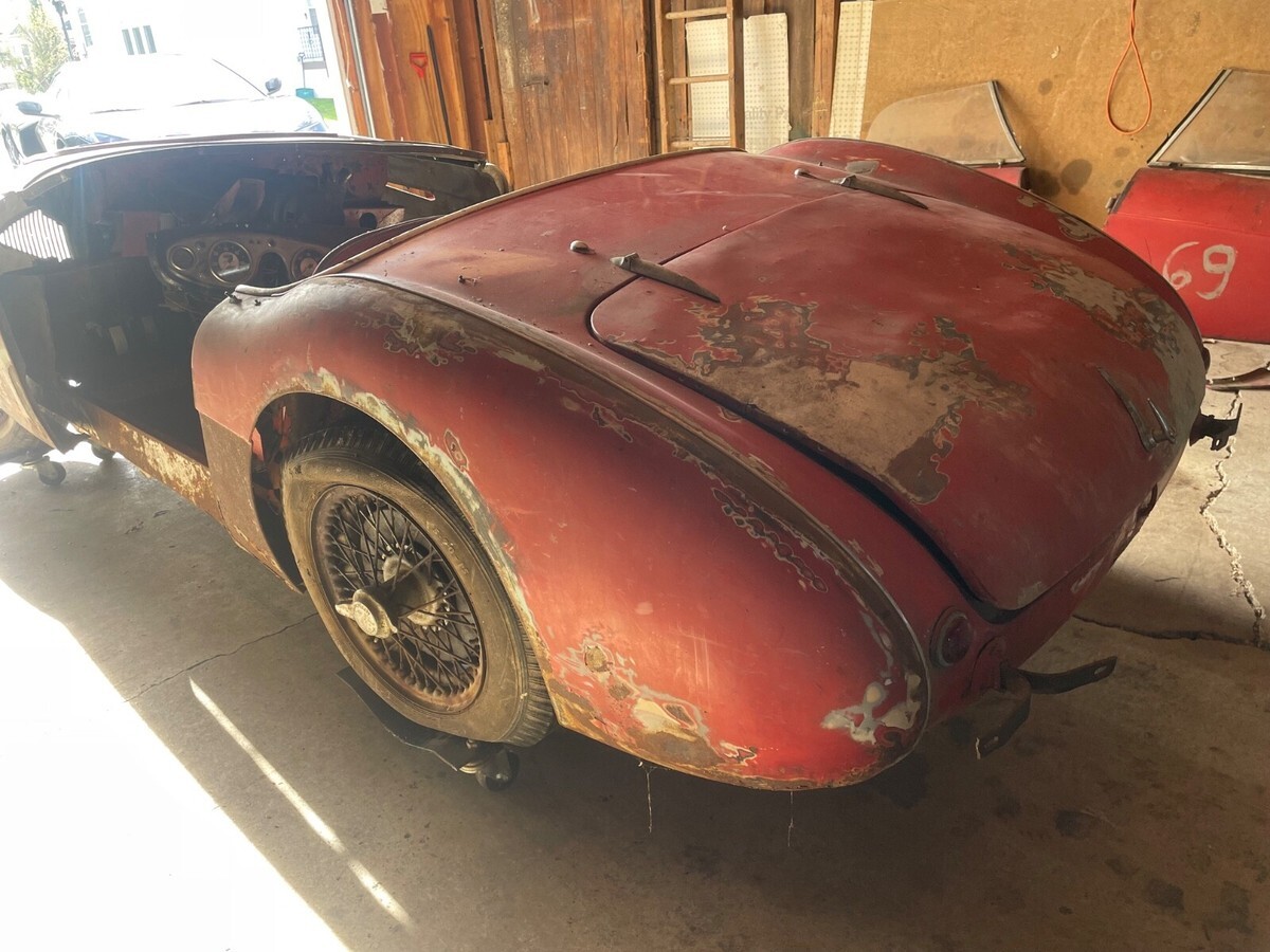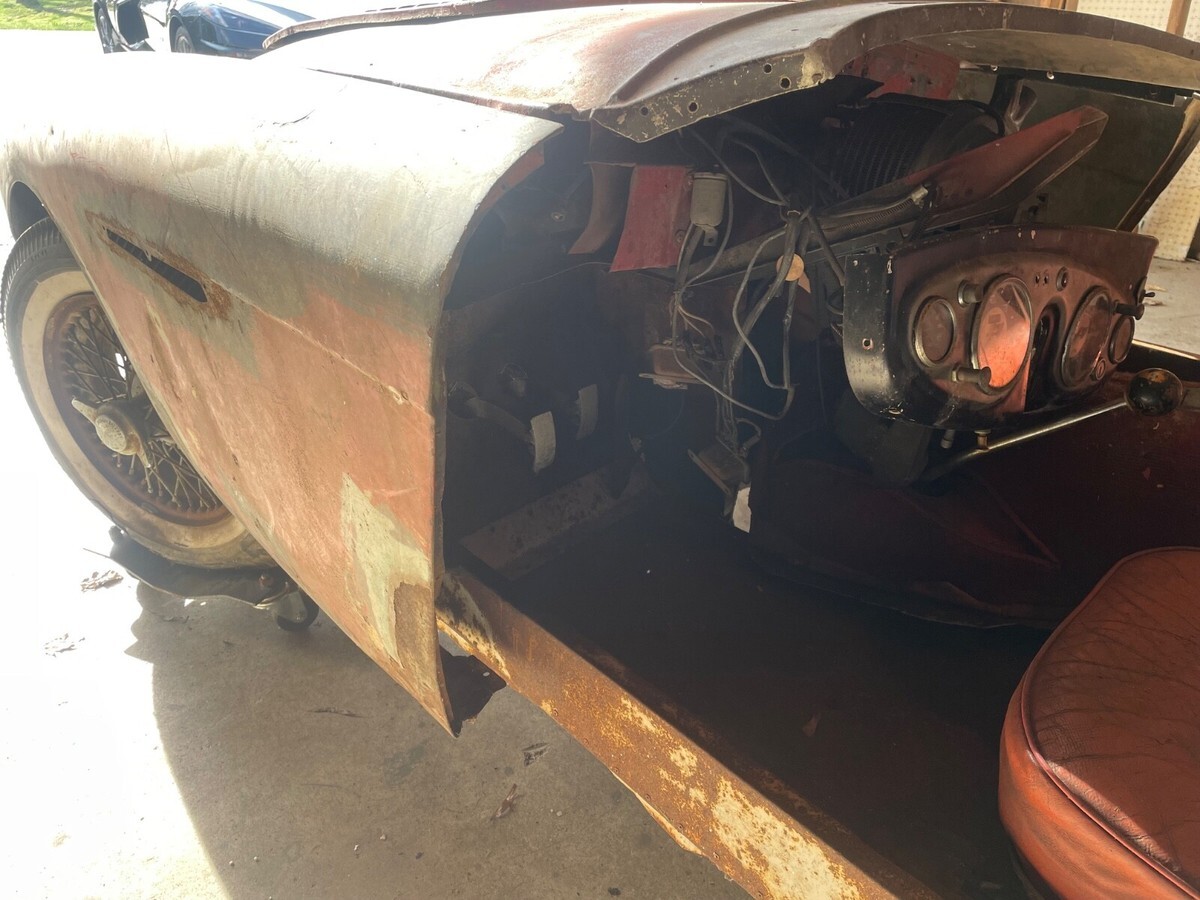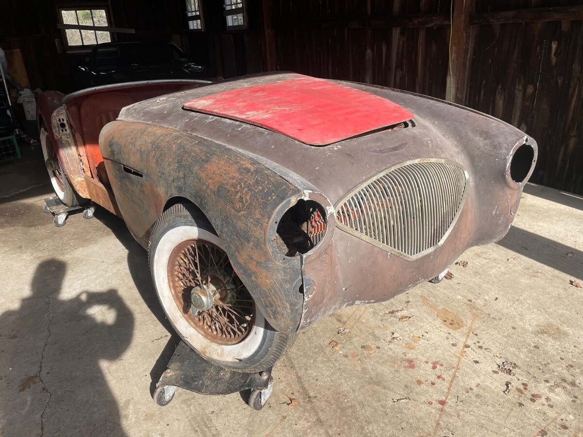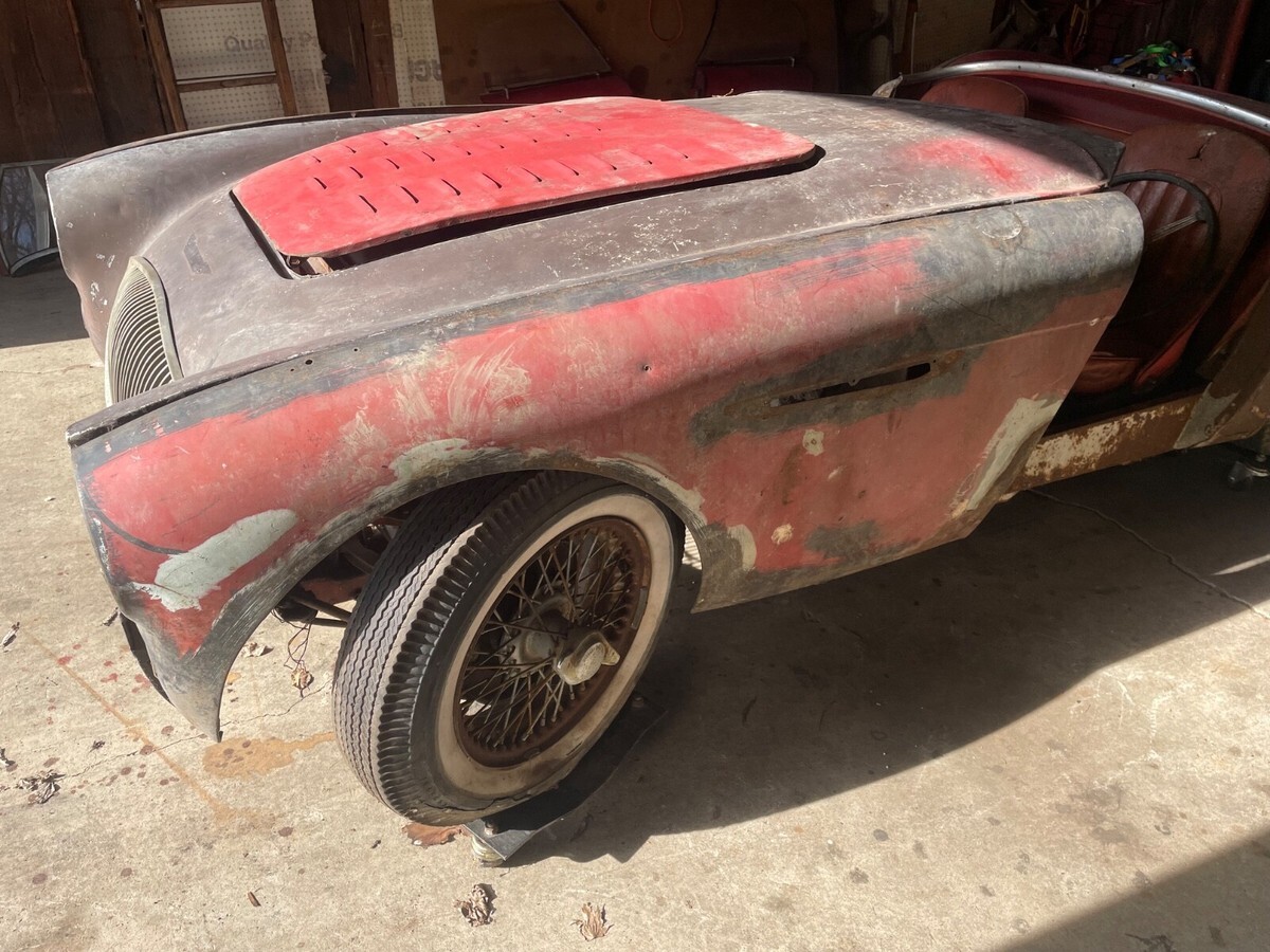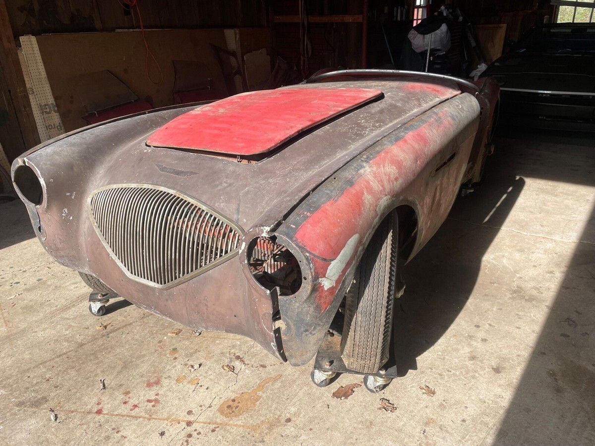 The Healey was last registered in 1959. Vehicle has paperwork but was filled out by the previous owner back in 1959 and was never registered. Engine turns. Someone over the past 60 years cut the front assembly and disassembled the front clip. Please don't hit the buy it now button if you don't know what your getting and can't transport vehicle home. Ask questions before you buy please. Vehicle rolls and you will need to hand turn the front wheels to steer.