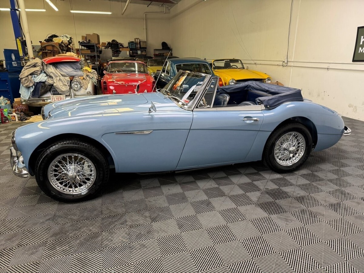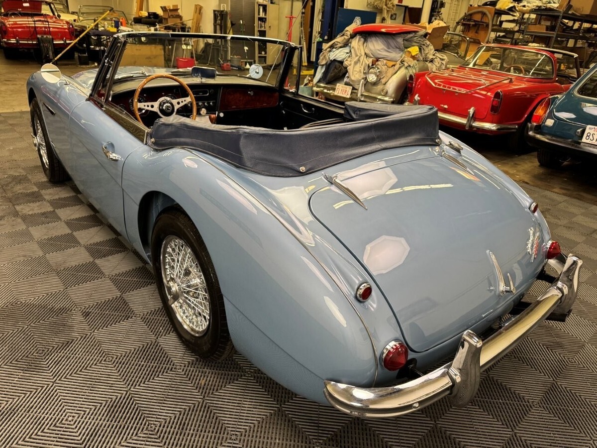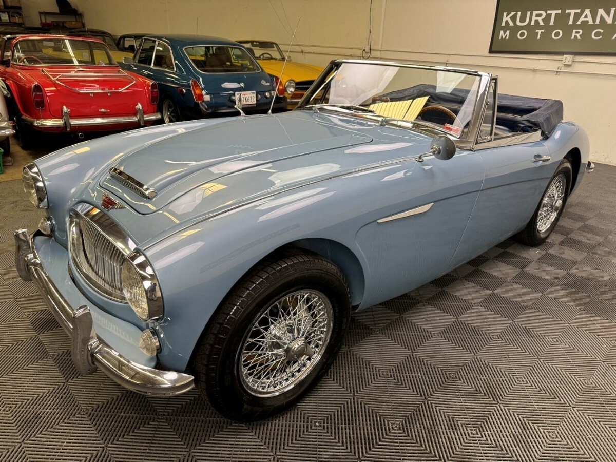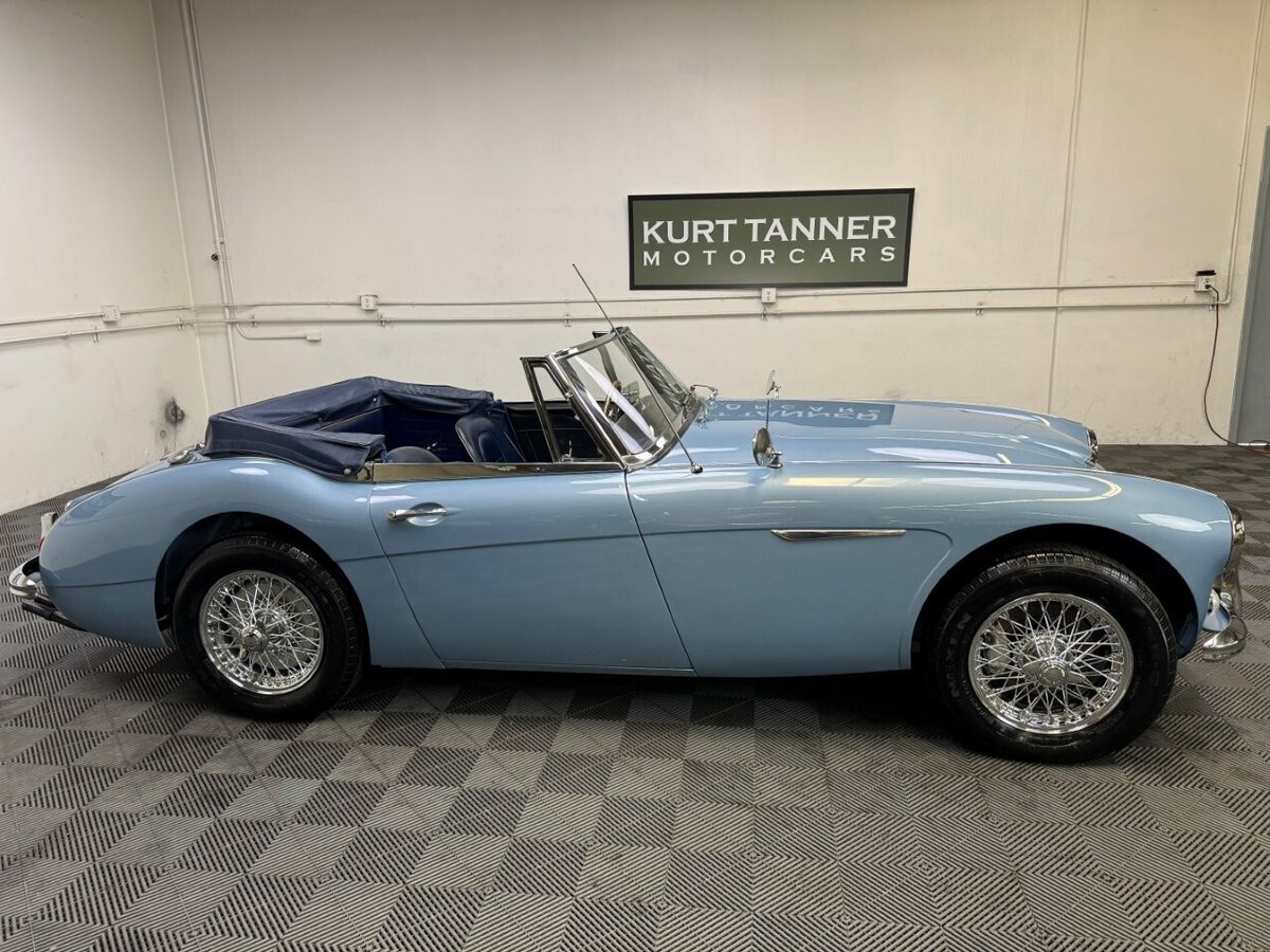 -The MK3 BJ-8 was the final variation and most developed model of the Big Healeys offering 150 bhp, powerful boosted brakes, softer trailing-arm rear suspension, a quieter exhaust system. Interior refinements include a walnut dashboard facia, armbars, armrest, radio console, fold down rear luggage shelf, roll-up windows with an easy folding soft top.-This car offered for sale here was recently acquired from Missouri from the estate of only it’s second owner and shows a mere 55,705 original miles. It has been stored indoors it’s entire life and has been in static storage since 1992, for the past 33 years. It’s an excellent, low mileage original car with a single repaint, with the superb bodywork retaining all of it’s original sheetmetal and showing no signs of rust or accident damage.-Exterior cosmetics on the car are excellent. Paintwork is very, very good throughout, save for a few small blemishes. Panel gapping is super. Chromework is all factory original and is well preserved along with an excellent original Triplex windshield glass. Bumper bars and overriders are very good- thick originals.-Interior trim is truly excellent and amazingly original, including the front and rear Ambla seats in original material, front and rear 1/4 panels, door panels, dash wood and dash top pad, carpets replaced.-Mechanically, the car is superb out on the road, and drives strong and smooth, like well-taken-care-of original low mileage examples perform. DRIVING VIDEO COMING SOON.YouTube walk around video:https://youtu.be/oBdyVyn7b6g?si=qJUD7DJ6Chcw13lI-Kurt Tanner Motorcars recently completed the following work in June, 2025:Detailed existing paintwork and brightwork with a buffing, polishing and waxing.Power washing of engine compartment and underside.Detailing and painting of engine, engine compartment, undercarriage, suspension, steering gear, exhaust system in high heat black (concours).New Everflex soft top fitted in Navy blue with new webbing, side seals, header seal. Recovered door armbars.New Navy Blue door seals fitted, corner seals, new 2-point lap belts fitted in black.Detailed trunk compartment with leather tire strap. Includes it’s original top boot and tonneau cover in bags, rare original battery cover, jack, owner’s manual.New, correct, complete mild steel exhaust system, new hanger kits.New upper and lower radiator hoses, fan belt, restored original air cleaner set, fuel flexys, newly rebuilt front shock absorbers.Previous work completed in 2024 includes complete braking system overhaul with servo, clutch hydraulics, battery, fuel pump, fuel tank, new Nexen radial tires fitted to high quality American-made Dayton chrome wire wheel set (4).Overall, a lovely and very genuine low mileage 2-owner BJ-8 early Phase 2 model, grand touring convertible, very rare in this well preserved condition !We have recently attended to the car’s light cosmetic and mechanical needs as necessary.It presents beautifully throughout, and runs and drives perfectly.