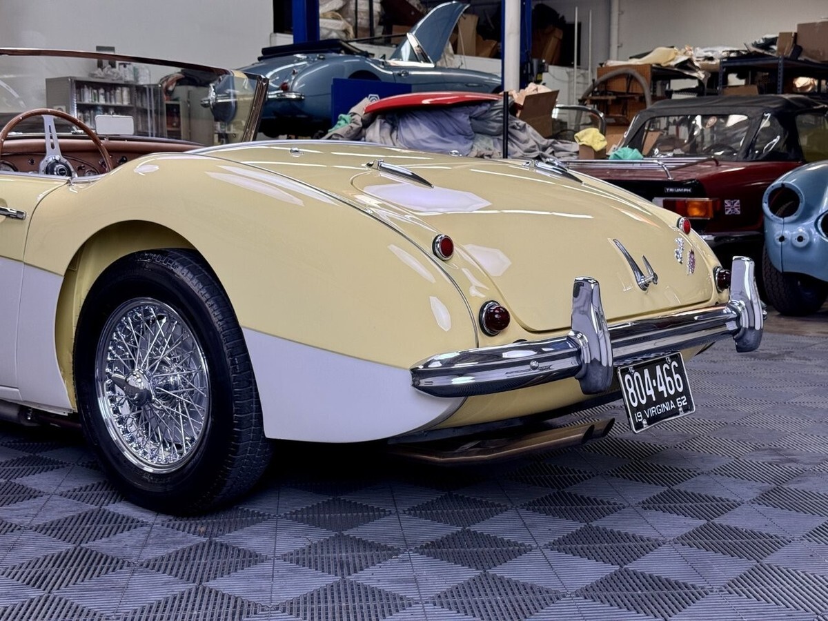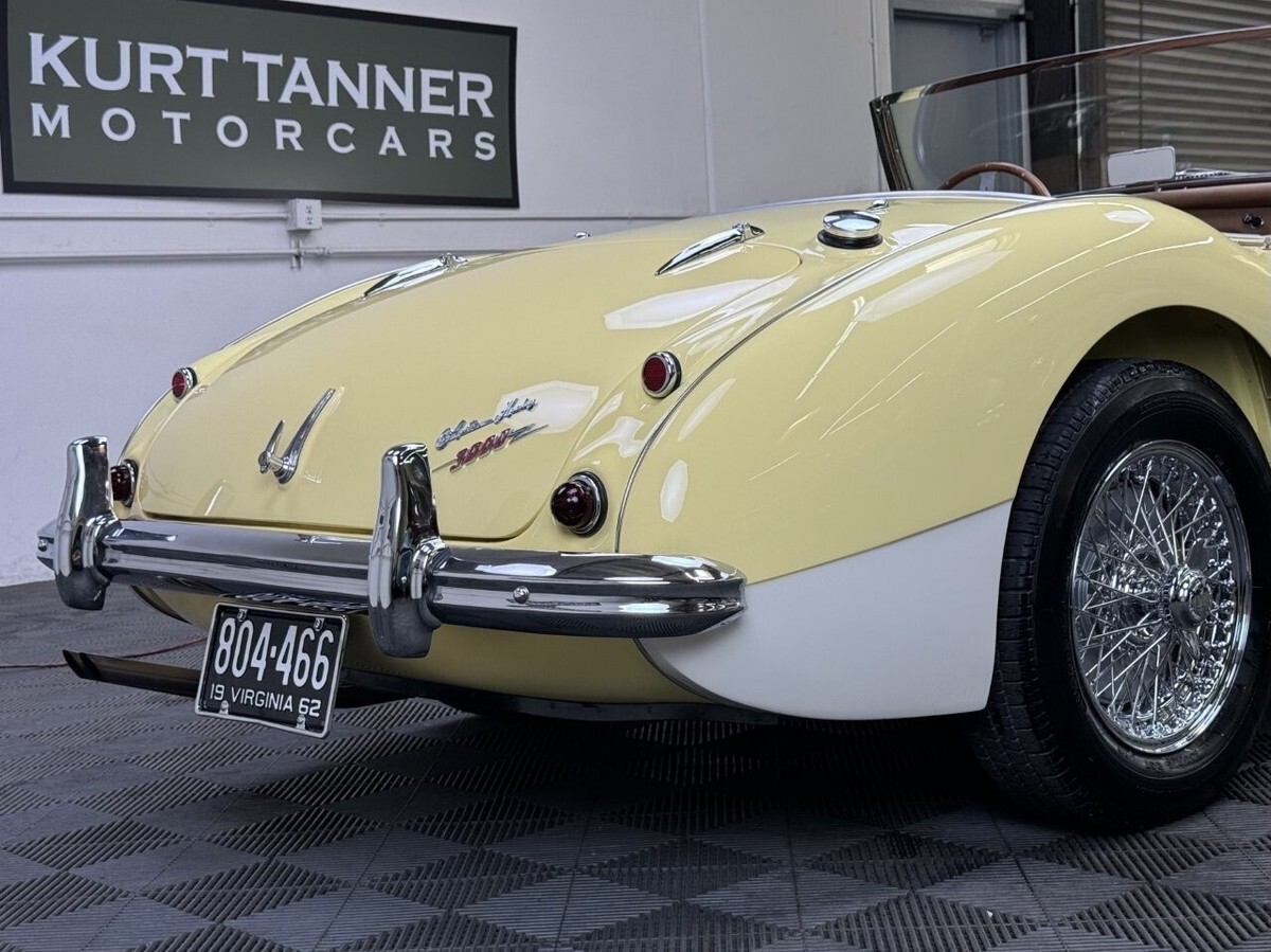 More images available at: www.kurttannermotorcars.comYouTube video:https://youtu.be/J-vXFFSTohc?si=Cf8n4enUvccDSyOO-The 1962 Austin Healey 3000 MK2 BN7 was the very last 3000 Two-Seater model produced with only 355 units. This car for sale here is even more rare, being 1 of about 125 of the later series cars produced with the desirable and improved centershift gearbox.-Recently purchased from it’s long term Virginia owner’s estate of at least the past 43 years, this car received an expensive, ground-up, nut-and-bolt, photo documented rotisserie restoration with Concours guidelines in mind. The car still retains it’s original VIN plate and aluminum body tag.-Details of the restoration include a complete stripdown to the bare superstructure/ chassis, body panels stripped to bare metal, minimal repairs made, then the car was built back up with perfect gapping. High quality show paintwork was applied over a perfect flatted-off bodyshell in epoxy primer with exceptional results.-Original brightwork was perfect triple chrome plated. New body rubber kit, windshield glass. Original attachment hardware cadmium plated. Anodized cockpit trim.-Documented, fully rebuilt mechanicals throughout including engine and ancillaries, gearbox, front and rear suspension, shocks, braking system, steering gear, fuel system, stainless exhaust, 5 Dayton 60-spoke chrome wire wheels with radial tires, new wiring harness and electrics, recored upgraded multi-row radiator. DRIVING VIDEO COMING SOON.-Completely retrimmed interior utilizing a full Heritage Upholstery seat and panel trim kit in Cinnamon with correct wool carpeting, heat reflectorized undermat jute padding, matching Armacord to the trunk and rear cockpit battery hatch area. Perfect fit Robbins Tan soft top with matching tonneau cover. Sidecurtain set. PLEASE SEE WALK AROUND VIDEO.-Overall, this exhaustive and expensive total restoration was completed with authenticity in mind, and the results are quite super.-Good investment potential going forward, this is the rarest of the road going Austin-Healeys produced, and represents very good value in regards to today’s restoration costs.