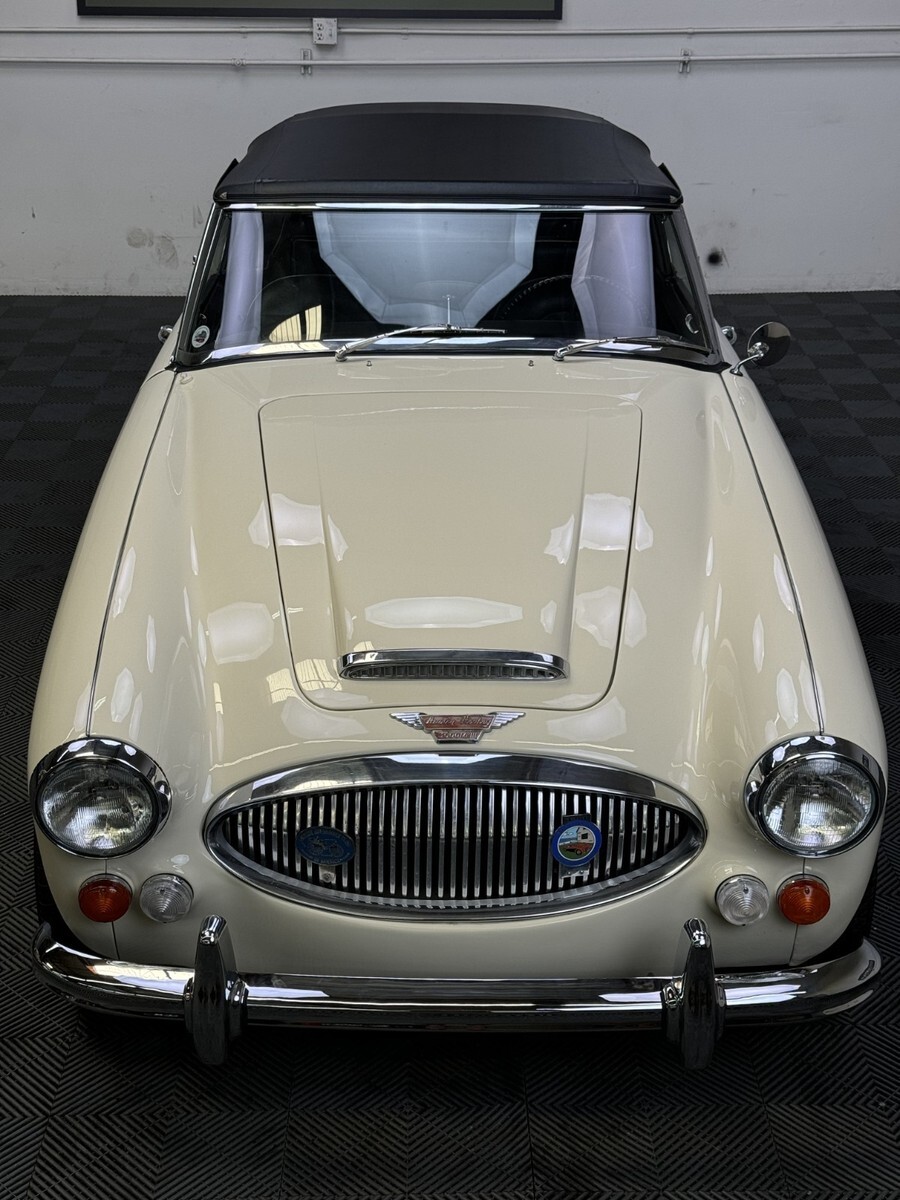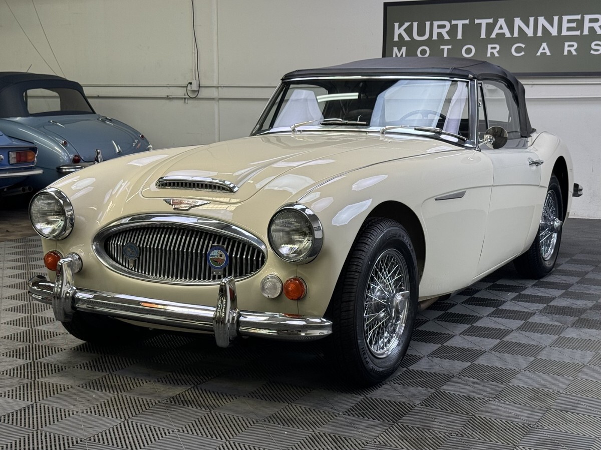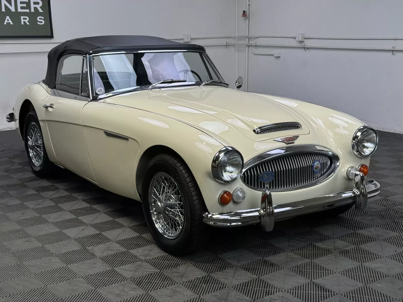 1967 AUSTIN HEALEY 3000 MK3 BJ-8 PH2 SPORTS CONVERTIBLE. OLDE ENGLISH WHITE WITH BLACK AMBLA TRIM, BLACK TOP AND BOOT. 4-SPEED WITH OVERDRIVE, 60-SPOKE STAINLESS WIRE WHEELS. LOVELY OLDER RESTORATION STILL SHOWING WELL. SHOWS 49,162 MILES.-Desirable late production 3000 BJ-8 Phase 2, the final year and variation of the Big Healey. Nice crisp color scheme.-Lovely all around older restored condition, still showing well.-Restoration at the time included new bodywork and basecoat/clearcoat paint, body rubber kit, 100% new Ambla interior trim sourced from the John Skinner/ UK specialists, to include front and rear seat kit, seat foam, interior panel kit, carpet kit, door seals, top pad and armbars, seat belts, quality Everflex soft top fitted, new wooden dashboard. Original Triplex windshield glass, BMC radio.-Very good original brightwork throughout. Newly installed bumper bars and overrider set.-Nicely detailed engine bay and complete undercarriage. Stainless steel exhaust system. Newly fitted stainless steel wire wheel set of 4 with new Petlas radial tires.-Mechanically excellent- drives great.-Overall, a very nice turn key late BJ-8 in good colors. Good value.DRIVING VIDEO COMING SOON!$59,500.