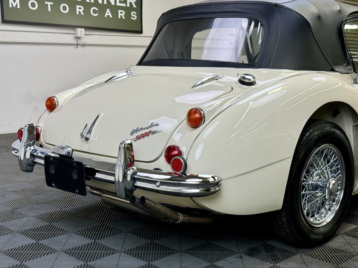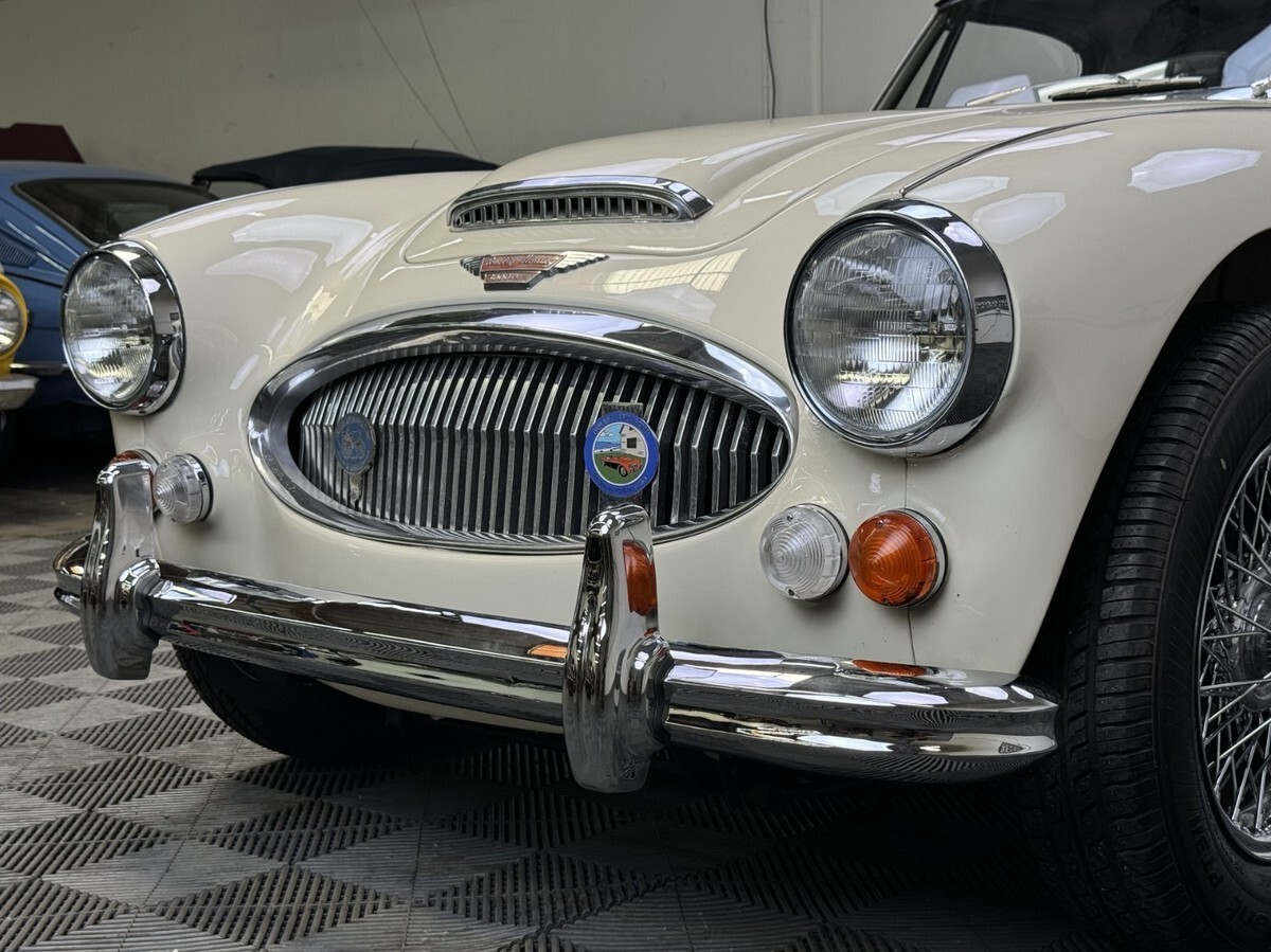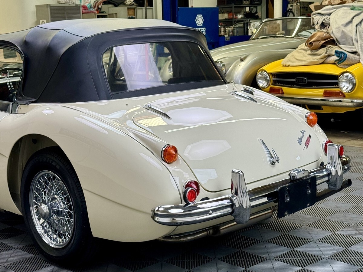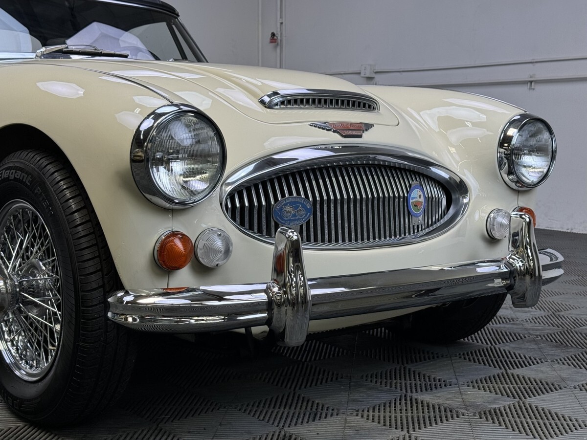 1967 AUSTIN HEALEY 3000 MK3 BJ-8 PH2 SPORTS CONVERTIBLE. OLDE ENGLISH WHITE WITH BLACK AMBLA TRIM, BLACK TOP AND BOOT. 4-SPEED WITH OVERDRIVE, 60-SPOKE STAINLESS WIRE WHEELS. LOVELY OLDER RESTORATION STILL SHOWING WELL. SHOWS 49,162 MILES.-Desirable late production 3000 BJ-8 Phase 2, the final year and variation of the Big Healey. Nice crisp color scheme.-Lovely all around older restored condition, still showing well.-Restoration at the time included new bodywork and basecoat/clearcoat paint, body rubber kit, 100% new Ambla interior trim sourced from the John Skinner/ UK specialists, to include front and rear seat kit, seat foam, interior panel kit, carpet kit, door seals, top pad and armbars, seat belts, quality Everflex soft top fitted, new wooden dashboard. Original Triplex windshield glass, BMC radio.-Very good original brightwork throughout. Newly installed bumper bars and overrider set.-Nicely detailed engine bay and complete undercarriage. Stainless steel exhaust system. Newly fitted stainless steel wire wheel set of 4 with new Petlas radial tires.-Mechanically excellent- drives great.-Overall, a very nice turn key late BJ-8 in good colors. Good value.DRIVING VIDEO COMING SOON!$59,500.