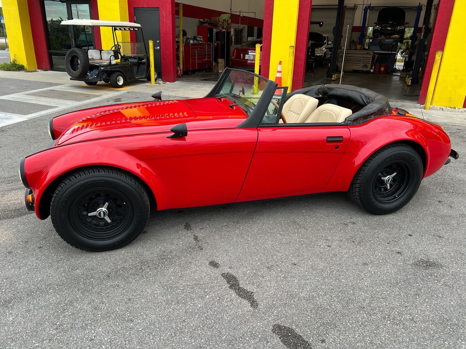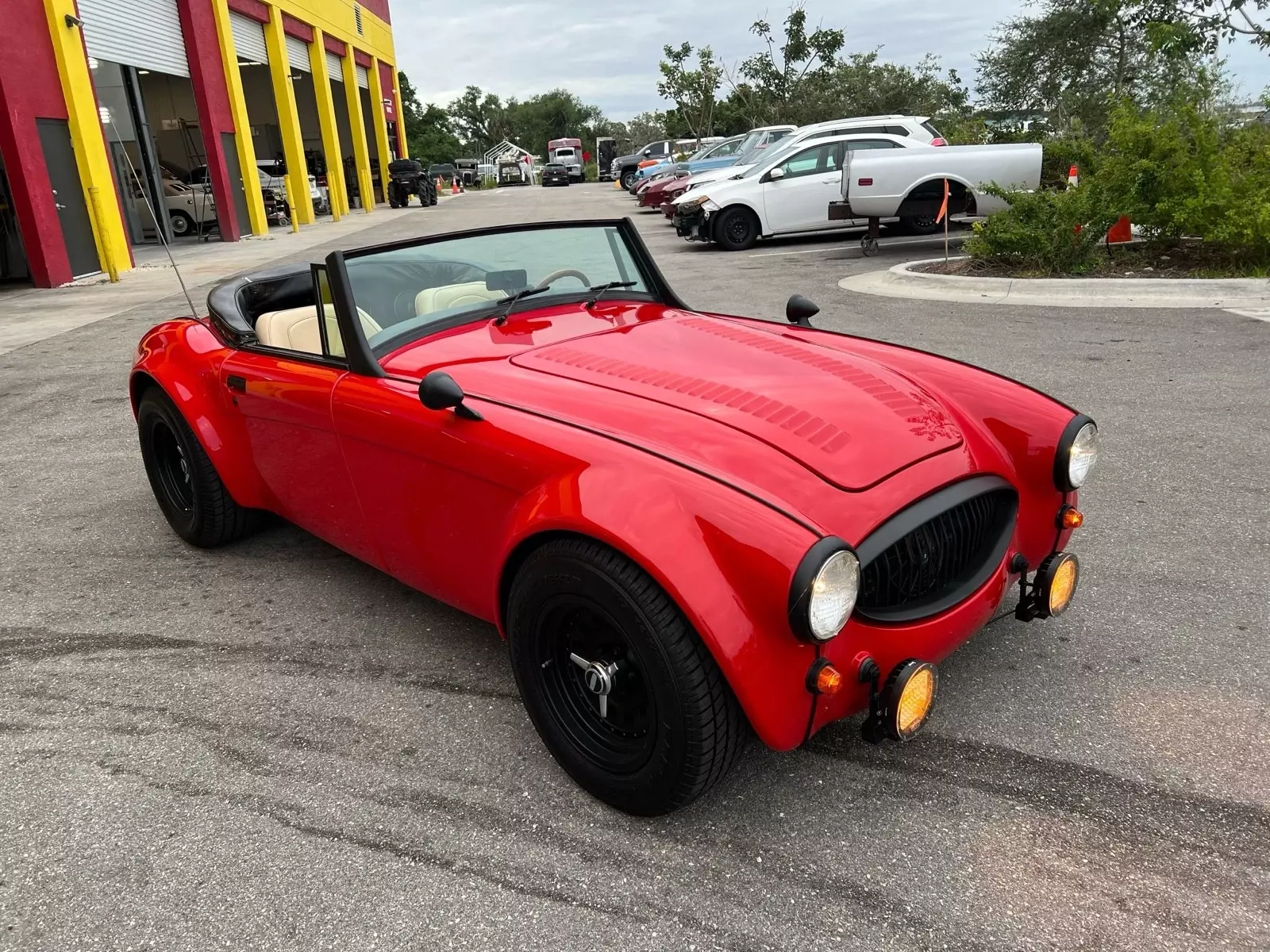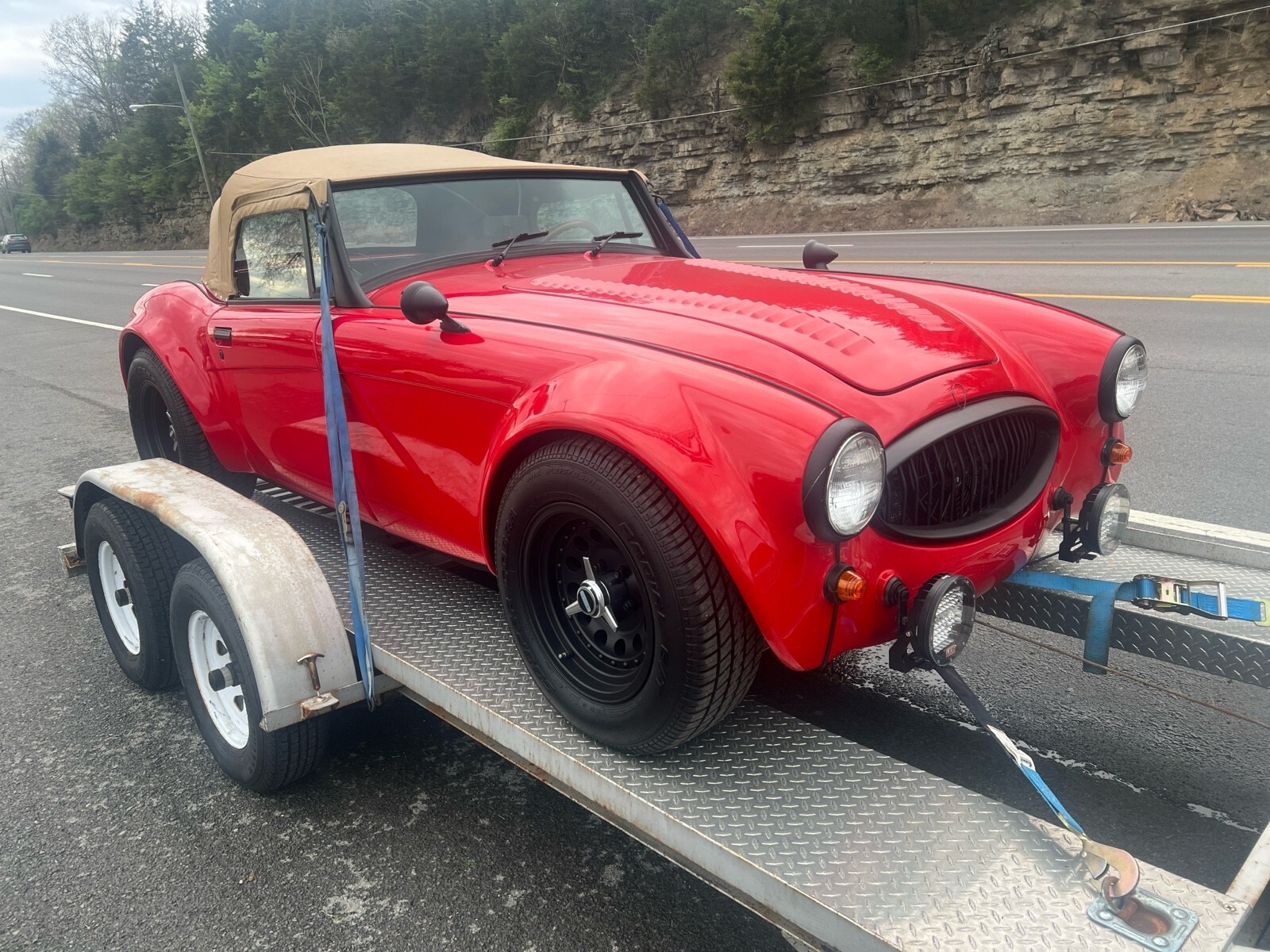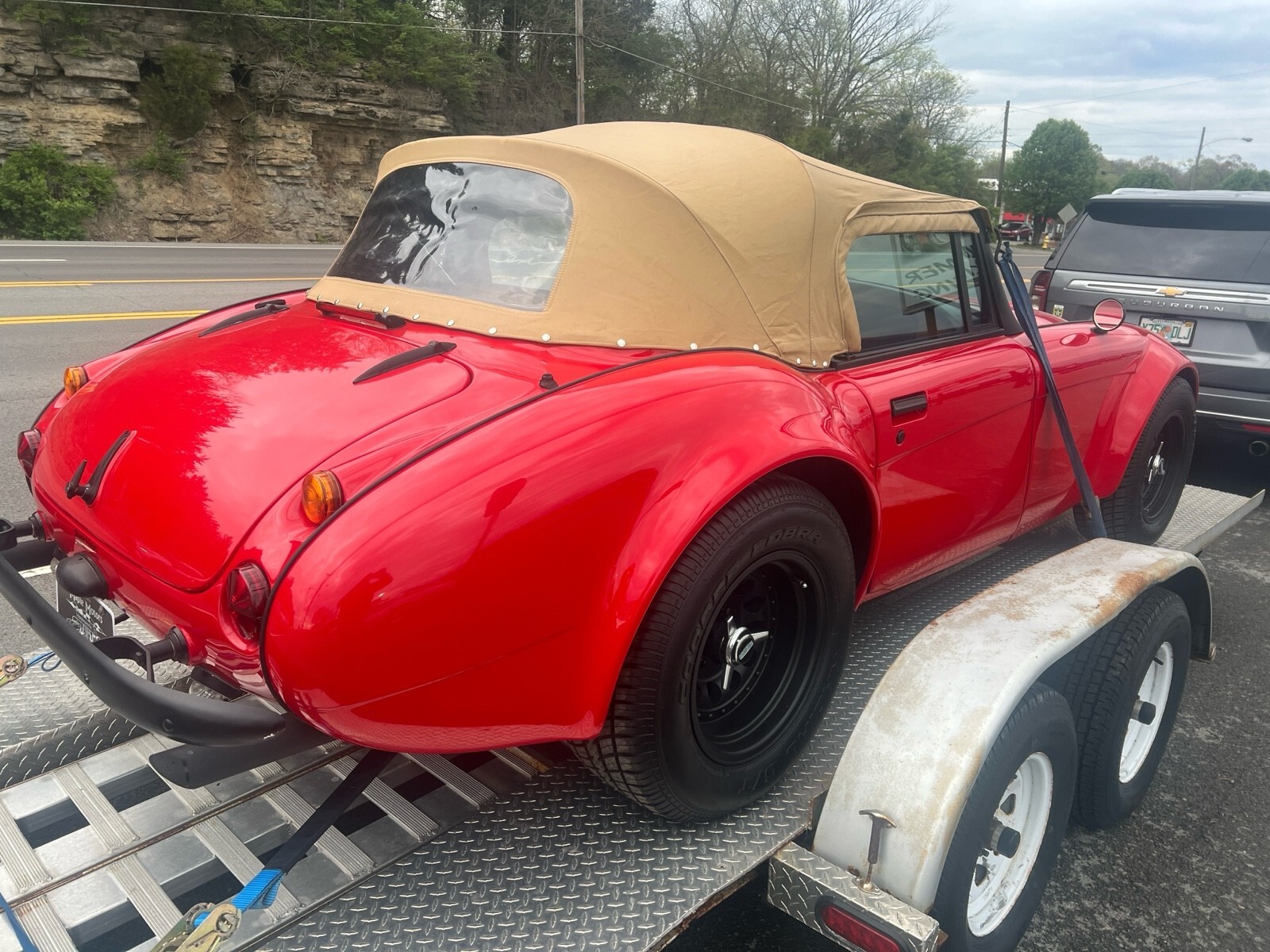 This 1965 Austin Healey 3000 replica, has a Chevy 350 engine and 350 Automatic transmission AC front disc brakes Power steering, Great Tires