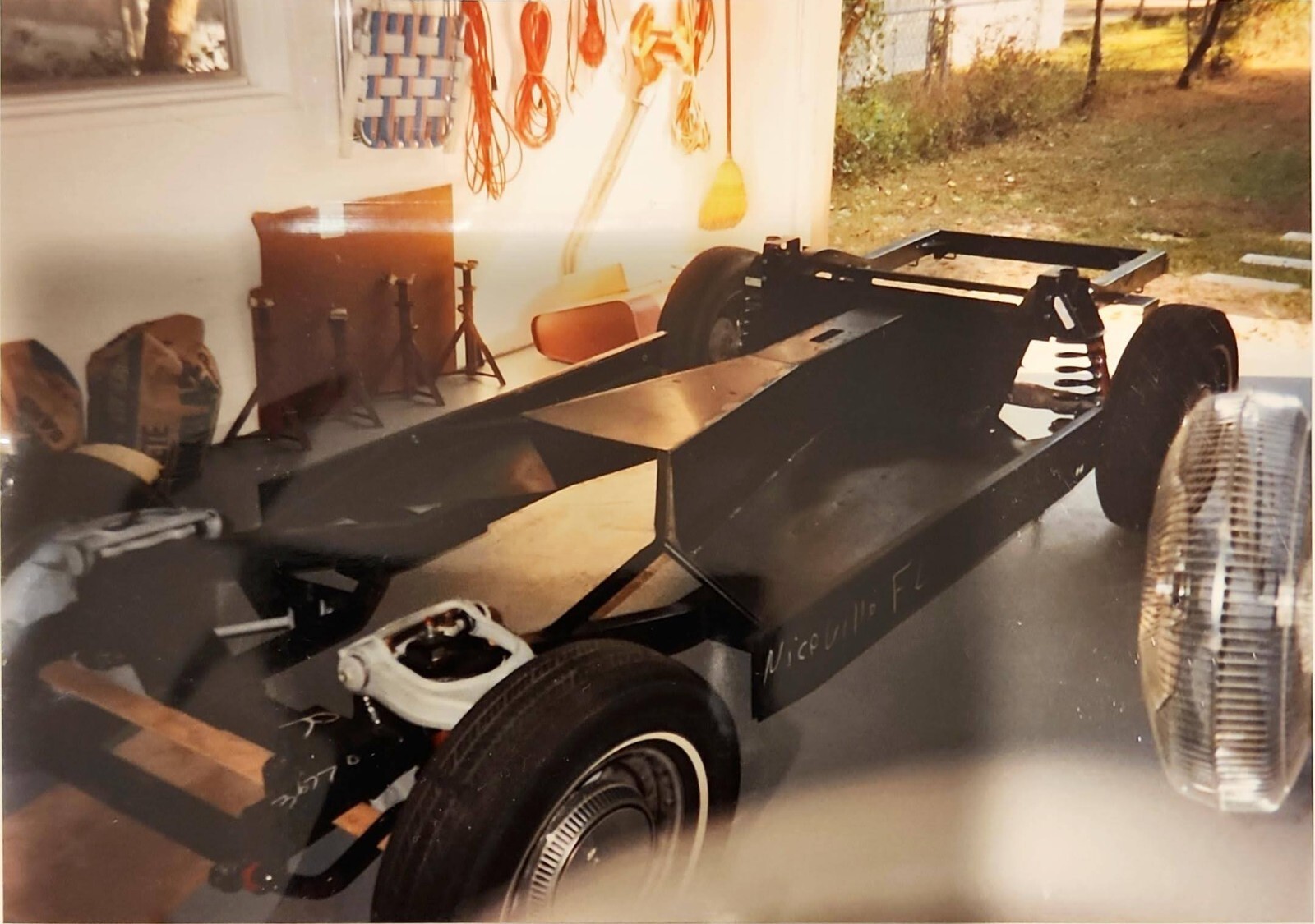 Front: Mustang II/Pinto/Bobcat donor parts (spindles, calipers, rotors, control arms, rack & pinion steering)