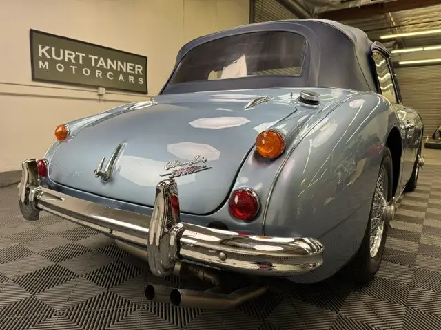 1967 AUSTIN-HEALEY 3000 MK3 BJ-8 PH 2 SPORTS CONVERTIBLE. HEALEY ICE BLUE WITH NAVY BLUE LEATHER TRIM AND TOP. 4-SPEED, 60-SPOKE STAINLESS WIRE WHEELS. FULL COSMETIC AND MECHANICAL RESTORATION BY BRITISH CAR SPECIALISTS. EXCELLENT.