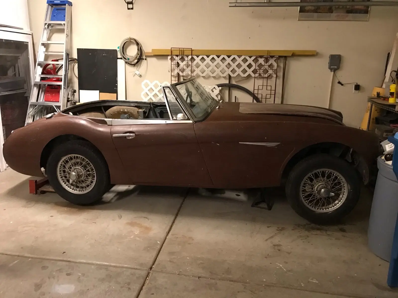 This Healey retains its original character and presents a rare opportunity to restore a rust-free example rather than repairing corrosion. The body is in good condition overall, making it an ideal candidate for repainting without extensive metal work.