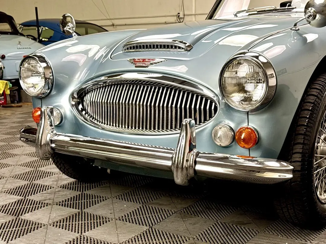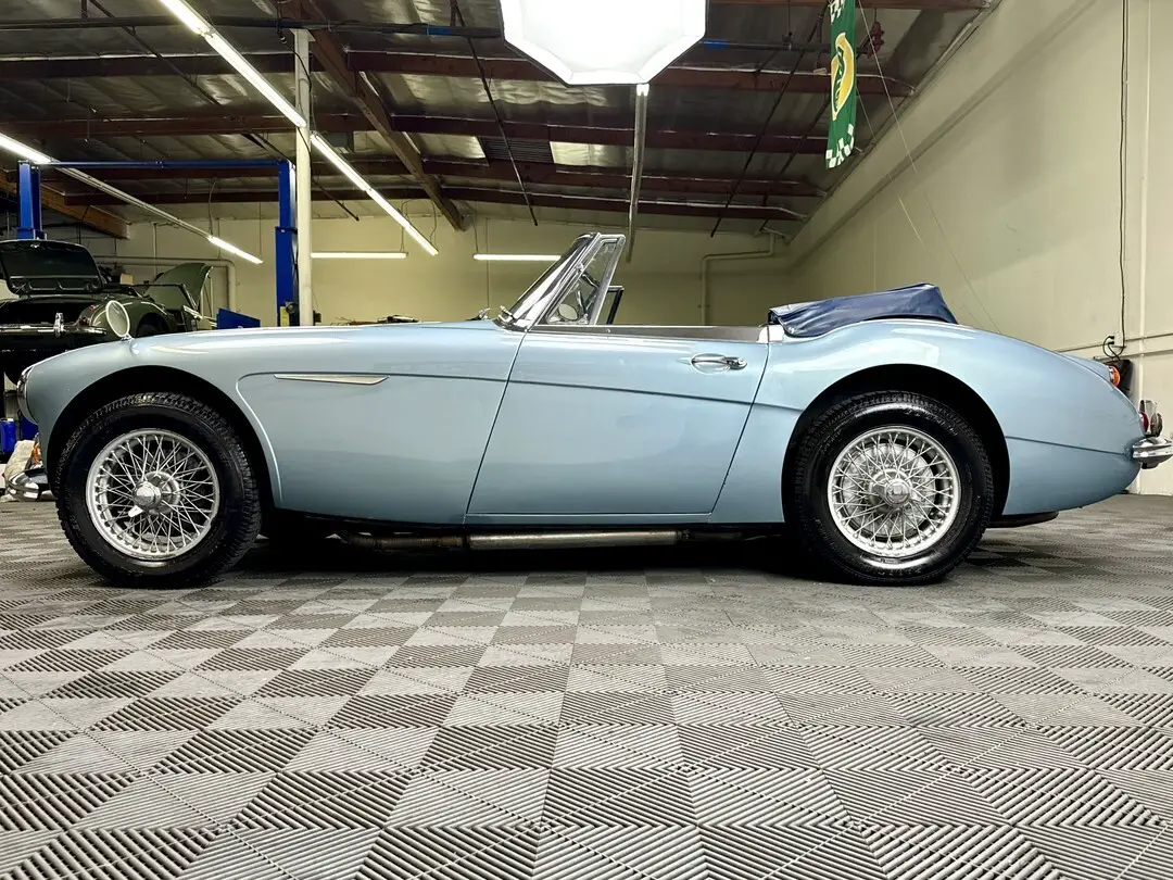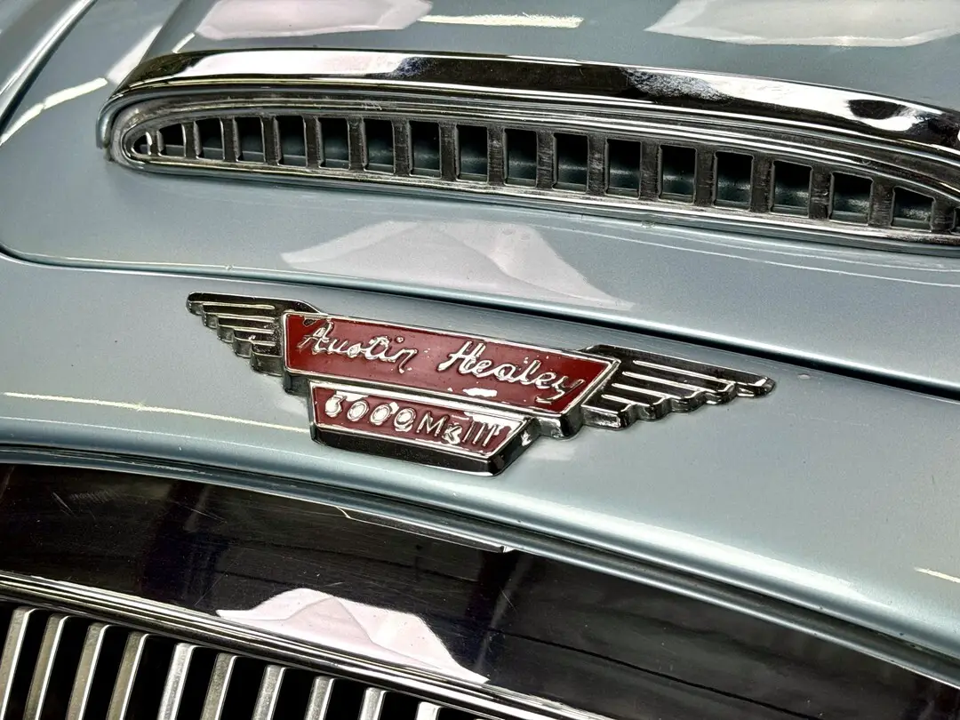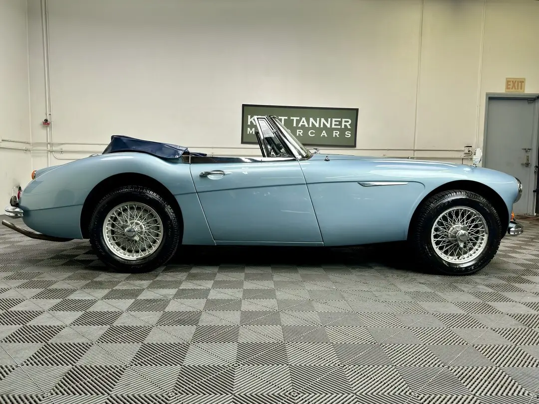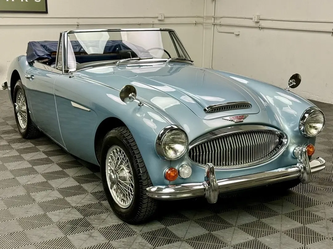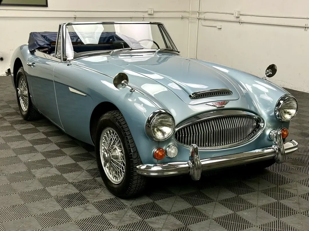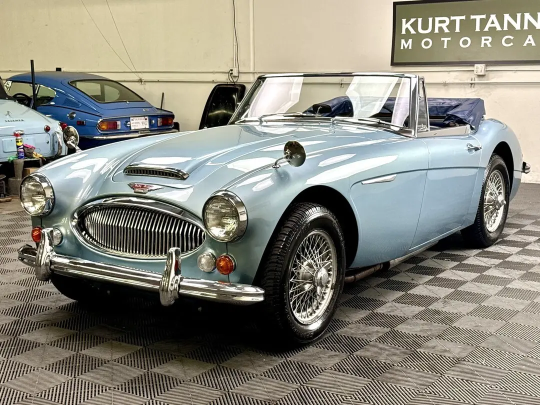 1967 AUSTIN HEALEY 3000 MK3 BJ-8 SPORTS CONVERTIBLE. HEALEY BLUE WITH NAVY BLUE TRIM, TOP, TOP BOOT. 4-SPEED OVERDRIVE, 60-SPOKE WIRE WHEELS. SUPER WELL PRESERVED TWO OWNER CAR SHOWING 85,641 ORIGINAL MILES. EXCITING DRIVER.