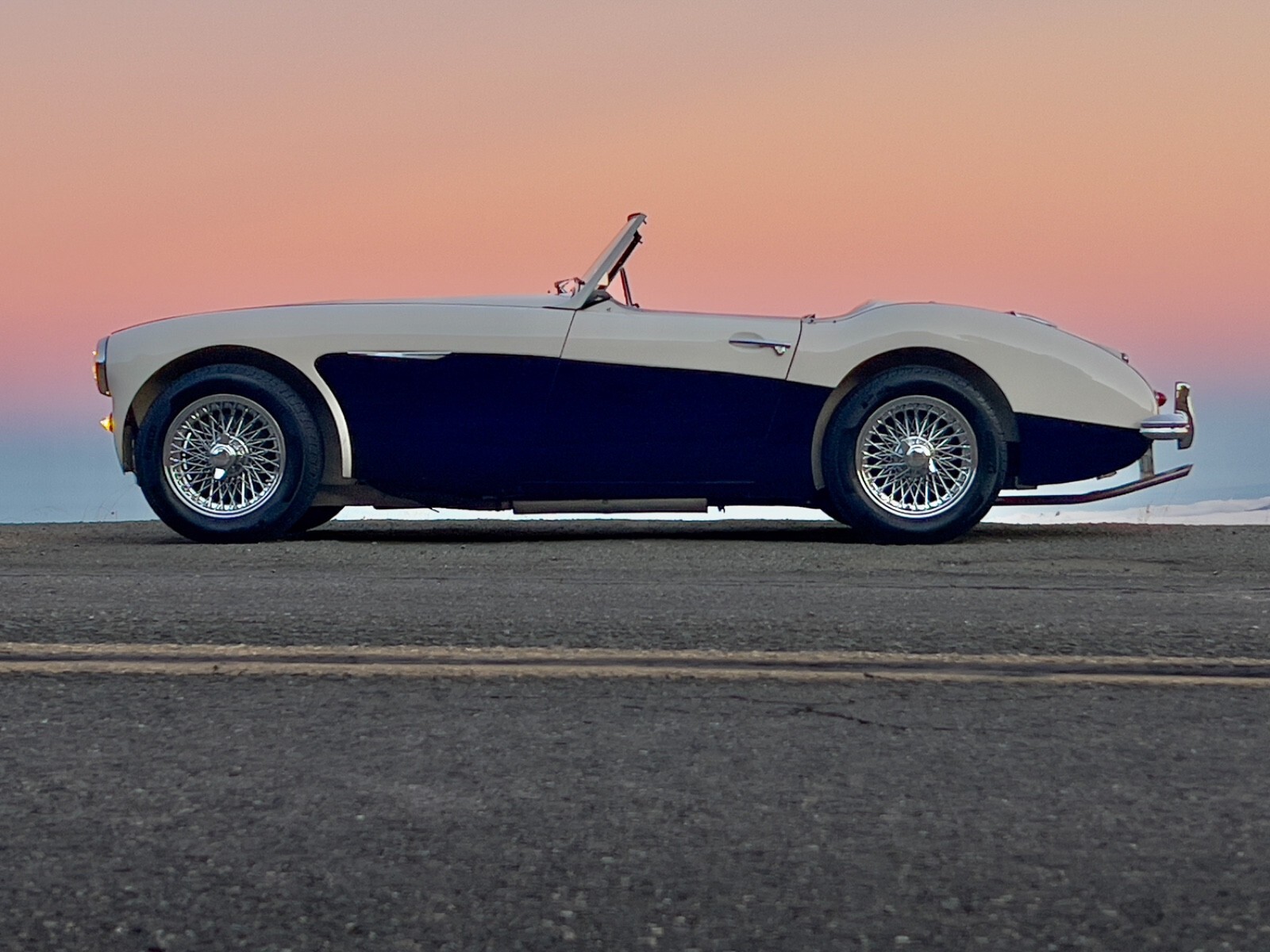 No trailer queen, this two seat Big Healey is the well maintained quintessential driver ! This 1959 Austin-Healey 100-6 BN6 has been owned by 3 successive Healey Club members, with more than 30 years of enthusiast history behind it. Finished in Old English White with Dark Navy side panels, it carries the honest patina of a well-loved driver but has been mechanically maintained and now renewed and upgraded throughout to deliver reliable, confidence-inspiring touring performance, rather than concours fragility. Unlike newly restored cars built from distressed shells, this totally rust free car is steeped with originality and soul.