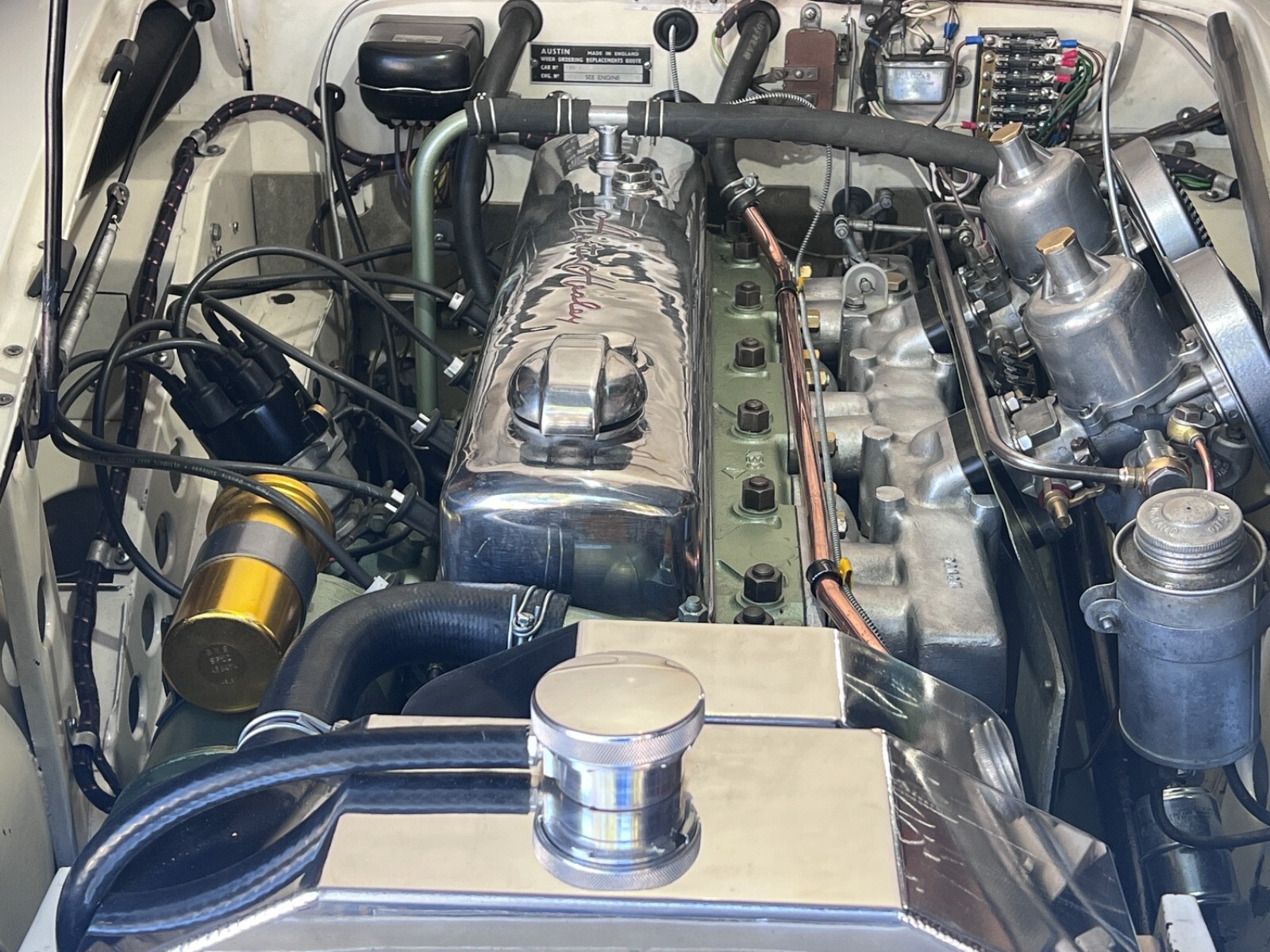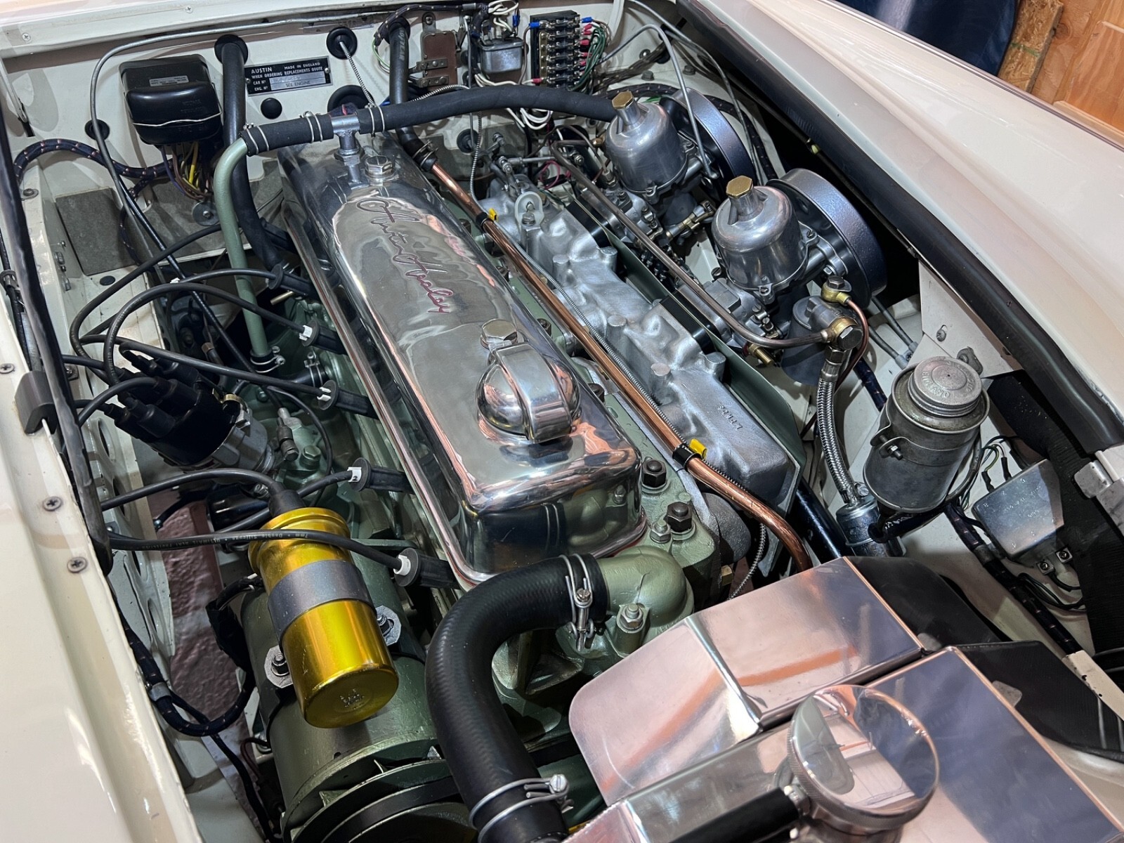 Importantly, this car has never required or undergone major rust repair. The underside, outriggers, and chassis rails remain solid, straight, and honest, reflecting decades of responsible stewardship within the Healey community. It presents today as a beautifully aged, period-correct driver—not over-restored, not cosmetically sterilized—just a proper Healey with its history intact and its mechanical life renewed. It clearly has had a repaint (same colors) in its history, though timeline unknown. The car presents amazingly well, but on close inspection does have small cracks near tail lights, a few chips on door edges, and imperfections in the front right fender. Having completed body-off concours restorations in the past, I specifically sought a Healey that could be driven without hesitation, enjoyed on back roads, and taken on long-distance club tours. This BN6 fit the bill perfectly. The next owner will receive a car with real history, sorted mechanicals, and the feel of a true two-seat Big Healey—ready for the open road, not the trailer. If you’re looking for a true driver, that’s been totally sorted, you will not find one better than this.