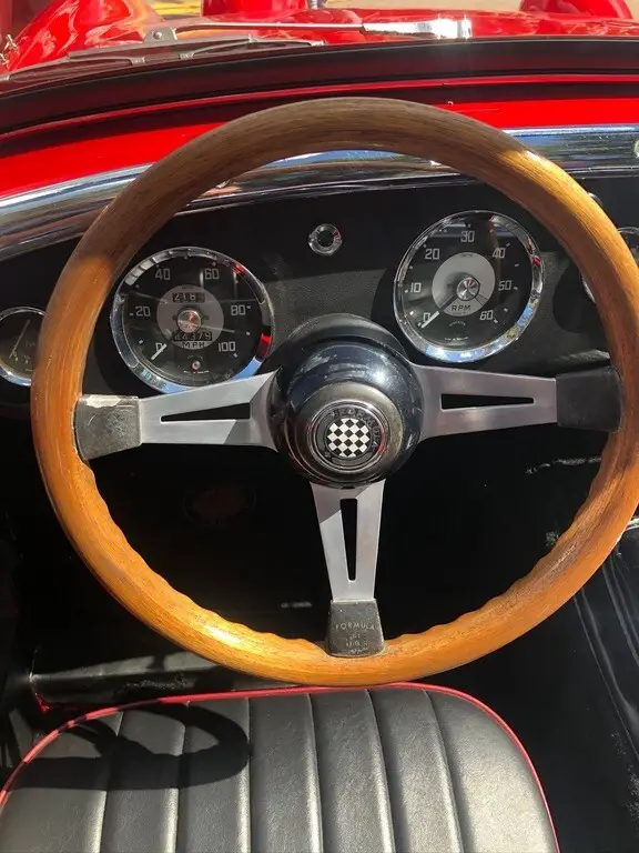 Power plant has been updated to a great street motor with the addition of the Rubber Harmonic balancer, smoothed out running, Mini Mania rear main seal kit, K&N air cleaners with rebuilt H2 carbs. Solid state fuel pump still makes clicking sound upon start-up till pressures are met. Original drivers side mirror, with additional passenger mirror mounted off the windshield frame. Steering wheel is a period correct wooded wheel.