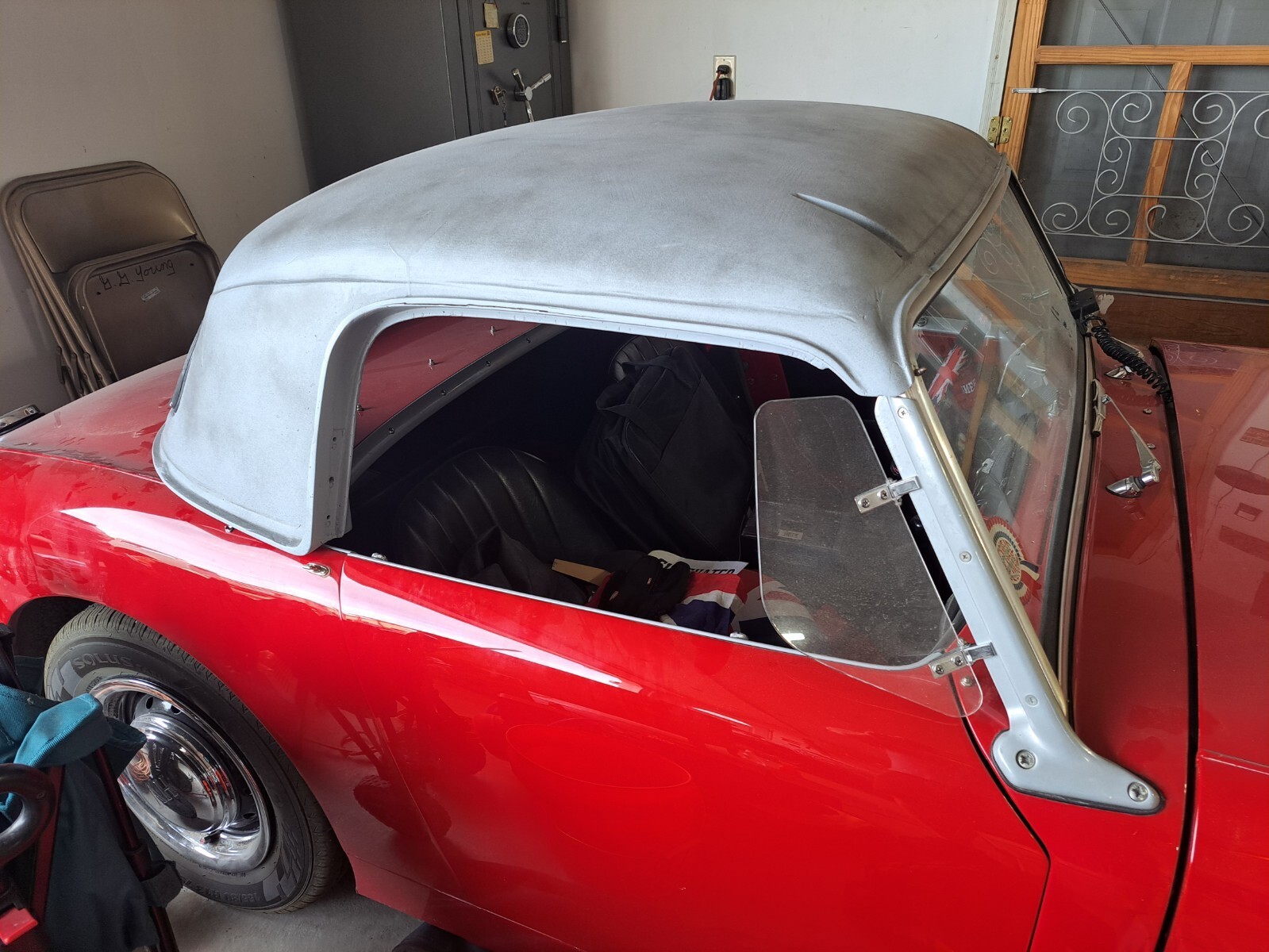 What I know:1275 cc 4cylDatsun 5-speedFuel regulatorTilt forward front endAlternatorOil coolerElectronic IgnitionFront disc brakesBrand new Optima battery6 Autocross tires, 4 mounted on mini-lite wheelsStock wheels/hubcaps, with brand new tires (less than 100miles)Soft top with bows and side curtainsTonneau coverActual Don Healey hard top with matching side curtains (differ from the soft top curtains) still needs work to be perfectGPS Speedometer (not installed, but comes with the car)Several manuals and books, as well as other various goodies