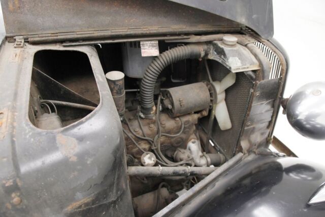 The original and unrestored 1125cc 4-popper is under the short bonnet and is attached to a 4-speed manual transmission. This tiny but capable mill is fed by a 1-barrel carburetor and shows nicely. This all spins a 5.13 geared rear axle.
