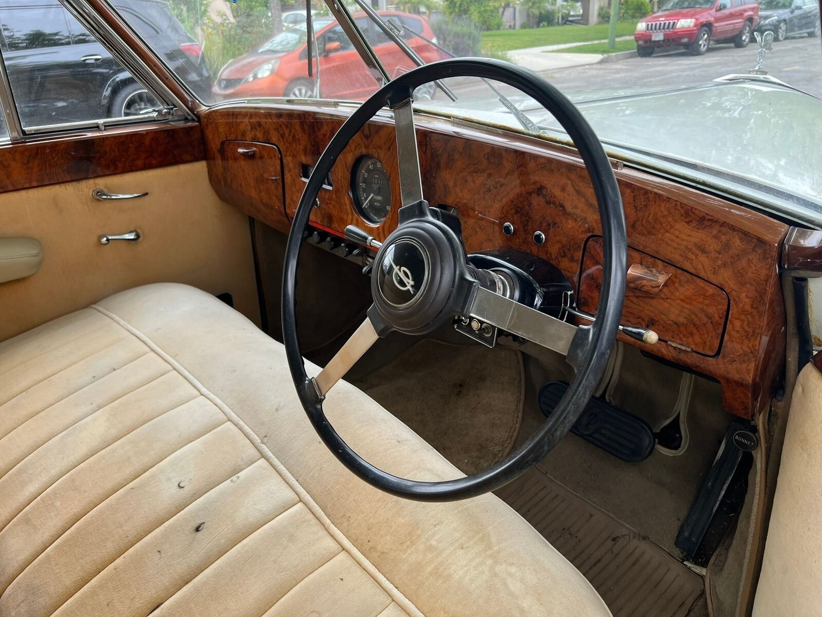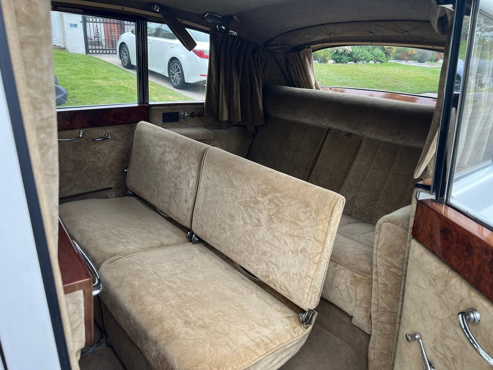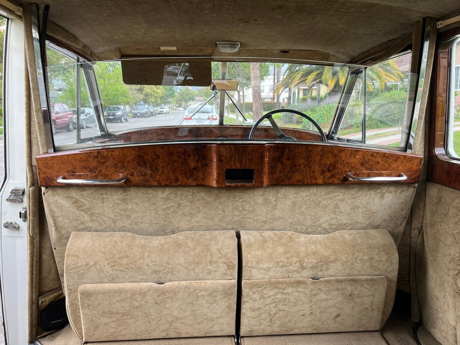 The car's standout feature is its fully restored interior woodwork, adding sophistication and warmth to the elegant beige cabin. The white exterior presents clean and classic, making it an ideal vehicle for weddings, special events, photo shoots, or even as a showpiece in a private collection.