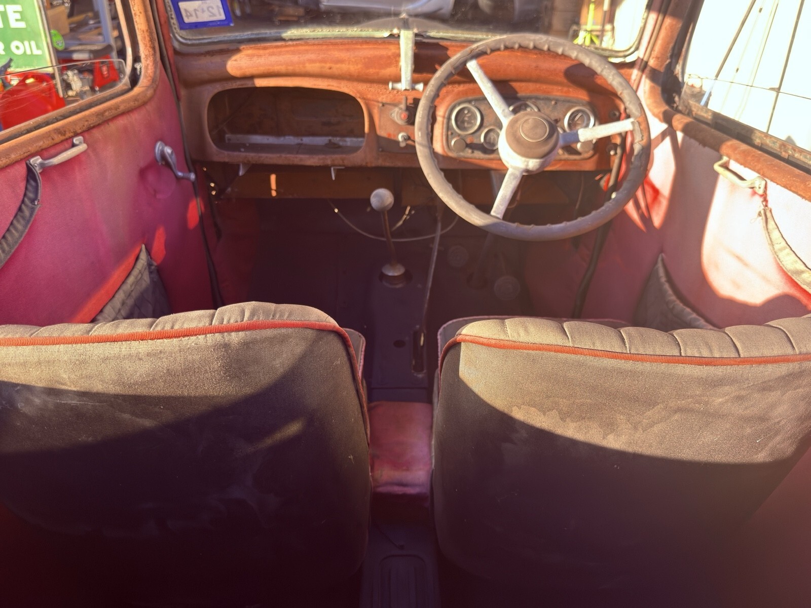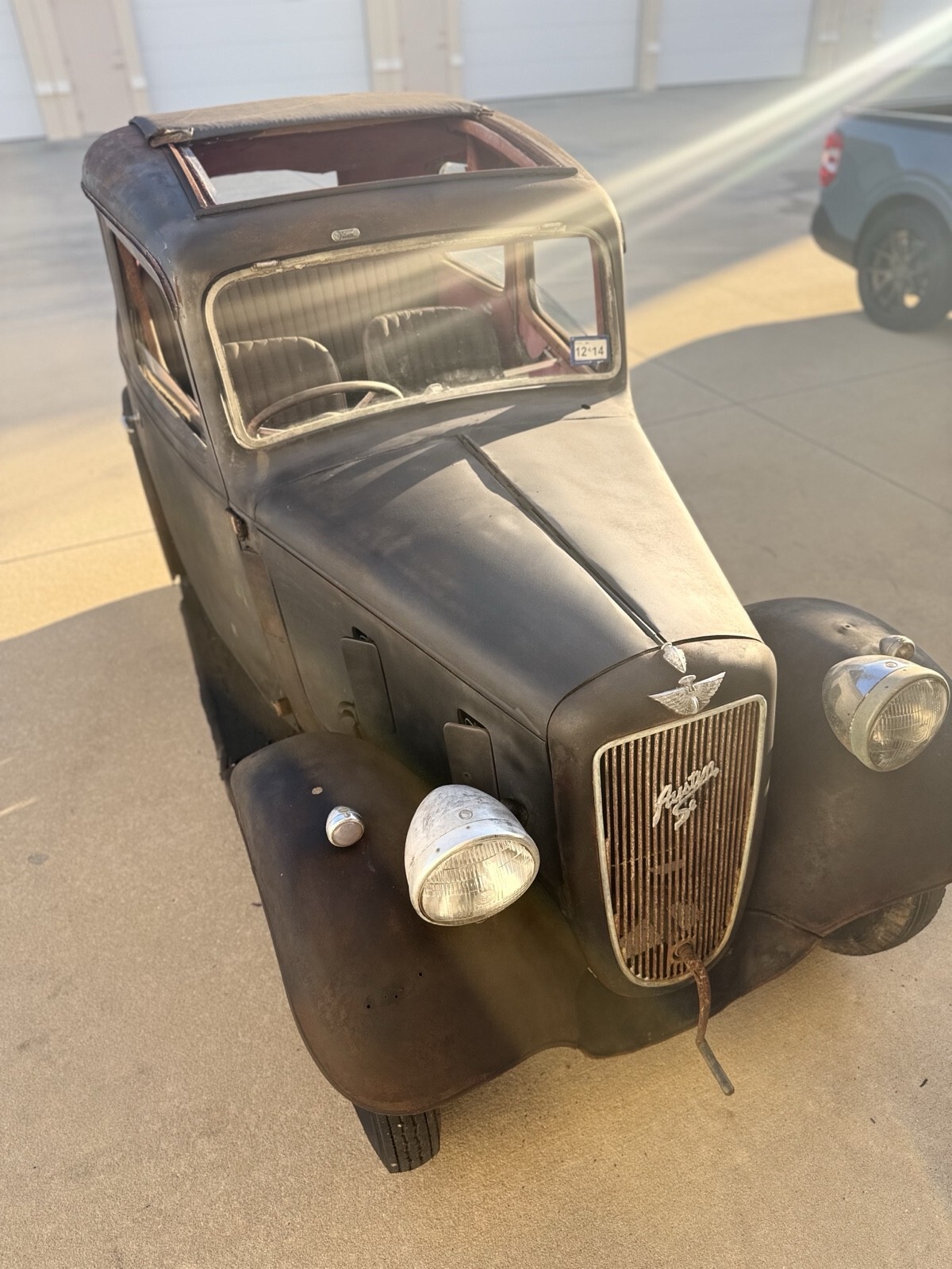 This one is a project that last saw the road in 2014. Motor turns by hand and rolls easy. All glass is present. Overall a solid little car with some small spots of rust here and there (bottom of cowl, floor under the seat and just above the running board in front of rear fenders ) nothing large cause the car isn’t big either. Very restorable or to make a cool little patina ride. (That was my intentions). We will not get to the car and hope to pass it on for someone else to build the way they choose.