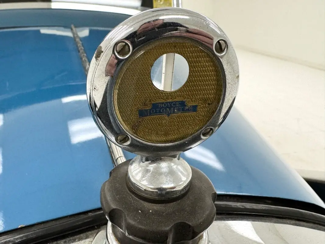 Black vinyl door panels contour to the shape of the diminutive portals which open suicide style and present nicely. The well padded and column tufted bench seat also shows in good condition and faces a simple dashboard with a Smiths speedometer while the three spoke steering wheel houses the spark and gas controls in the center. Black carpet covers the floor from which a pewter knobbed shifter rises, along with the handbrake and round faced pedals.