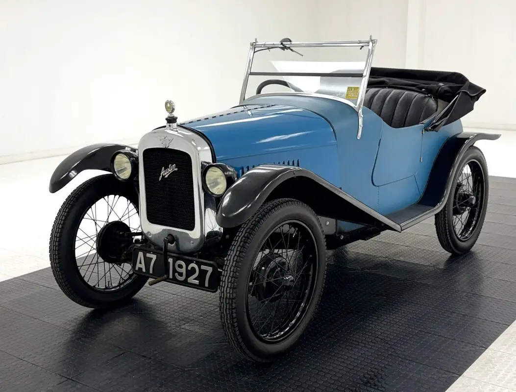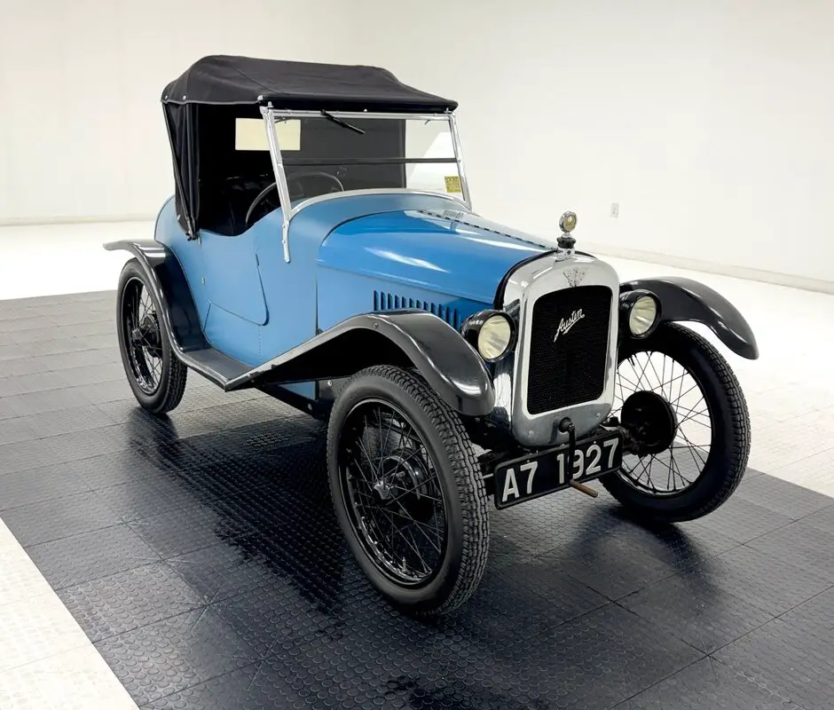 For consignment, a 1927 Austin Seven Chummy Club Tourer showing 21 miles, but the true miles are unknown. They were called the 'chummy' because the driver and the passenger had to be friendly enough to sit so close together. This example retains its numbers matching engine.