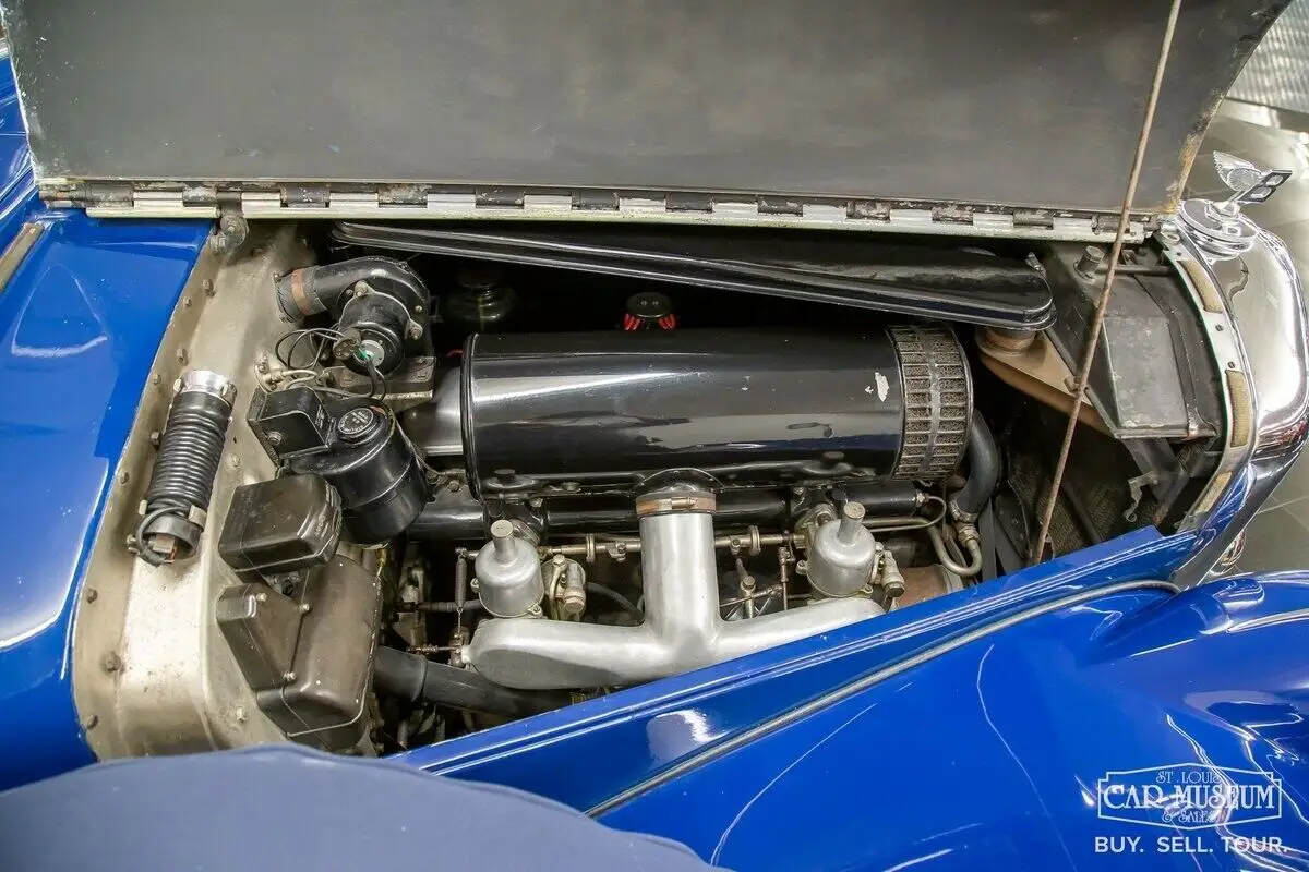 In this period the car was repainted in a Royal Blue scheme and its original upholstery was refurbished from a light blue to the more handsome contrasting dark tan it wears today. This work has now aged in places where it sees the most use, being around the hood latching areas and at the door surrounds. The woodwork appears to have been beautifully preserved and sympathetically refinished and is of particular appeal.